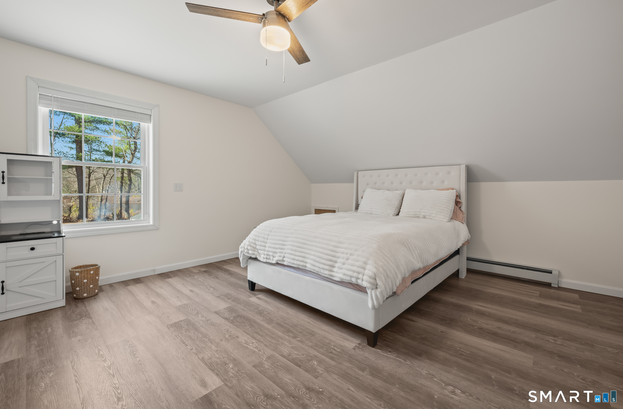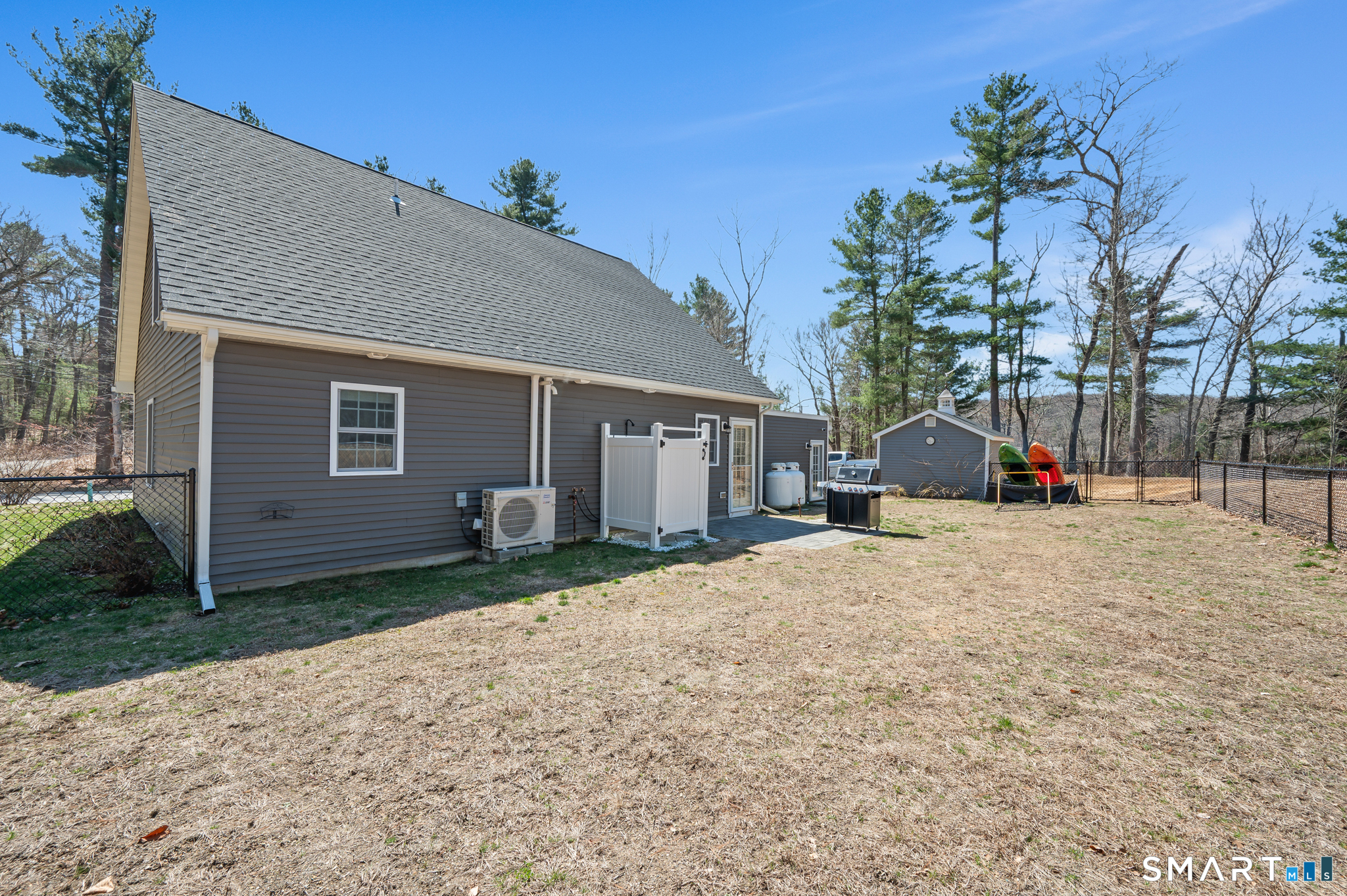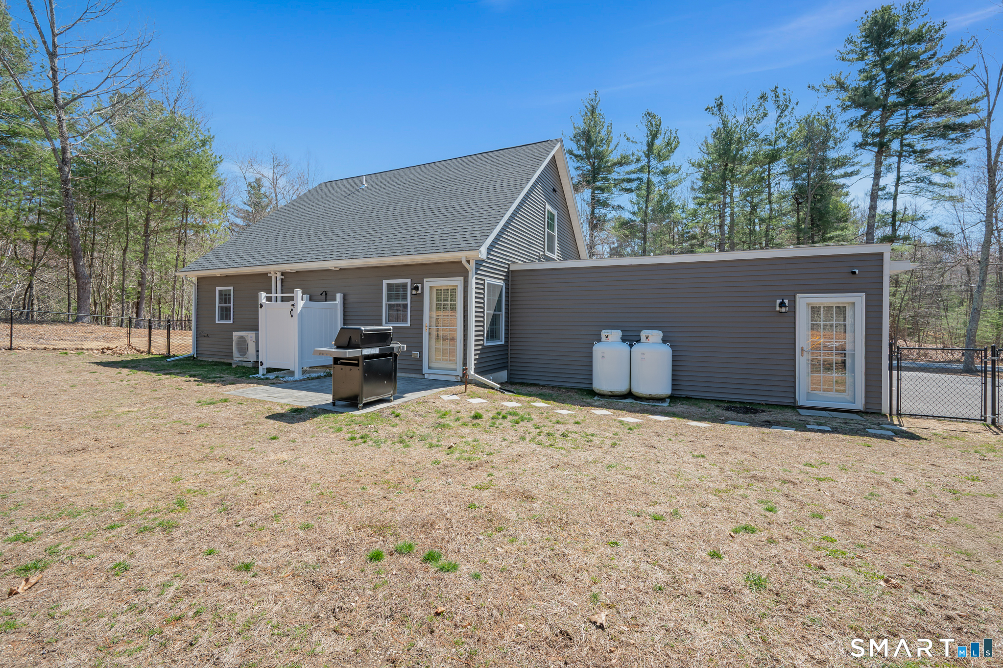 Built in 2022, this beautiful 3 bedroom, 2.5 bath Cape home still feels brand new and is ready for you to enjoy. Set on a spacious 2.7 acre lot, the property offers peaceful pond frontage and access to a boat launch perfect for paddle boats and kayaks, creating a wonderful setting for relaxation and outdoor recreation. Inside, the home features a bright open floor plan designed for both comfort and entertaining. The modern kitchen is equipped with stainless steel appliances, quartz countertops, and a center island with a breakfast bar, making it the perfect hub for everyday living and gatherings. The primary bedroom suite is conveniently located on the main level, featuring a walk-in shower and the ease of single level living without the need for stairs. Additional highlights include a large attached oversized two-car garage and an outdoor patio just off the kitchen, ideal for enjoying the scenic surroundings or hosting guests. Recent updates and improvements include a new driveway, fence, outdoor shower, finished interior of the garage, added attic insulation with additional storage space, ceiling fans in the upstairs bedrooms, a water filtration addition to the water system, and a new sink in the upstairs bathroom, with radiant heated floors, with modern construction, thoughtful upgrades, and a serene waterfront setting, this home offers the perfect blend of comfort, space, and lifestyle.