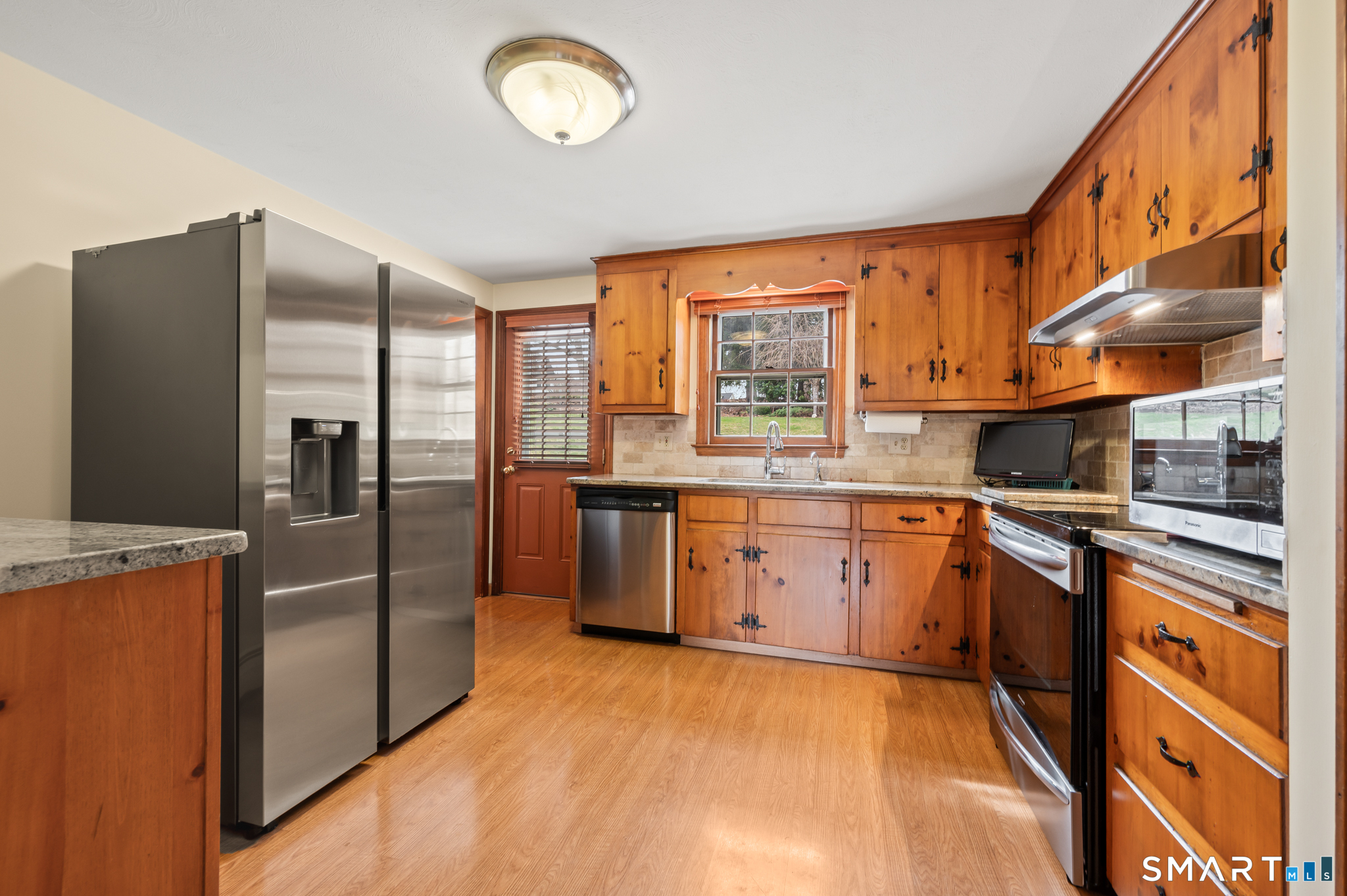 Highest & Best by Monday, 3/30 at 6:00p.m. Thanks! Welcome to this inviting, well maintained split-level home tucked away on a peaceful cul-de-sac, offering the perfect blend of comfort and functionality. With 3 bedrooms and 2 full baths, this home features a sun-filled main level with a stylish kitchen boasting granite countertops, a spacious living room with fireplace, and a dining room accented by stunning hardwood floors. Upstairs, the primary bedroom includes its own full bath, while two additional bedrooms share a second full bathroom. The lower level provides a versatile space ideal for a family room or home office, complete with laundry and walk-out access. Perfect for today's flexible lifestyle. Step outside to a large low maintenance deck-perfect for relaxing or entertaining-along with a spacious yard and large shed. Additional highlights include a one-car garage, newer mechanicals (furnace approx. 6 years, central air approx. 3 years), and a convenient location just minutes from Main Street, East Hampton's shops and restaurants. Must see to appreciate!