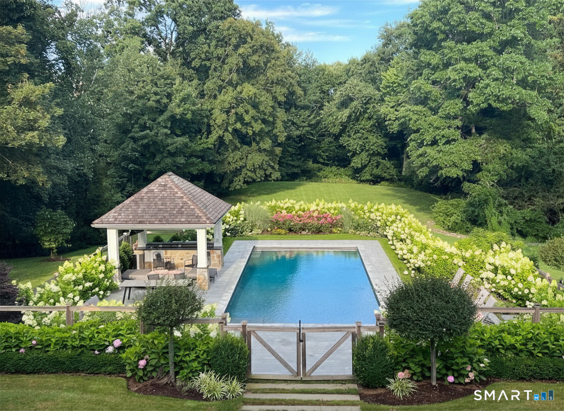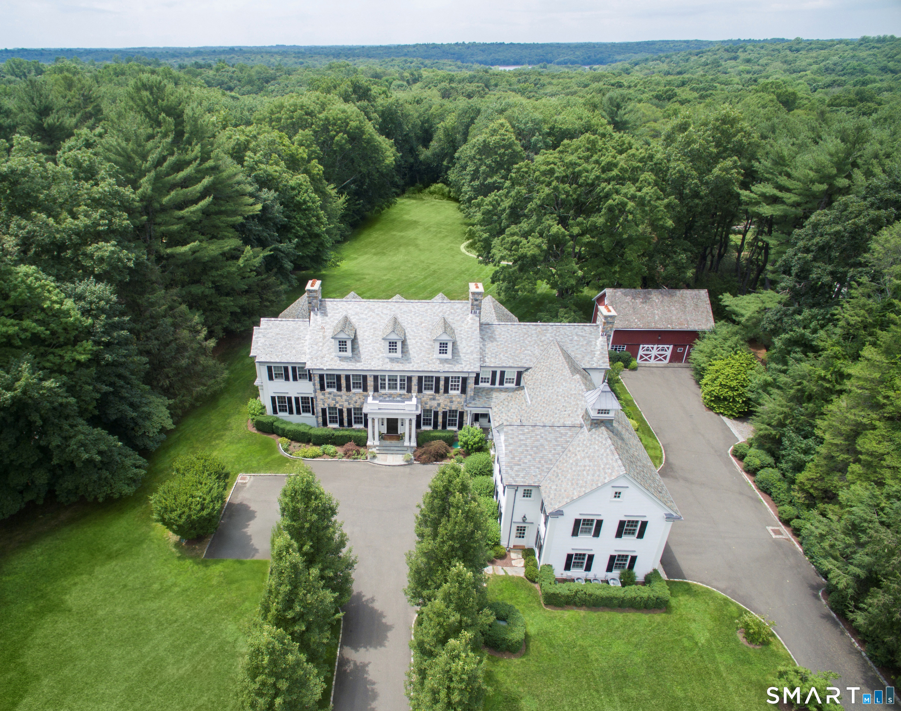 Elegant, sun-drenched and sophisticated, this timeless country estate, built by Alex Kaali-Nagy and decorated by Lynn Morgan, offers the ultimate in superior quality construction, luxurious amenities, exceptional millwork, refined architectural details, built-ins galore and a fabulous versatile floor plan for easy living and gracious entertaining. With four fully finished floors, highlights include 7 large ensuite bedrooms with walk-in closets,10 foot ceilings,7 fireplaces, front to back grand entrance hall, elevator, full house generator, slate roof, expansive covered rear porch, bluestone terraces, fabulous chef's eat-in kitchen opening into the family room, handsome library and adjacent home office, wet bar, spectacular second floor playroom, exercise room and so much more. The serene private 4 acre property on coveted West Rd. is equally impressive. The deep play yard is surrounded by majestic trees, beautiful professional landscaping and glorious gardens. There is a fabulous new Gunite heated pool by Shoreline with retractable cover, a charming custom fitted gazebo and an amazing newly restored circa 1790 barn with loft and several garage spaces. In addition, there is courtyard parking for guests and a separate service entrance for convenience. Make this your forever home to love and cherish and build special memories with family and friends. Welcome to 584 West Rd.!