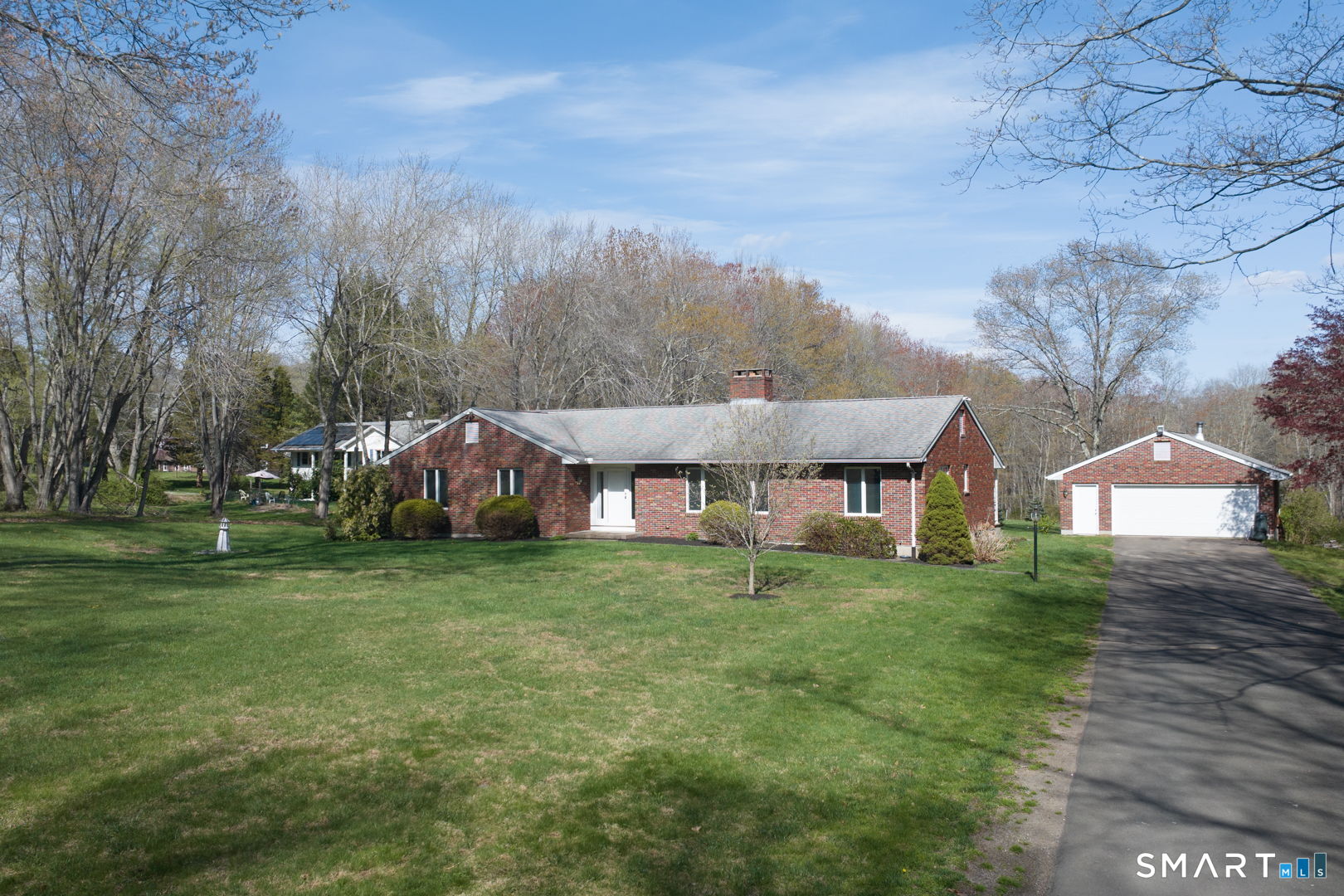 Rooted in art, shaped by history, and surrounded by the rhythm of country living, this mid-century modern brick ranch offers a rare and soulful retreat in the village of Millington. Set on a gorgeous, level 2+ acre parcel, the property evokes the feel of a private canvas-ideal for gardens, orchards, recreation, or simply enjoying the quiet beauty of nature. The home's one-level design reflects the era's hallmark of effortless living, with an inviting, open flow tailored for both everyday comfort and entertaining. A striking double-sided fireplace anchors the living spaces, adding warmth and architectural character. Many original features, including classic kitchen cabinetry, interior doors and moldings, honor the home's heritage, while thoughtful updates such as LVP flooring introduce a modern touch. Generously sized bedrooms, provide comfort and flexibility, while abundant storage in both the attic and basement ensures practicality. Step outside to the stone patio terrace, a perfect setting for evening dinners al fresco under the open sky and stars! The oversized, heated 2+ car garage offers endless possibilities-ideal for hobbyists, car enthusiasts, antique collectors, or even a private art studio.Tucked along a scenic country road, yet just minutes from Devil's Hopyard, the Chester Ferry, CT River and Gillette Castle, this property offers a unique blend of tranquility, inspiration, and accessibility. A home where timeless design meets the enduring beauty of the countryside