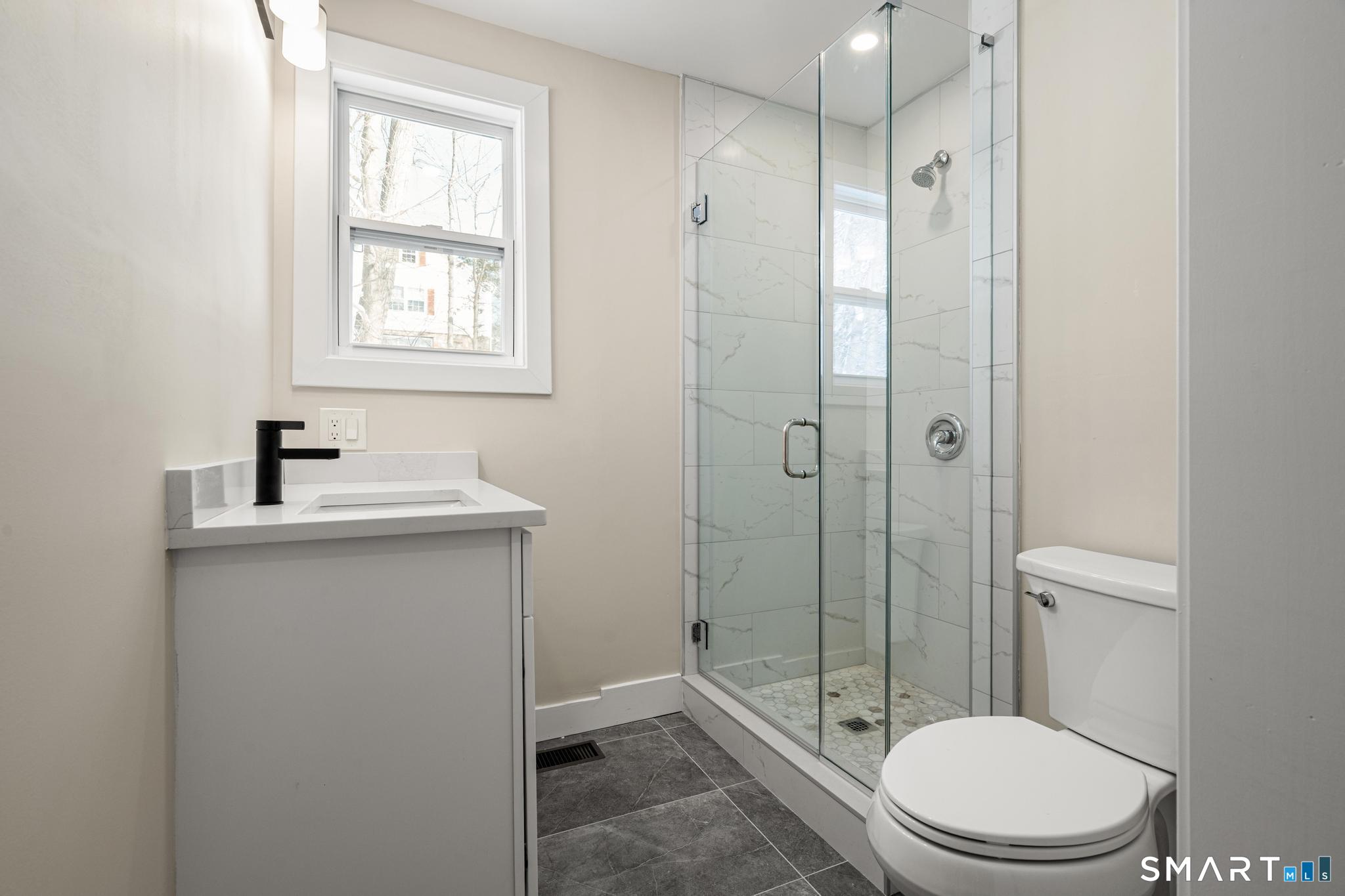 A 4-bed, 2.5-bath 1 car garage turnkey colonial offering 1745+Sqft w/ a finished walk out basement & potential bedroom. The foyer opens to gleaming new hardwood floors & a bright, open-concept layout designed for today's lifestyle. The main level offers a dedicated office and a stylish half bath just off the foyer. The expansive living and dining areas feature high ceilings, recessed lighting & brand new windows that flood the home with natural light. The eat-in kitchen is a true centerpiece, showcasing white cabinetry, quartz countertops, stainless steel appliances, and a breakfast bar.. perfect for both everyday living and entertaining. A spacious first-floor primary suite provides ultimate convenience, complete with a fully renovated en-suite bath featuring a new tiled shower and modern vanity. Upstairs, you'll find a versatile media/playroom along with 3 additional bedrooms, all with raised ceilings, new carpeting and a beautifully remodeled full bathroom with tub. Finished basement offers exceptional flexibility, including an additional room that could serve as a bedroom, home gym, or office w/ private walk out. A potential in-law setup.. Outside enjoy a brand new Trex deck off the kitchen. Additional features.. central air, a detached 1 car garage, and a newly paved driveway. 1st floor primary bed, new kitchen, baths, new furnace, windows, central air, finished basement, new dry wall, paint, lights, fixtures, Kohler toilets. Everything is new! Book your showing today!