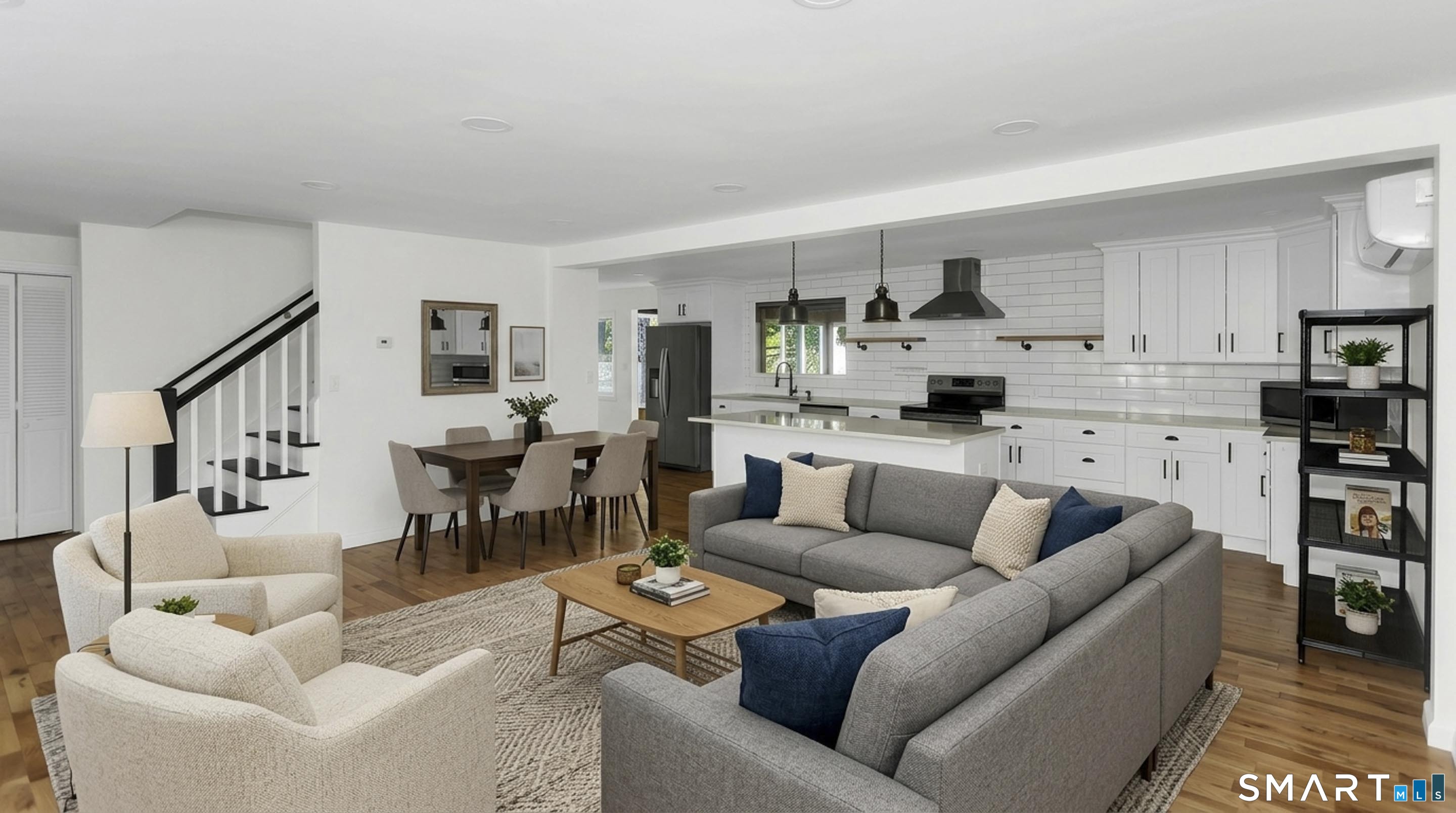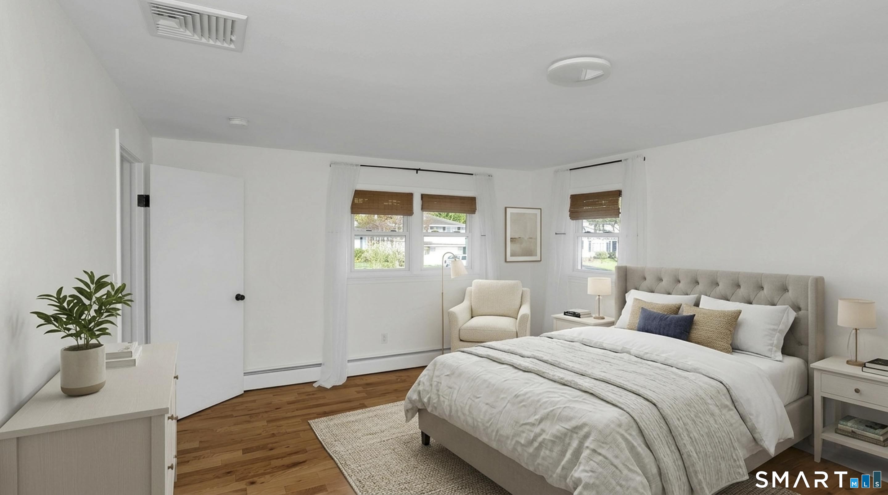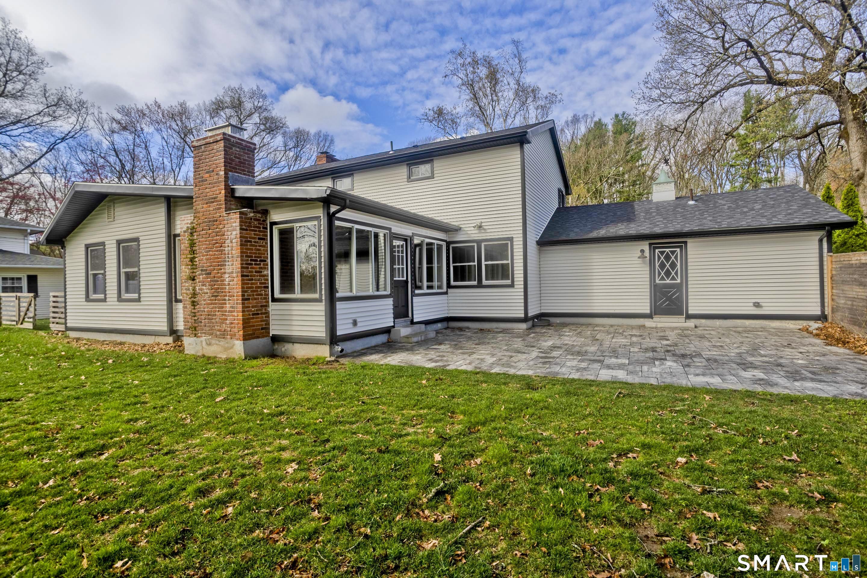 A flexible first-floor layout includes a cozy family room, oversized bedroom, and half bath with laundry. Upstairs, the primary suite offers a private retreat with a full bath and large walk-in closet. Two additional bedrooms and a second full bath complete the level. The finished basement adds valuable extra space for a home gym, playroom, or media area. Outside, enjoy a level backyard with an updated limestone patio, ideal for relaxing or entertaining. Key upgrades: hardwood floors, fresh interior paint, newer windows, siding, roof, seamless gutters, updated plumbing, newer oil tank, and upgraded 200-amp electrical service. Conveniently located near I-84, shopping, gyms, and schools.