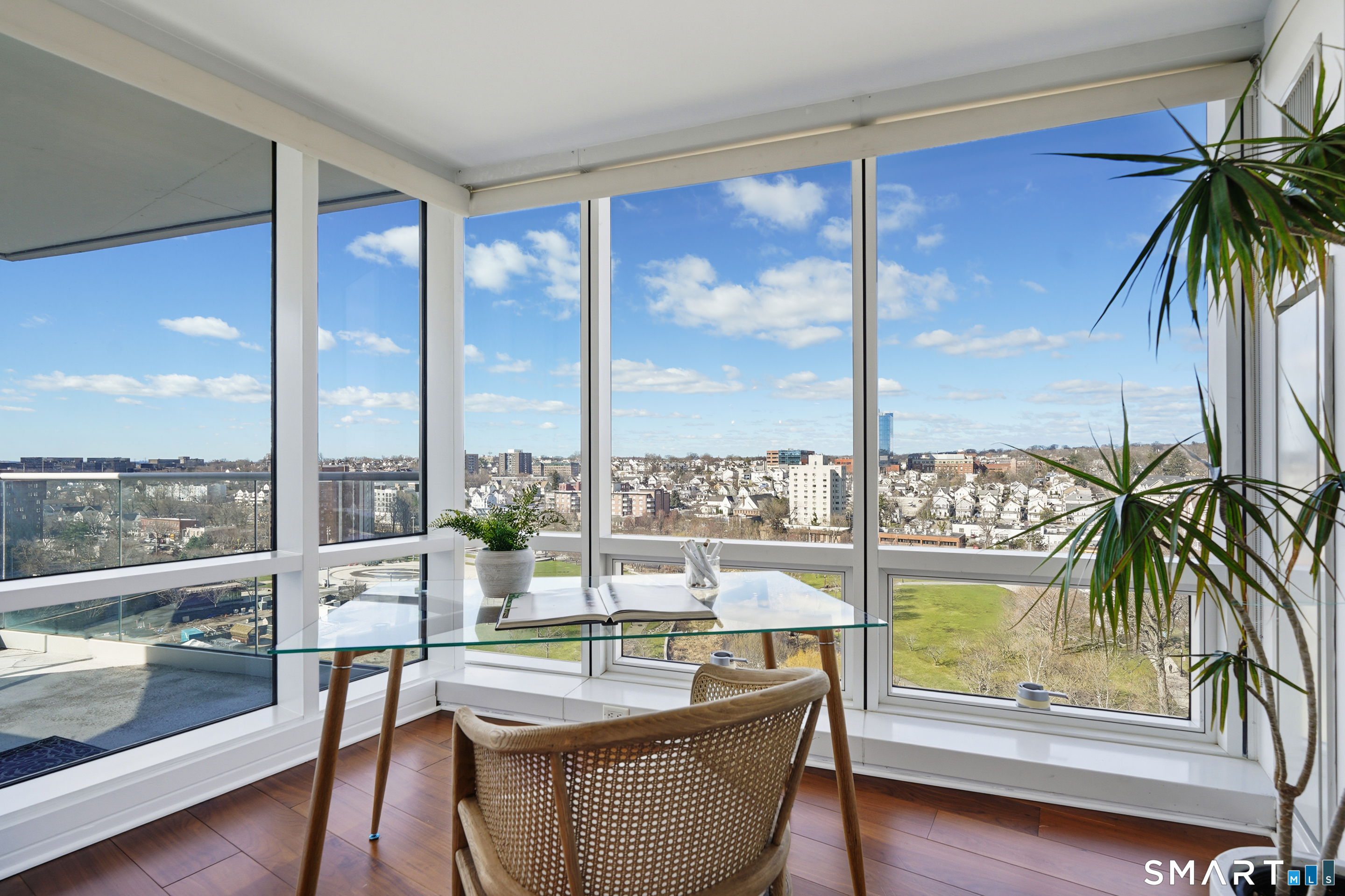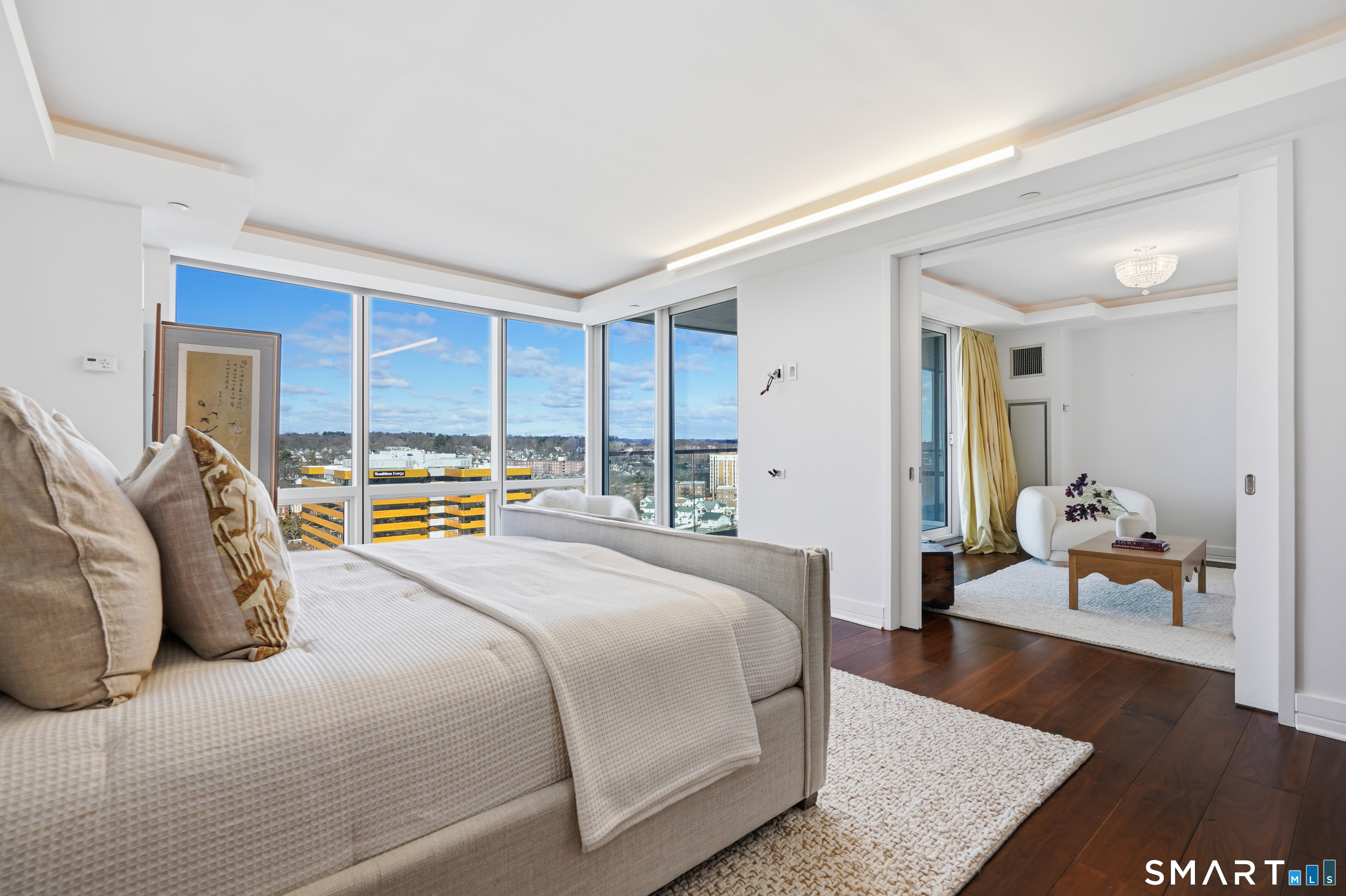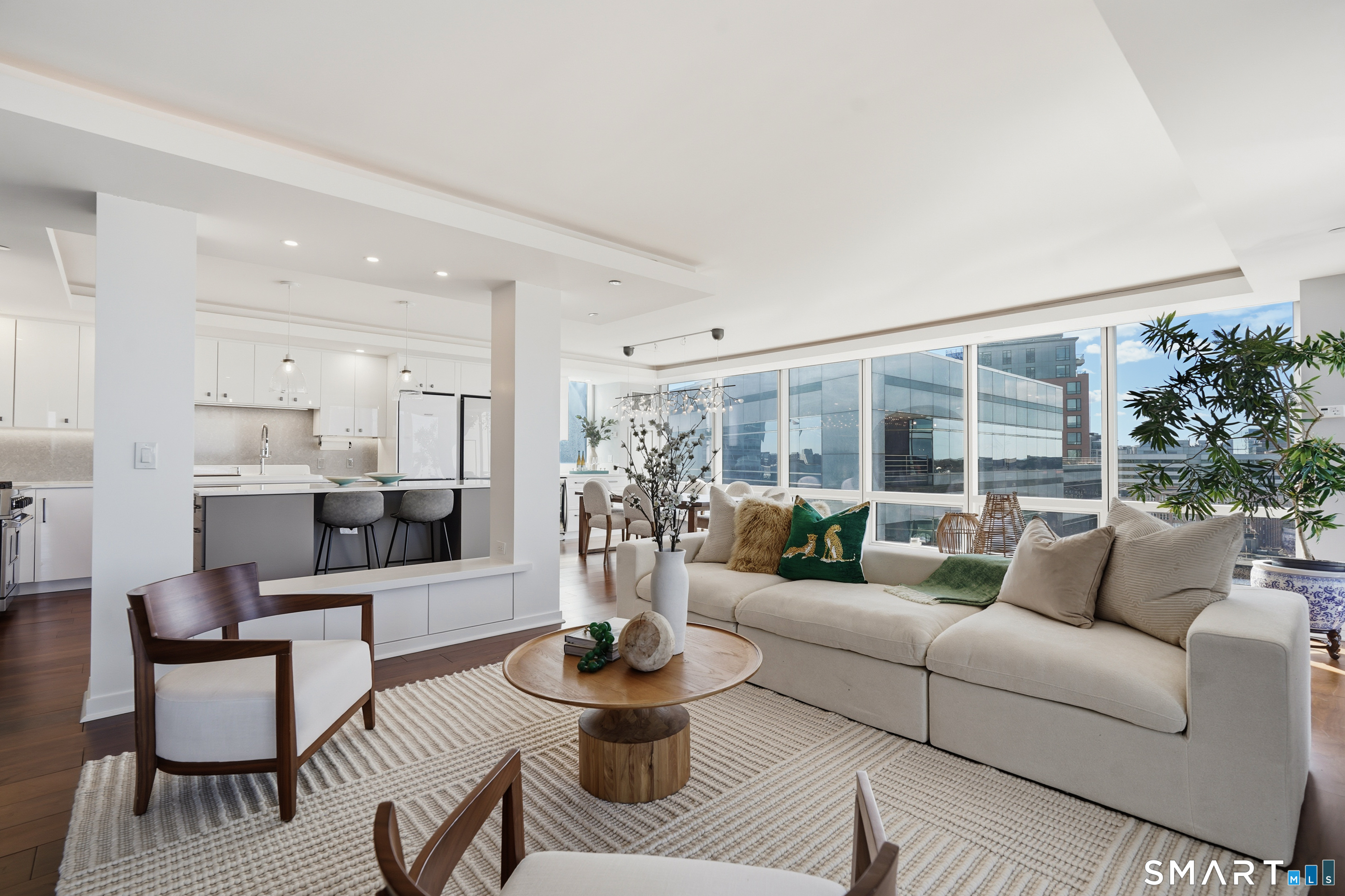 Rare opportunity to own one of the sprawling combined residences at the prestigious Park Tower. This wonderful unit features a complete top-to-bottom renovation, highlighted by a brand-new gourmet kitchen with a center island and exquisitely renovated bathrooms, including a primary spa-bath with a soaking tub and separate shower. The flexible layout offers 3 bedrooms plus a dedicated office, a private sitting room, and a massive walk-in closet, all complemented by breathtaking views from two private balconies. Residents enjoy world-class building amenities including 24-hour security, full concierge service, a year-round indoor pool, and a stunning rooftop deck with panoramic skyline views. For ultimate commuting ease, the building provides a private weekday shuttle service directly to the Stamford train station. Perfectly situated just steps from Stamford's premier dining, shopping, and Metro-North, this home offers the absolute peak of luxury and convenience.