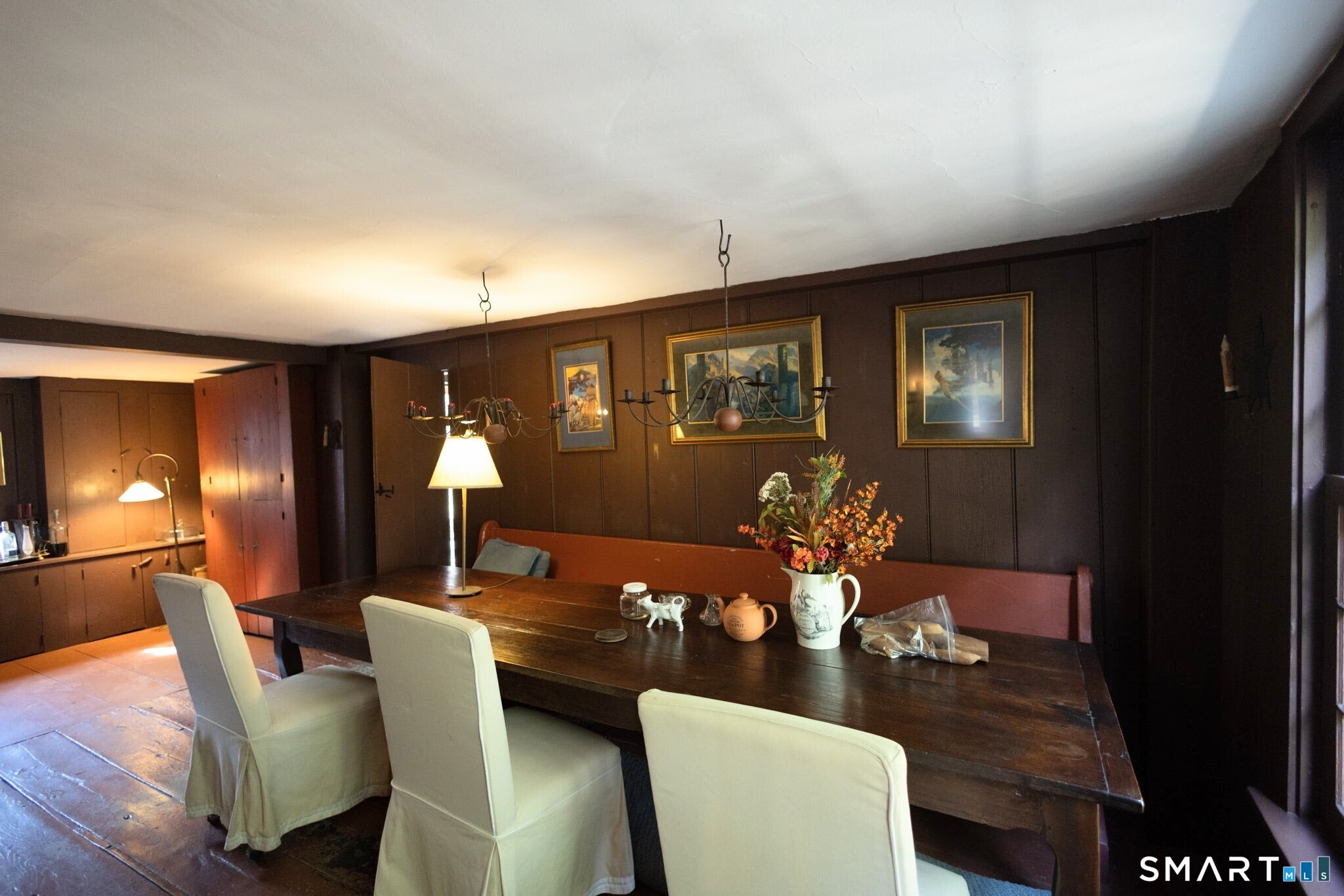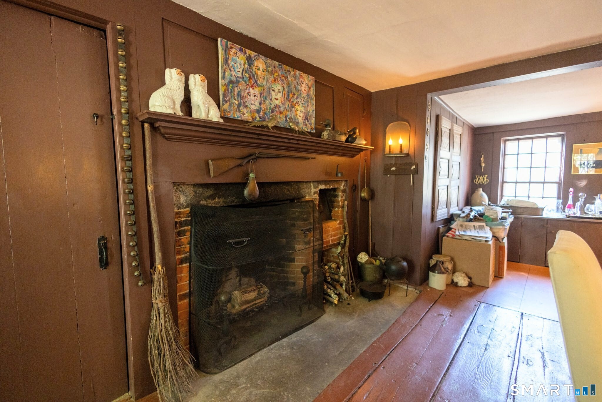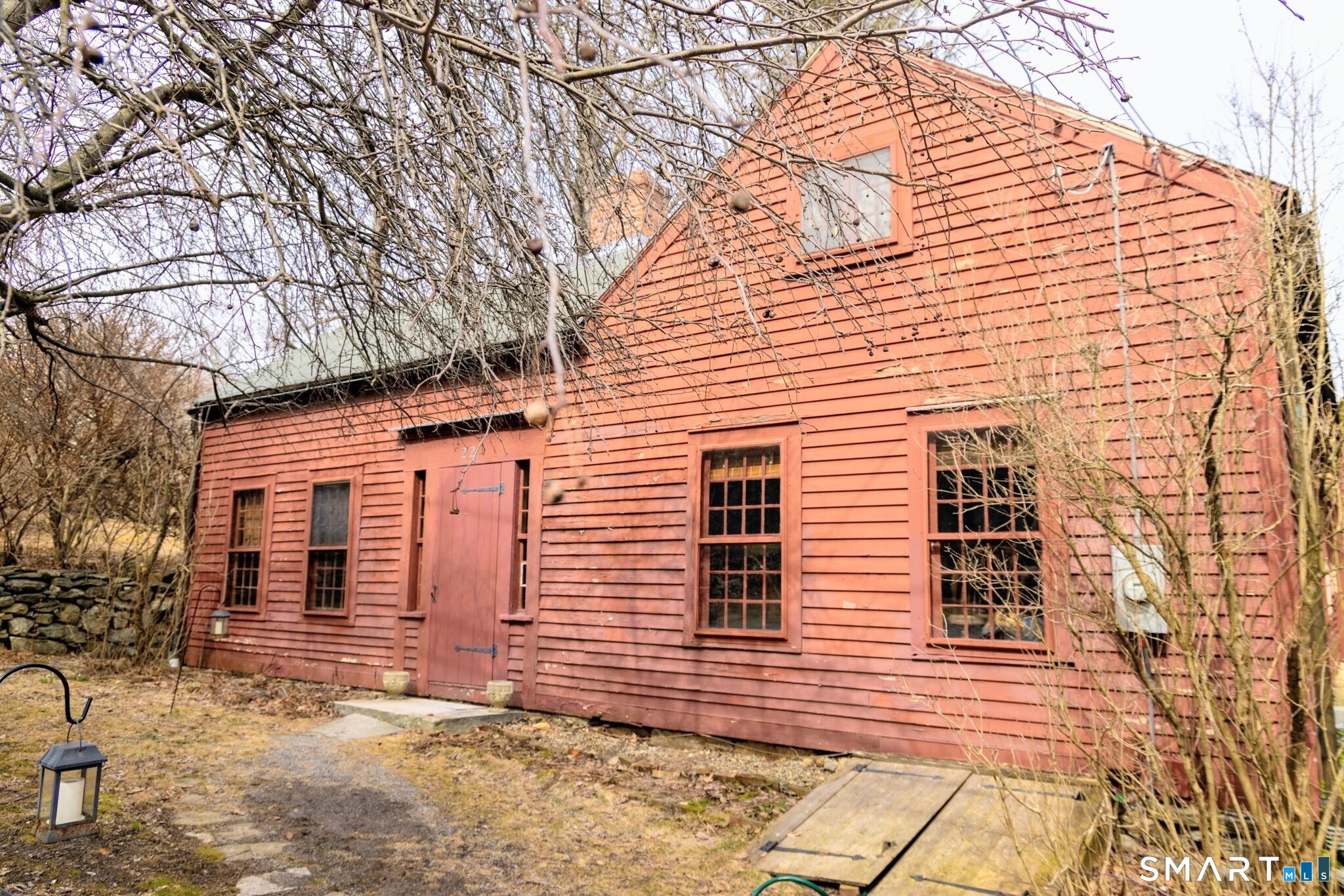 A rare opportunity to own a piece of early New England history, this circa 1780 antique Cape is set in Eastford's quiet village setting, surrounded by open fields and timeless charm. Sited on nearly an acre with classic stone walls, this 3-bedroom, 2-bath home offers over 1800 square feet of character-filled living space. Original details include wide plank floors, exposed masonry, and multiple fireplaces that reflect its 18th-century roots. An updated kitchen opens to the main living area, while an additional detached space-previously used as an artist's studio-provides flexibility for creative use, remote work, or a private retreat. A screened porch extends the living space outdoors, perfect for dining or relaxing while enjoying the peaceful surroundings. The grounds feature mature gardens and natural stonework that enhance the setting. A additional separate parcel across the street includes a post-and-beam two-car garage with loft, reminiscent of a traditional carriage house. A distinctive historic property offering charm, setting, and authenticity, an opportunity to bring your own vision and style to a timeless home.