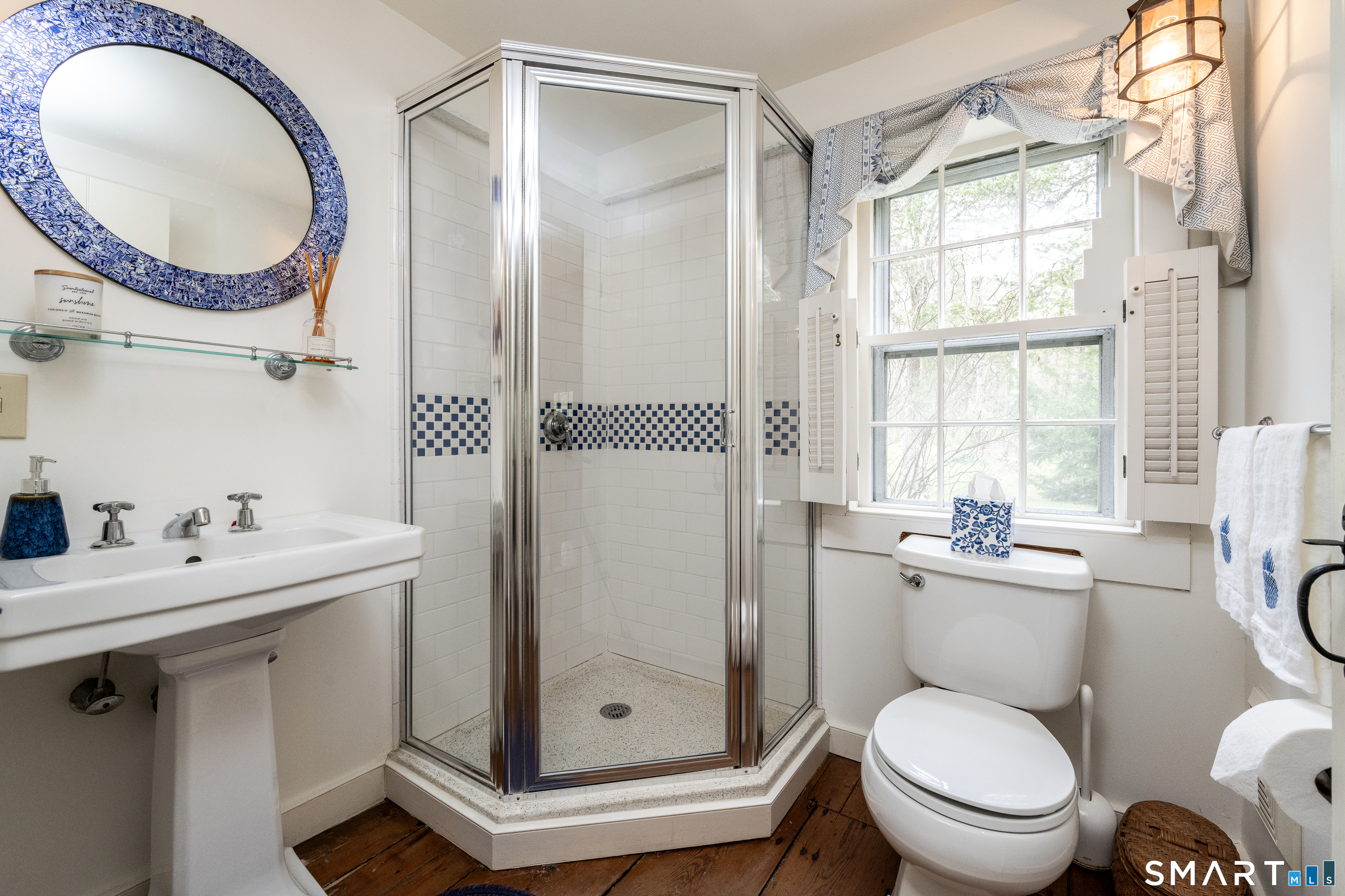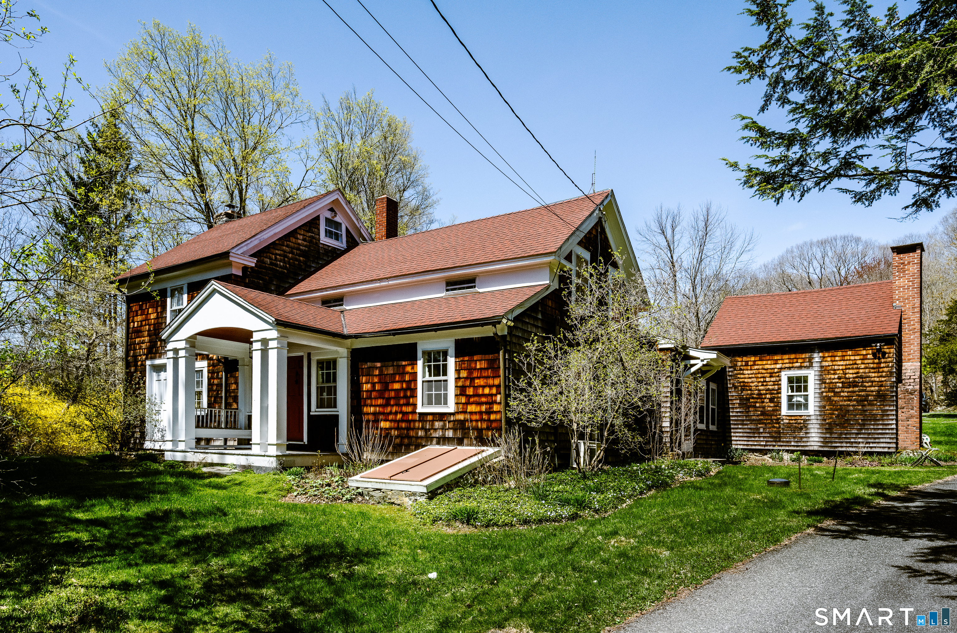 Beautifully renovated antique colonial on 4.5 private acres with a tumbling brook. Hardwood floors and original beams throughout, two wood- burning fireplaces, custom lighting, original wide-plank floors in some rooms, and a gorgeous, country kitchen with built-in appliances, including a warming drawer. The formal dining room anchors the heart of the home, with a small private study for multiple uses on one side, and a large living room on the other side. Every room shows loving attention to detail and comfort. Added onto throughout the years, the house flows comfortably. The original cottage, connected by a light-filled inner hallway with hardwood floors, offers a lovely family room or second living room, with a wood fireplace, a full bath that includes an imported English claw-foot soaking tub, and a cozy upstairs bedroom for guests. There are two large barns: one is a combination garage, tool shed, and wood shed. The other, built using the chestnut beams from the original barn on the property, is capacious, with a cement floor and truly endless possibilities. Gorgeous antique stone walls and perennial gardens abound, and the property is private and protected in the back by its natural landscape. Split air conditioning and a generator assist with comfort without sacrificing authenticity. Close to town and 20 minutes to the Ten Mile River Train Station. This home has been beautifully maintained, and will be standing long after any of our new houses are long gone. Turn Key!