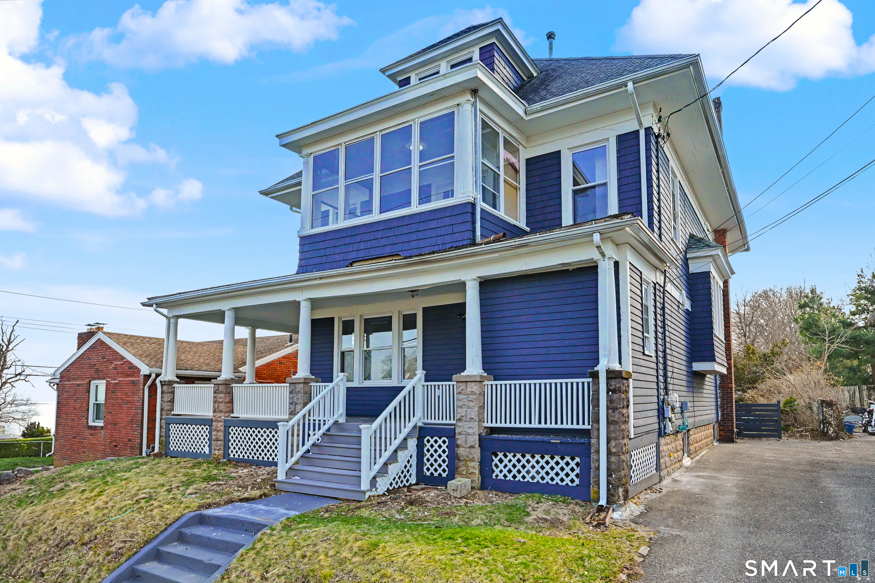 BEACH VIBES MEETS INVESTMENT OPPORTUNITY! The sunlight, ocean air, and space to grow; this elevated two-family home offers more than just a place to live. Whether that means creating your dream home, generating income, or both. This rare blend of seaside ease, incredible location with smart investment potential is not to be missed! The main residence spans 3 floors of approximately 2,000 sq ft of living space, inviting you in with it's wraparound porch, natural light and water views. Gorgeous hardwood floors and updates throughout creates an inviting atmosphere that feels both relaxed and refined. The 1st FL features an open floorpan with a formal living room, updated eat-in kitchen, dining room, laundry area & half bath. The charming stair case leads to the 2nd floor with Primary bedroom suite-full bath & WIC, 3 additional bedrooms, an enclosed 3 season room and back balcony! The finished lower level completes this incredible apartment. The 2nd Unit offers a thoughtfully designed 1-bedroom, 1-bath layout (approx. 700 sq ft), with stunning water views; ideal for generating rental income, hosting guests, or creating a private space of your own. This amazing home is equipped with gas heat, central air and spacious back yard. Located up the street from Dawson Beach in a sought-after neighborhood near Ocean Ave's great restaurants & conveniences, and less than 20 minutes to New Haven. Experience the allure of coastal living and make your beachfront dreams a reality!