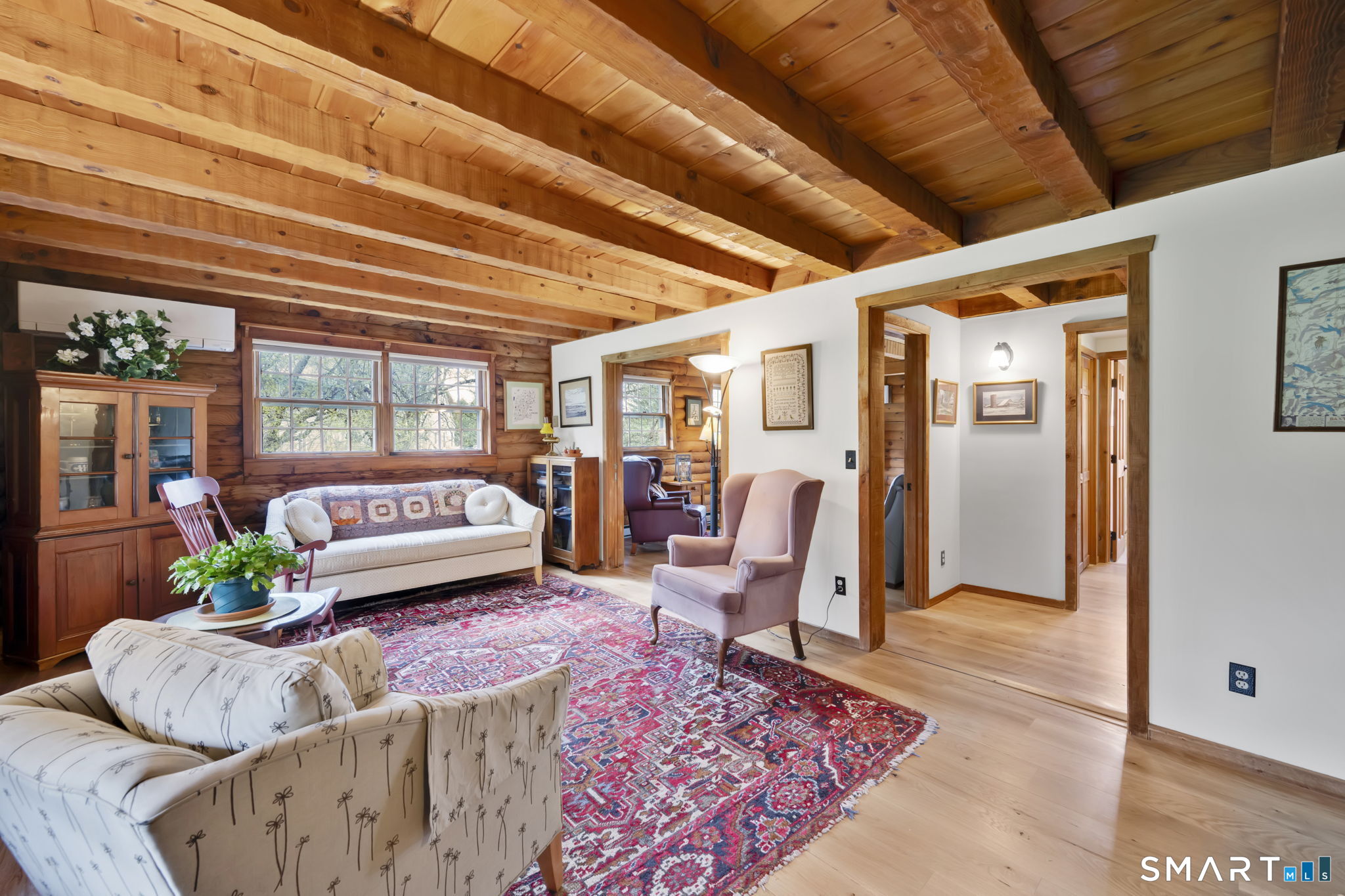 ***OPEN HOUSE CANCELLED***NO OPEN HOUSE***Nestled in a peaceful setting, 260 West Street captures the warmth and character of a two-level log home with thoughtful updates throughout. A welcoming front porch invites you to slow down and take in the natural surroundings. Inside, natural light fills the home, highlighting rich hardwood floors across the main level. The layout balances comfort and function with inviting living spaces, main-level laundry, and generous cabinet and closet storage. Custom stained-glass accents add a distinctive artistic touch you won't find just anywhere. Outdoors, the property shines as a gardener's retreat, with established perennial plantings creating color and interest throughout the seasons. The private back deck offers the perfect space for entertaining or unwinding. Additional features include owned solar panels and a wood-burning stove to support energy efficiency. The 2-car garage with a loft provides ample storage along with space ideal for a workshop. Conveniently located near local schools, with easy access to Route 2 and close to a nearby golf course, this home offers both accessibility and a tucked-away feel. A truly special opportunity to own a one-of-a-kind property in Hebron.
