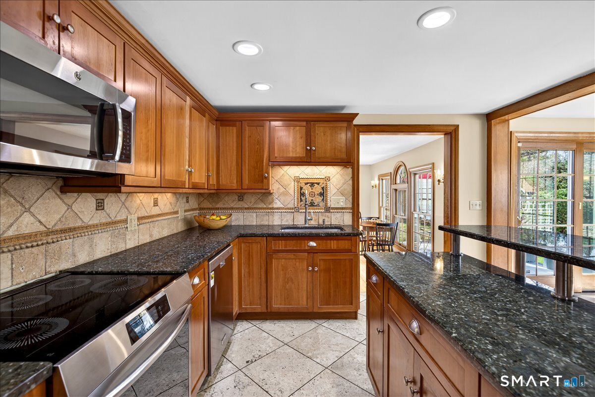 Set on what is arguably the most beautiful lot in downtown Madison. This enchanting 5-bedroom farmhouse perfectly blends timeless charm with modern convenience. The nearly one-acre, meticulously manicured property makes a lasting impression. Complete with majestic stone walls & a stunning brick patio. Inside, the home welcomes you with a thoughtfully designed mudroom, creating a private and practical entry point. The oversized family room is filled with natural light and anchored by a cozy wood stove, offering a warm and inviting atmosphere. The fully remodeled eat-in kitchen is truly the heart of the home, featuring abundant storage & spacious dining room, & a seamless flow into a versatile living room that can also serve as a formal dining space. A bright first-floor office with a skylight provides flexibility and can easily function as a guest bedroom, conveniently located near a full bath. Upstairs, you'll find five charming bedrooms with built-ins, generous closet space, and a beautifully updated full bathroom. The primary bedroom stands out with its high ceilings & airy feel, while the entire second floor is bathed in sunlight. Additional highlights include newer gas heating, central air, city water, a two-car garage and an updated roof. All of this and is just a short walk to downtown Madison's shops, beach, restaurants, train station, and movie theater. This is a rare opportunity to own a truly special home in an unbeatable location.