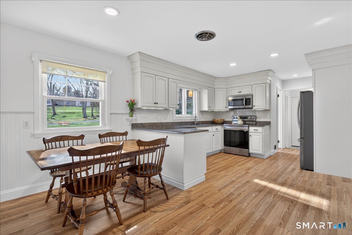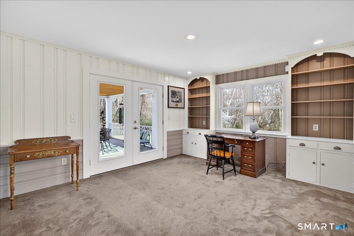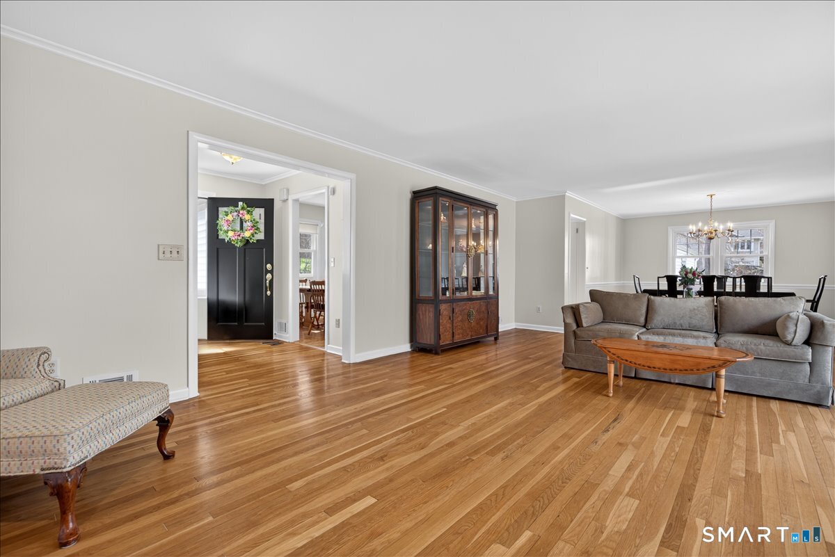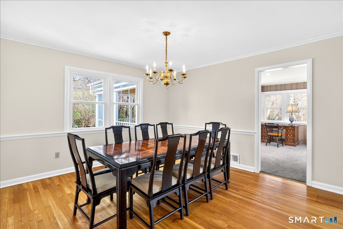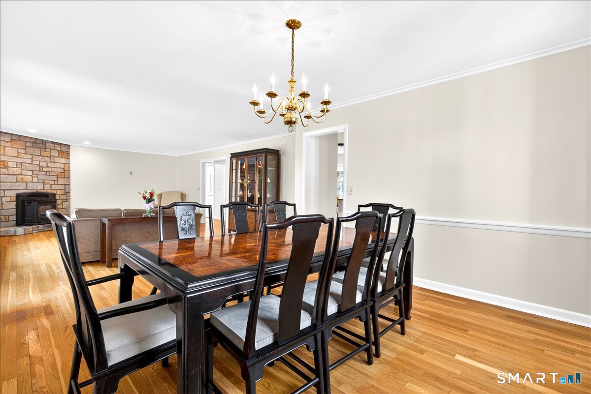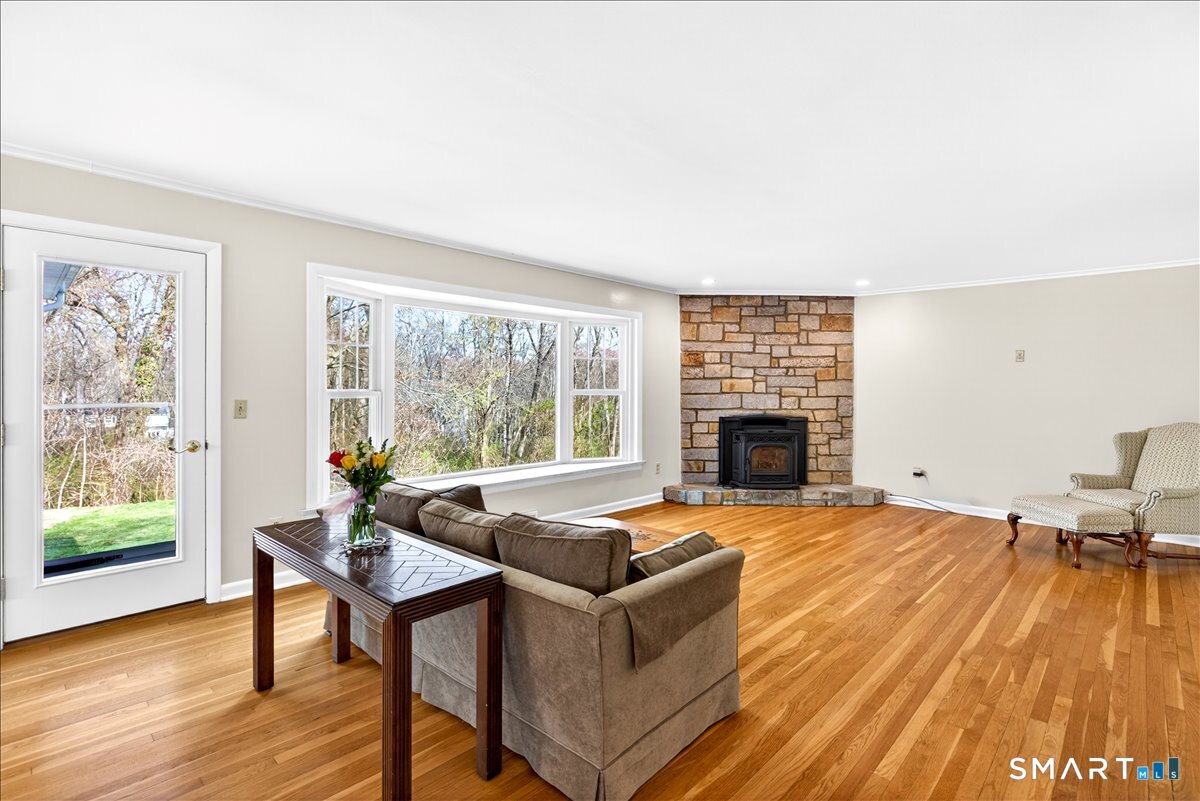 HIGHEST & BEST BY 6 PM SUNDAY 4-19-26 This exceptional one-level ranch has been thoughtfully updated from top to bottom. With a new roof in 2023. Countless upgrades throughout, every detail has been elevated to perfection. Welcomed by abundant natural light pouring through newer Harvey windows, highlighting the gleaming hardwood floors & inviting spaces.The open layout seamlessly connects the oversized living room, complete with a cozy pellet stove, to the dining area, creating an ideal setting for everyday living & entertaining. Just off the main living space, the family room features custom built-ins & offers flexibility as a second home office or 4th BR. From here, step out to an incredible open-air porch, a standout feature that provides the perfect space to relax or host gatherings.At the center of the home is the beautifully remodeled eat-in kitchen, showcasing ample cabinet space, modern finishes, & a full suite of appliances. Adjacent to the kitchen, you'll find a private home office, half bath, mudroom, laundry area, & convenient access to the two-car garage.The home offers three generously sized bedrooms and two beautifully updated full baths. The full basement provides excellent workspace/storage, along with a new oil tank, newer furnace, hot water heater, central air. Additional updates include a new well pump and brand-new septic! Set on a stunning lot in a desirable central Woodbridge neighborhood, this home is min. to Yale, shopping & town. JUST BEAUTIFUL!