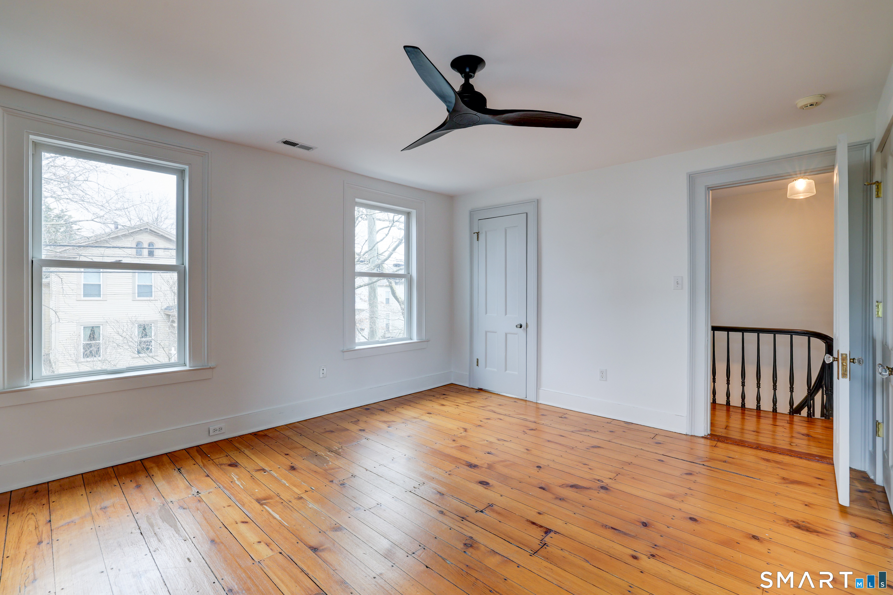 Classic charm meets modern updates in this timeless home in the heart of historic Wooster Square, featuring a welcoming columned entry with subtle Greek Revival-inspired details. The main level welcomes you with a beautifully designed blue family room with built-in bookshelves and a decorative fireplace, perfect for seasonal decor, flowing into the living room, followed by a well-sized bedroom, an ample kitchen with plenty of storage, a full bathroom with shower, and door to the basement and side entrance. The kitchen opens up to a dining room flooded with natural light overlooking the garden. Upstairs, you'll find two more bedrooms and a generous master with a clawfoot tub full bath. Connected to the master is a large Trex deck featuring views of the city. A cozy seating area with a second decorative fireplace, a dedicated laundry room, and walk-up attic access with additional storage complete the second floor. Beautiful, well-preserved hardwood floors run throughout the home. Enjoy the outdoors with a well-sized yard, a spacious storage shed, and off-street parking for up to two cars (tandem). Major updates include a newer roof, two newer gas furnaces, a water heater, a central air system with two condensers, and added insulation, all within the last 2-3 years. This home is just minutes from Yale University, downtown, parks, Farmer's Market on Sat. and a wide variety of renowned restaurants. Home is eligible for the Yale Homebuyer Program (according to the Yale website).
