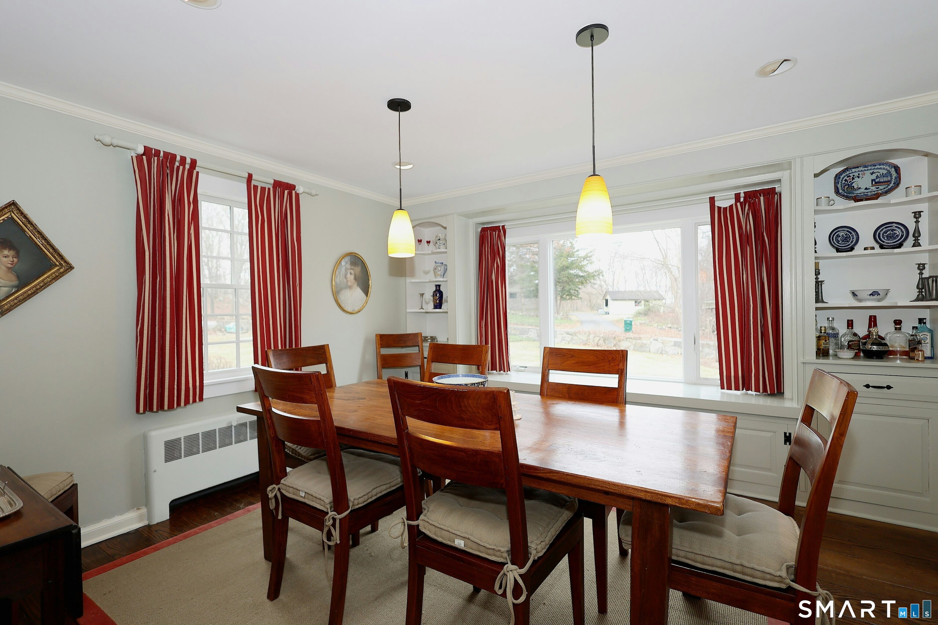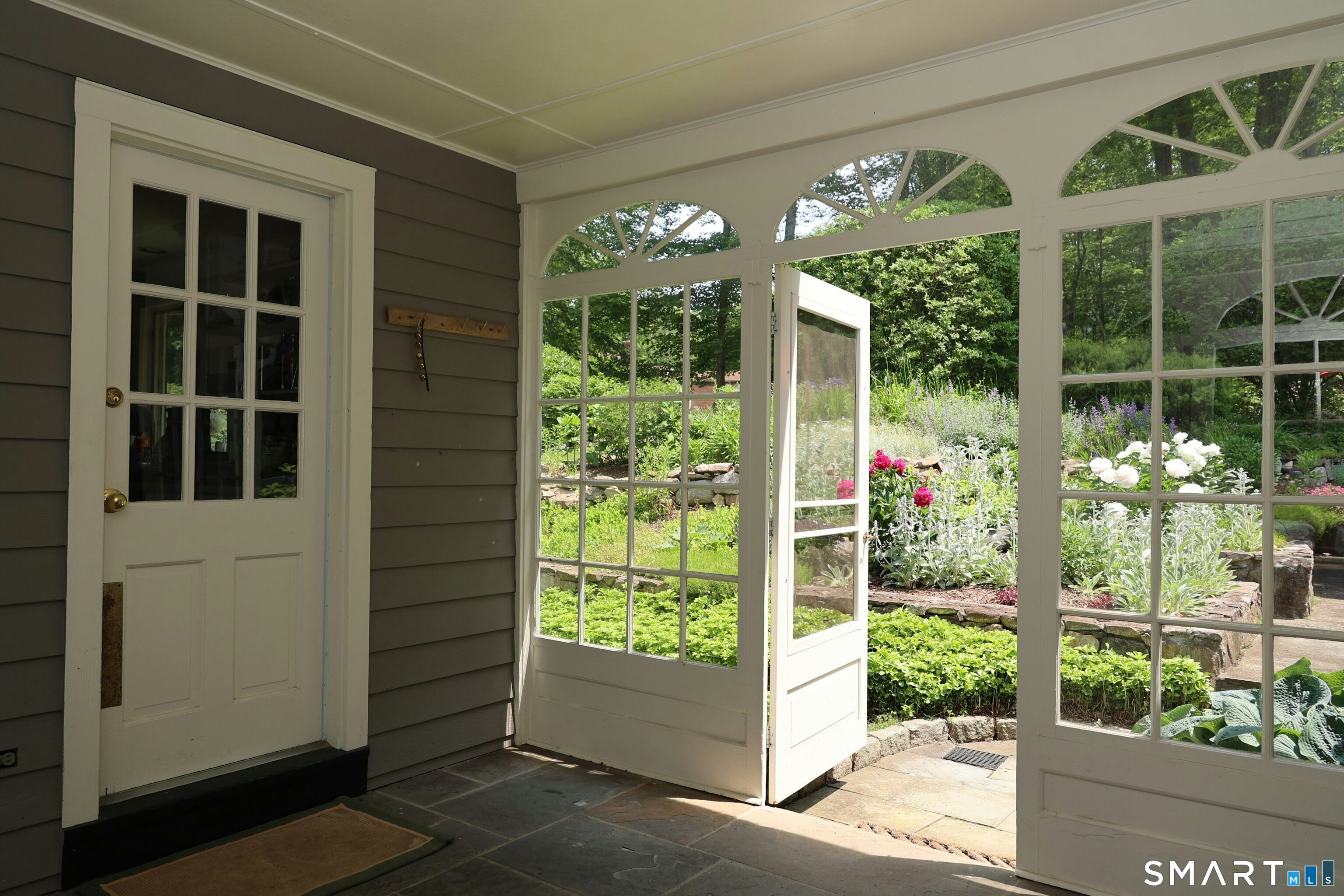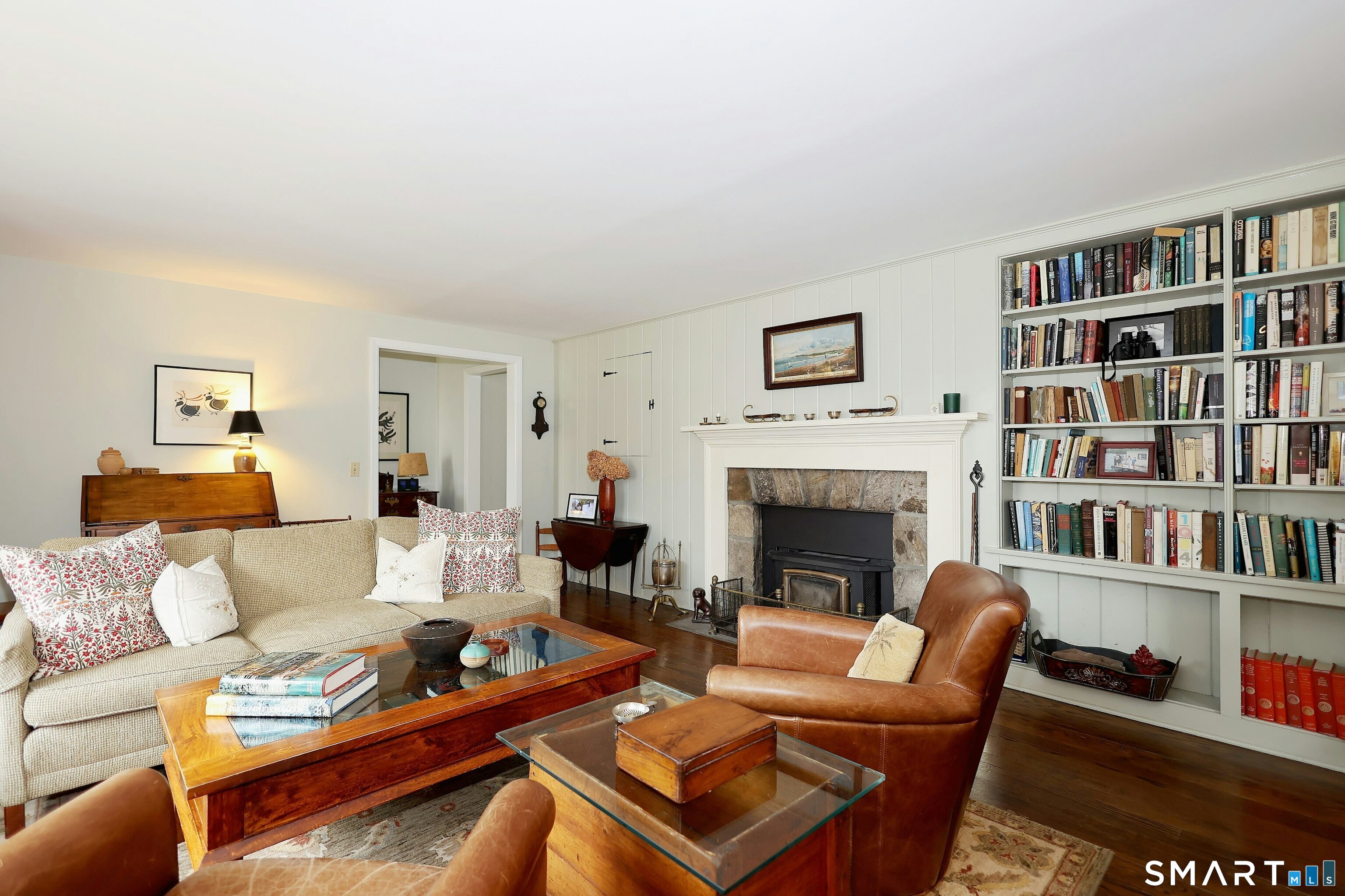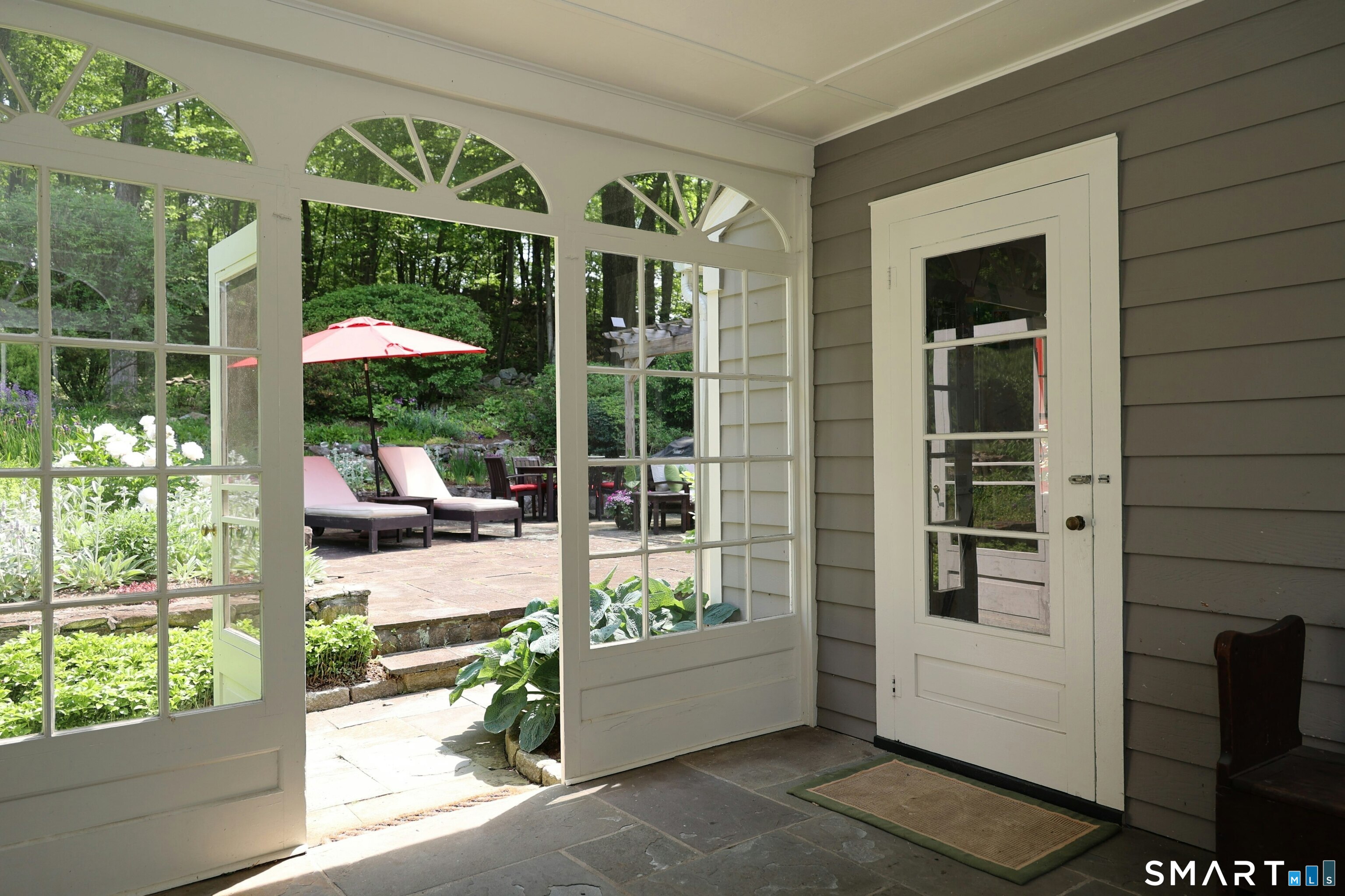 Casually elegant stone & clapboard ranch on stunning property in most desirable West Redding. Park-like setting w/extensive flowering gardens, specimen trees, stone walls, stone patios, & inviting covered pergola seating area. This sophisticated home beckons w/glass breezeway between the 2 car garage w/cheery cupola & the main home w/fieldstone foundation, chimney, & cladding. Generous proportions & open flow including 1,373 sf on the main level plus 735 sf in the walk-out lower level w/total 2-3 BRs & 2 full baths. The heart of this home is the large living room w/custom built-ins & stone fireplace w/wood burning stove insert. The DR, open from the LR for ease of entertaining, features wide board floors & custom built-in shelving/lower cabinets flanking a large picture window. The main floor also features the bright white kitchen w/open shelves, S/S appliances, pantry & views to the stone patio/gardens. The bedroom wing offers one large BR w/multiple closets; 2nd BR w/built-in shelving, currently used as a den; plus the hall bath w/updated vanity & tub/shower. The walk-out lower level has been completely updated to create flexible living space including a family room w/2nd fieldstone fireplace; optional primary suite or guest bedroom w/French door to the stone patio; & full bath featuring glass basin sink & deep soaking tub. Many updates including exterior repainted & brand new roof (2025). Top location in sought after Redding, the "VT of CT," yet just 61 miles to Midtown.