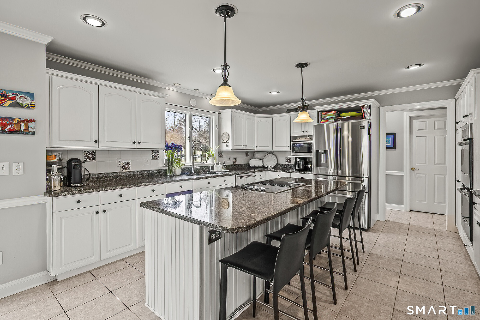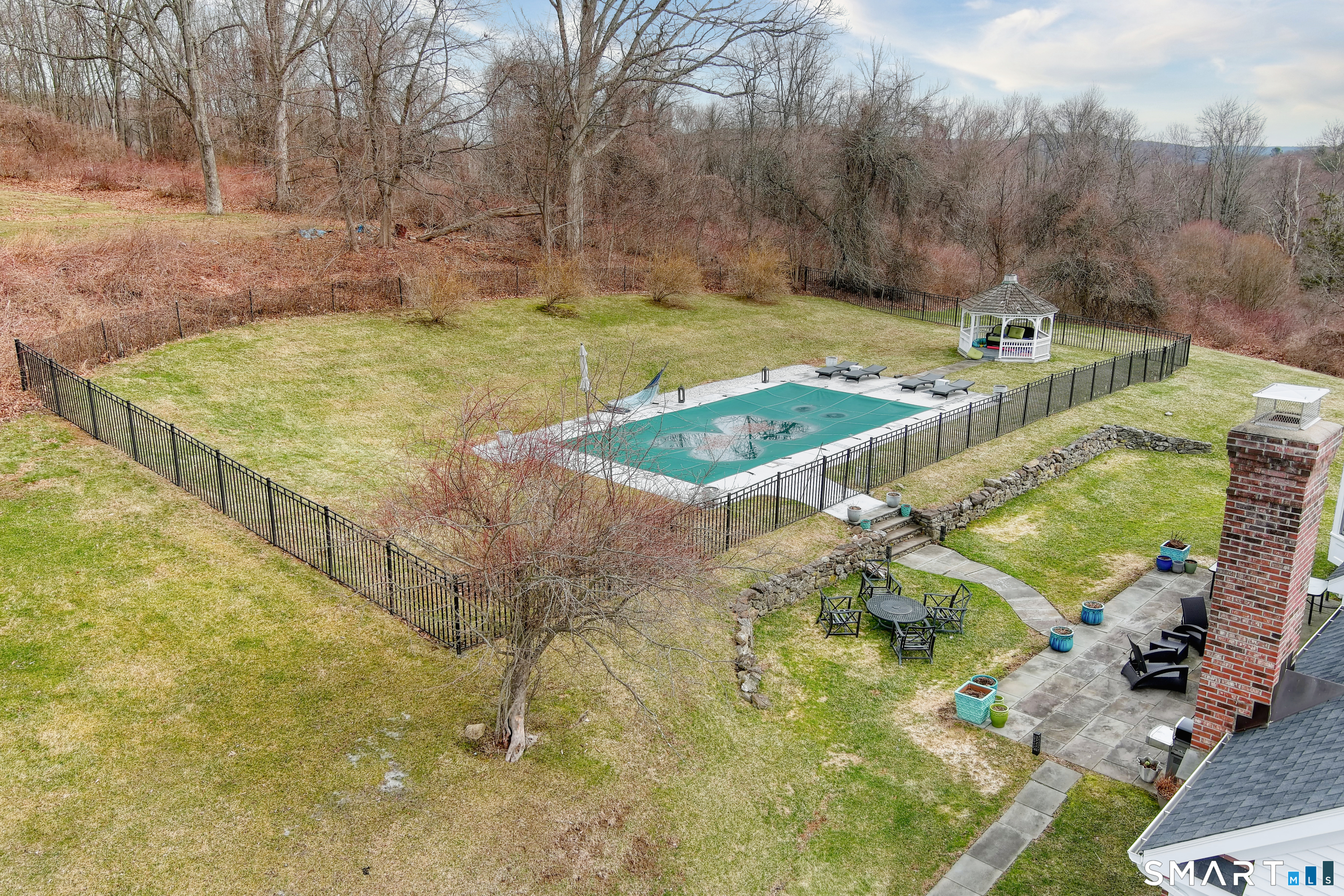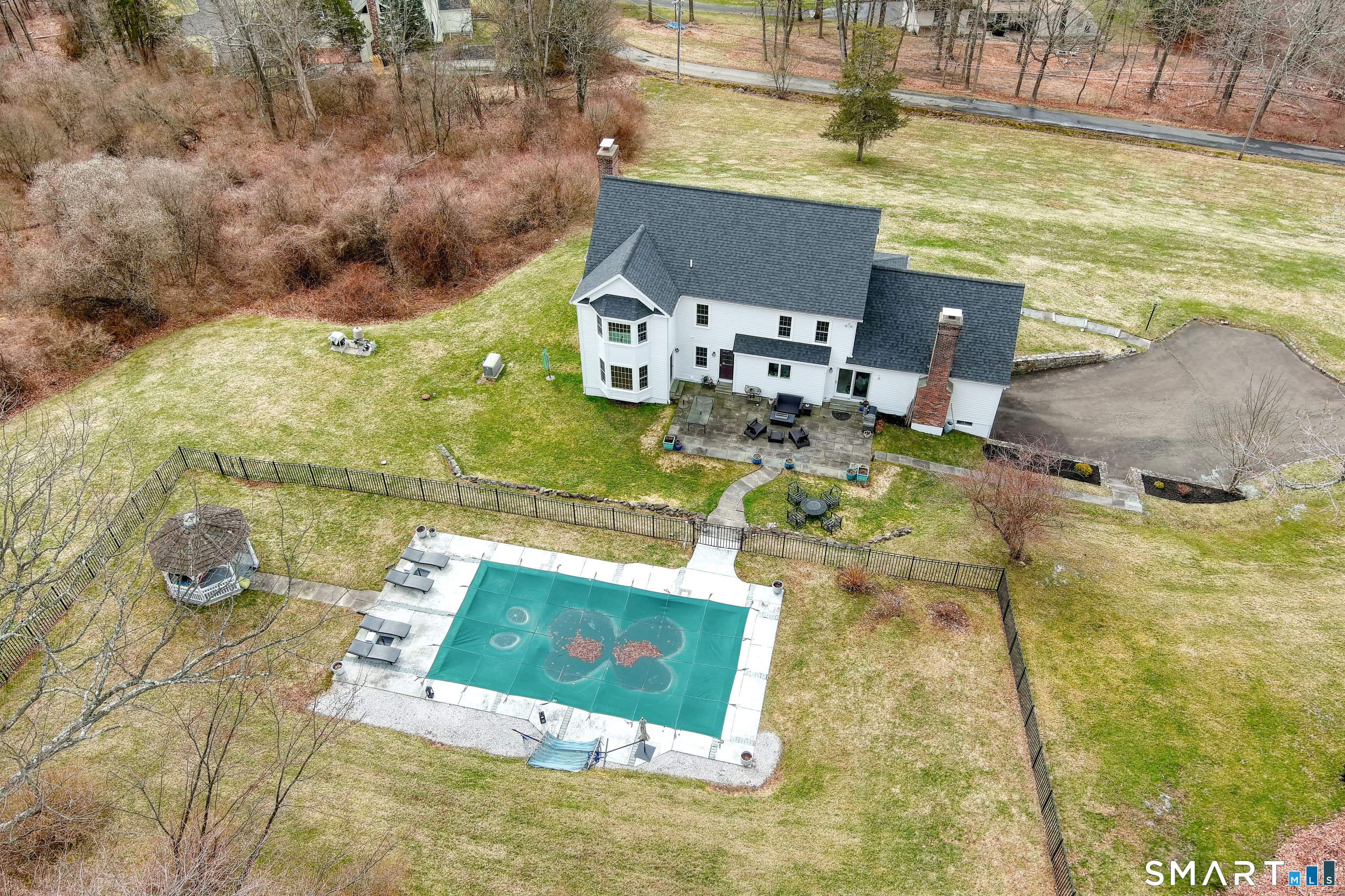 Magnetically sited on a picturesque three-acre lot, this beautifully updated Colonial Farmhouse offers the perfect fusion of timeless charm and modern luxury. This turnkey, four bedroom, 3.5-bathroom residence provides an unmatched lifestyle with exceptional features both inside and out. The home features an expansive, open floor plan designed for sophisticated living and seamless entertainment. The main level includes a Formal Living Room with a fireplace, a Formal Dining Room, & a Office with custom built-ins. The large Eat-In Kitchen is open to a huge Family Room with a second fireplace, creating a warm and inviting hub. A main-level Laundry Room and Powder Room add convenience. The Primary suite is a true retreat with double walk-in closets and stylish new suite bathroom. Additional three generous bedrooms are upstairs and a finished lower level with a full bathroom complete the spacious layout. Experience unparalleled outdoor living in your own private sanctuary. Stunning views greet you from all rooms. The backyard is a true resort-style oasis featuring a Gunite pool, Gazebo, back yard. Multiple outdoor spaces-including a wrapped front porch, bluestone patio facing the pool, are ideal for al fresco dining & year-round enjoyment. Whole house generator. The 3-acre property is lush, private landscaping and amazing sunsets to ensure a magical and secluded escape. This home blends style with functionality, and a prime location just ten minutes to Main Street and highway.
