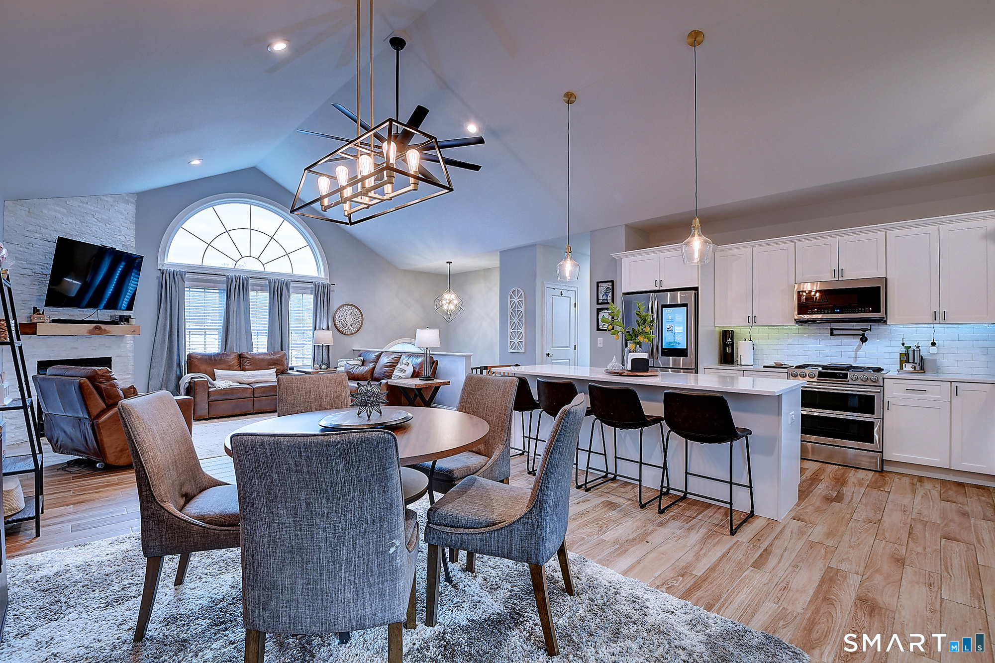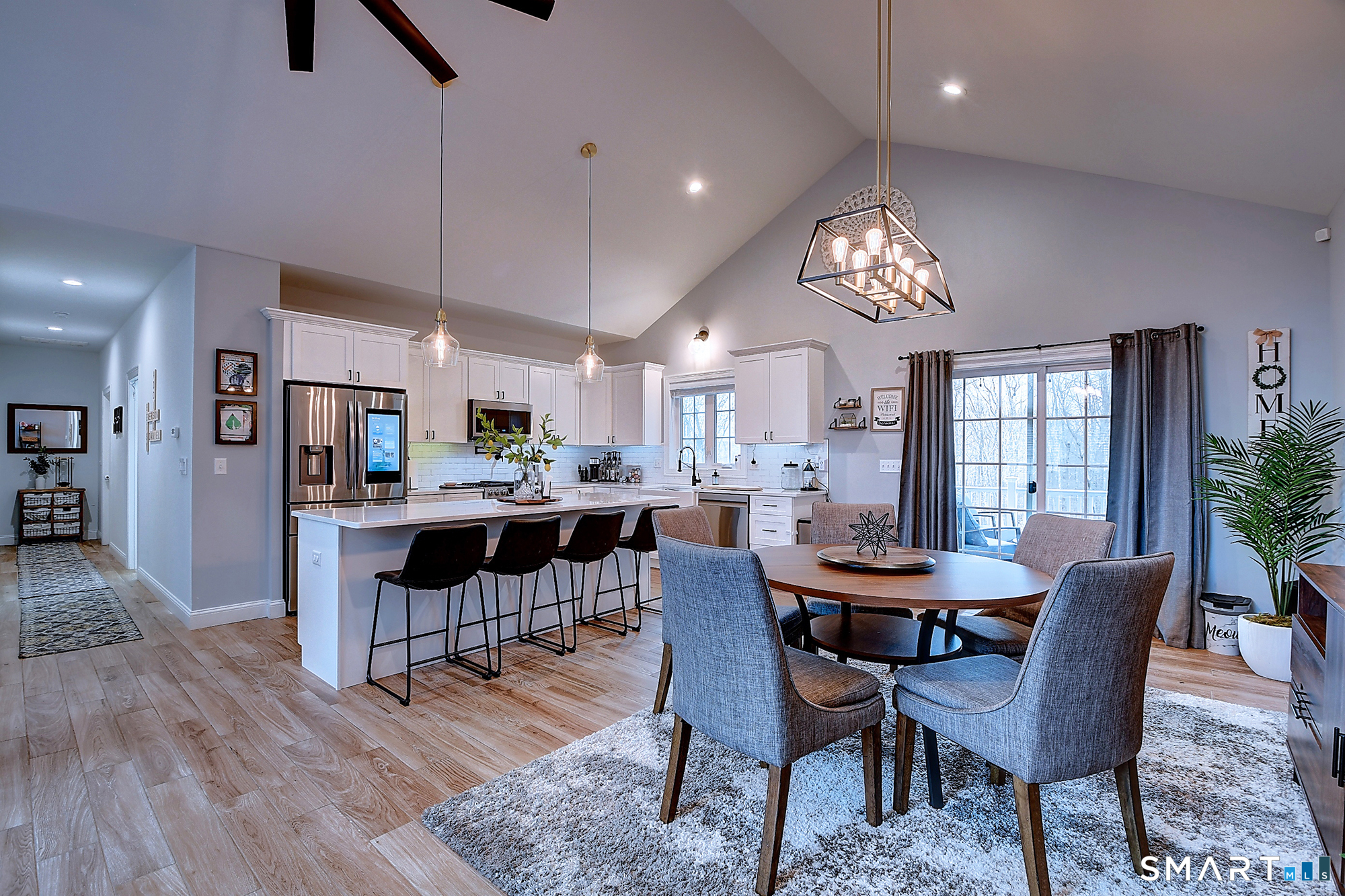 Meticulously maintained with pride of ownership. Move right into this practically new home today. Modern farmhouse vibe with on trend color choices and finishes. At the center of this home, you will find soaring ceilings and an abundance of natural light. The chef's kitchen will impress featuring custom white cabinetry, quartz counter tops, tile backsplash, pot filler, stainless steel smart appliances and a large center island that is great for entertaining. Open concept living with great room and dining room adjacent to the kitchen. Floor to ceiling stone fireplace with gas insert. On the main level you will find three bedrooms including the primary suite with attached private spa like bathroom. Both bathrooms on the main level offer dual vanities and plenty of storage. In the professionally finished lower level you will find a family room, the fourth bedroom with built-in murphy bed, currently used as a home office and a full bathroom creating a flexible space or even an in-law suite. Attached oversized two car garage with additional storage space and an included Tesla Charger. Central Air Conditioning! Whole House Generator! Fabulous private yard with plenty of room to enjoy and covered back deck. This home is a must see! Offer deadline 3pm Monday, March 29th.