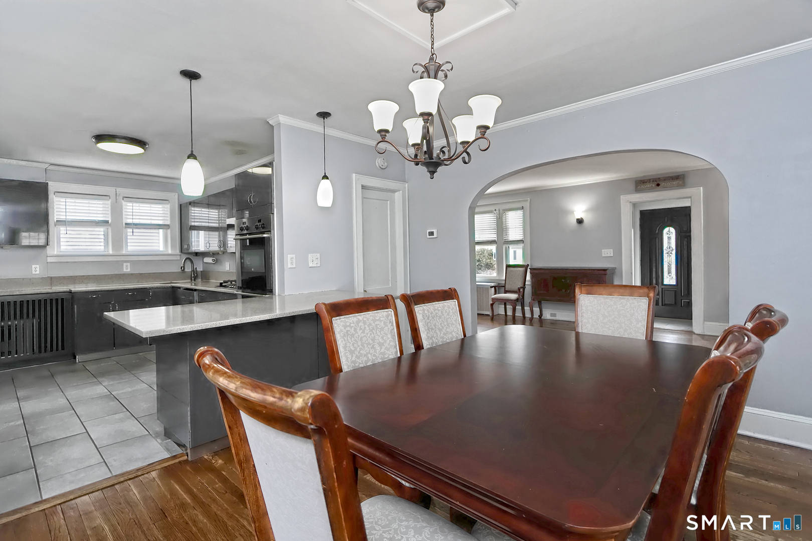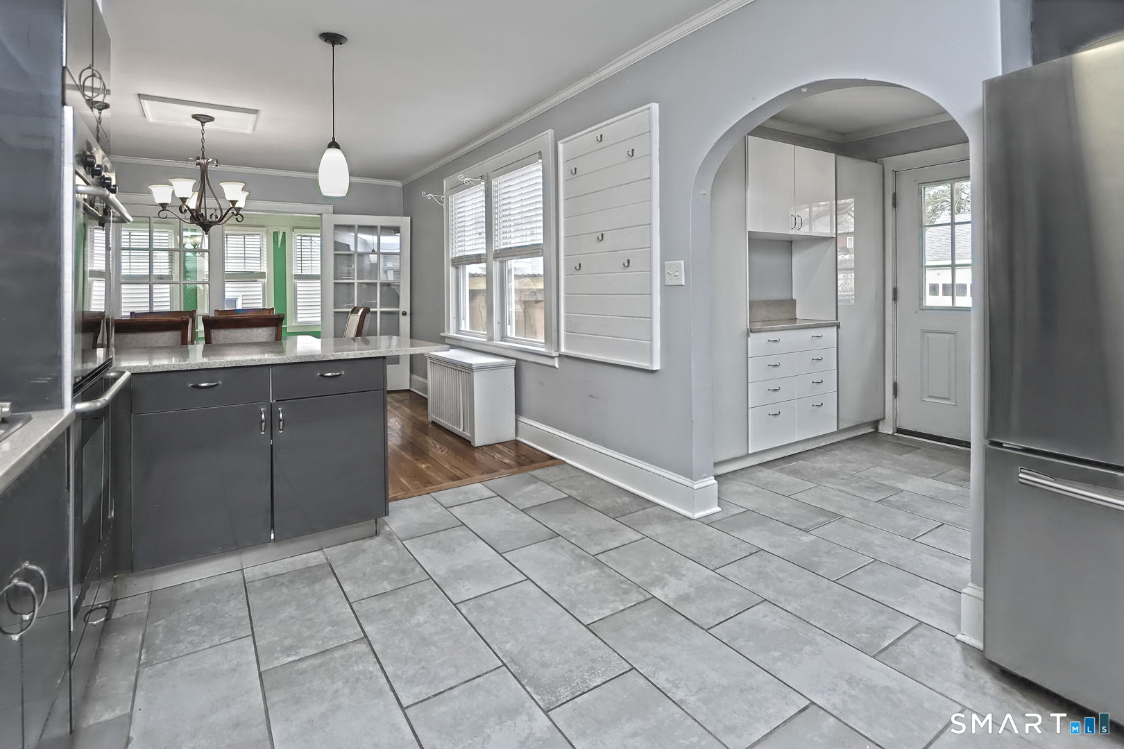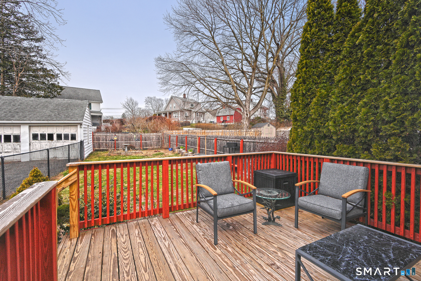 Sought after "Paradise Green" area! Walk to Stratford's beautiful green with vibrant shops and restaurants, and just minutes to Stratford's train station. Move right into this beautifully updated, classic, and spacious colonial with a desirable first floor open floor plan. The main floor boasts a spacious living room filled with natural light, beautiful hardwood floors, built ins, and woodburning stone fireplace. A formal dining area provides the perfect setting for entertaining family and guests. The updated kitchen shines with granite countertops, a breakfast bar, stainless steel appliances, and a large rear pantry area! Just off the dining room is a warm, versatile, heated sunroom/office area, ideal for working from home or enjoying a quiet retreat. Completing the main floor is a convenient half bath. Upstairs features beautiful hardwood floors, three spacious bedrooms with generous closet space, and a beautifully updated full bathroom with a walk-in shower that is easily accessible from all bedrooms. Outside, enjoy a level, fully fenced backyard, perfect for outdoor gatherings, gardening, or pets, complete with a deck for relaxing or entertaining. Notable mentions include a walkup attic area for storage or a playroom, a full, clean basement with plenty of storage space, and a detached two car garage. This charming colonial is a must see! Perfectly located, updated, offering flexible living spaces, and full of charm, making it a wonderful place to call home.