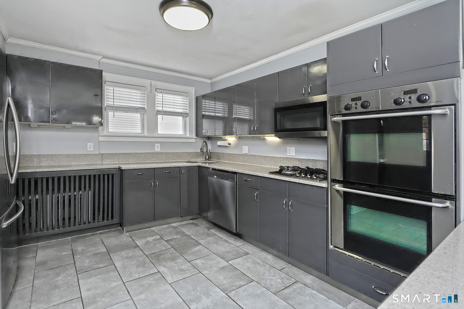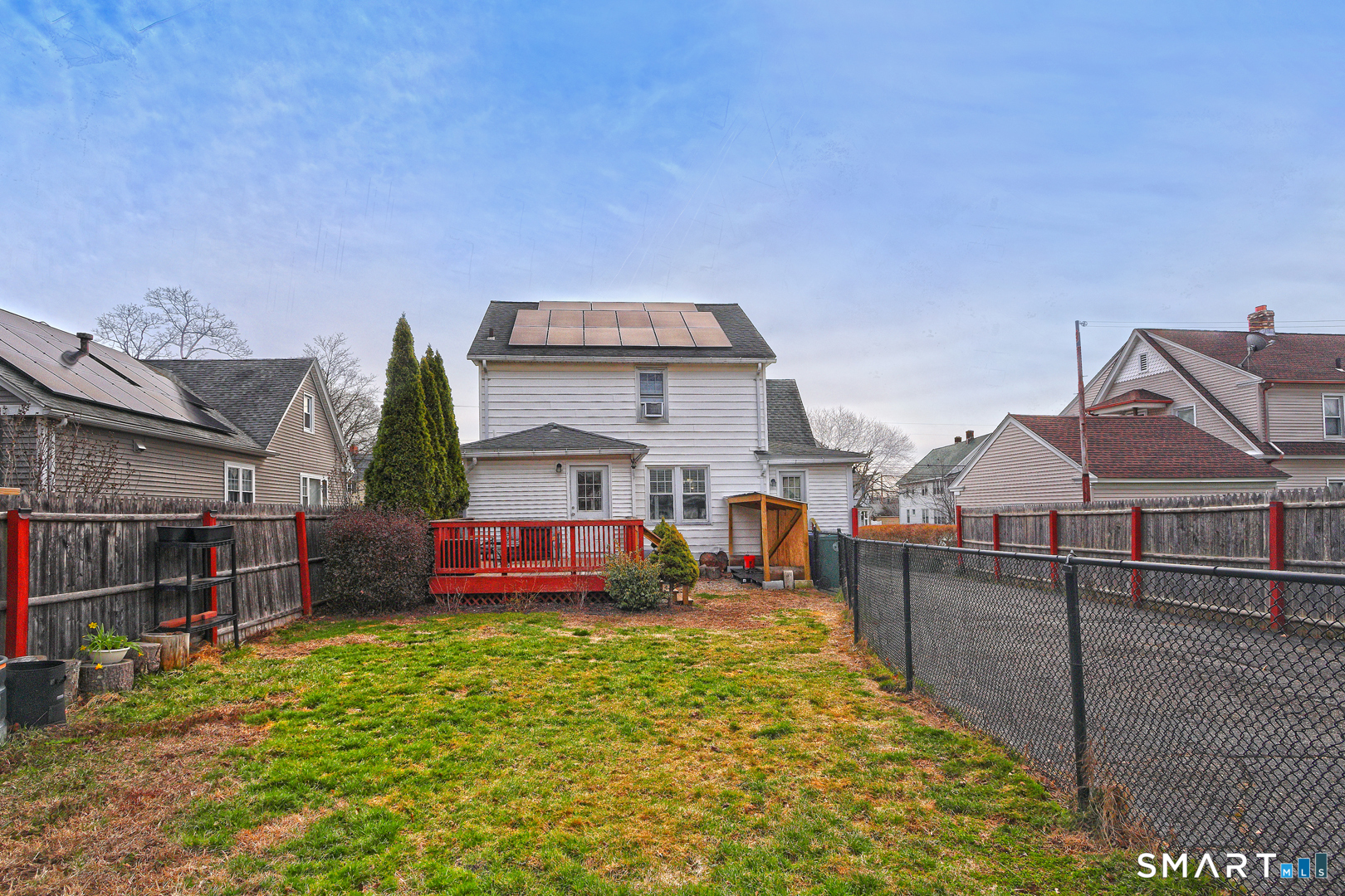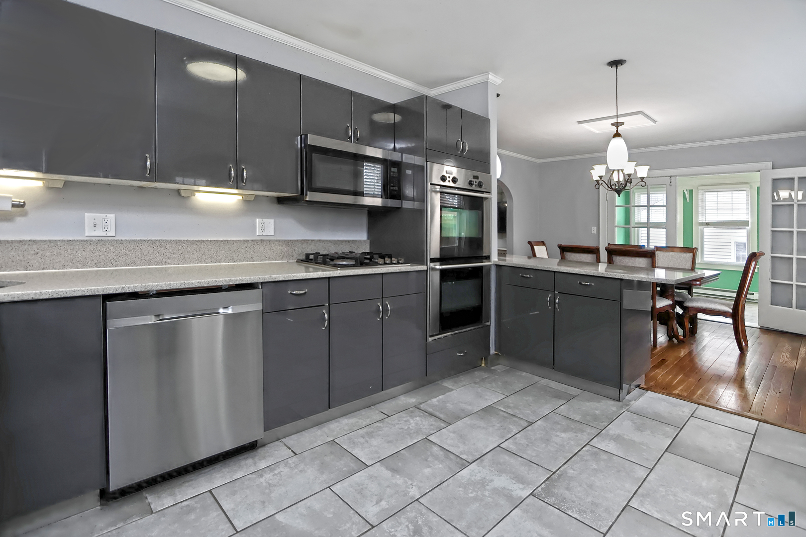 Sought after "Paradise Green" area! Walk to Stratford's beautiful green with vibrant shops and restaurants, and just minutes to Stratford's train station. Move right into this beautifully updated, classic, and spacious colonial with a desirable first floor open floor plan. The main floor boasts a spacious living room filled with natural light, beautiful hardwood floors, built ins, and woodburning stone fireplace. A formal dining area provides the perfect setting for entertaining family and guests. The updated kitchen shines with granite countertops, a breakfast bar, stainless steel appliances, and a large rear pantry area! Just off the dining room is a warm, versatile, heated sunroom/office area, ideal for working from home or enjoying a quiet retreat. Completing the main floor is a convenient half bath. Upstairs features beautiful hardwood floors, three spacious bedrooms with generous closet space, and a beautifully updated full bathroom with a walk-in shower that is easily accessible from all bedrooms. Outside, enjoy a level, fully fenced backyard, perfect for outdoor gatherings, gardening, or pets, complete with a deck for relaxing or entertaining. Notable mentions include a walkup attic area for storage or a playroom, a full, clean basement with plenty of storage space, and a detached two car garage. This charming colonial is a must see! Perfectly located, updated, offering flexible living spaces, and full of charm, making it a wonderful place to call home.