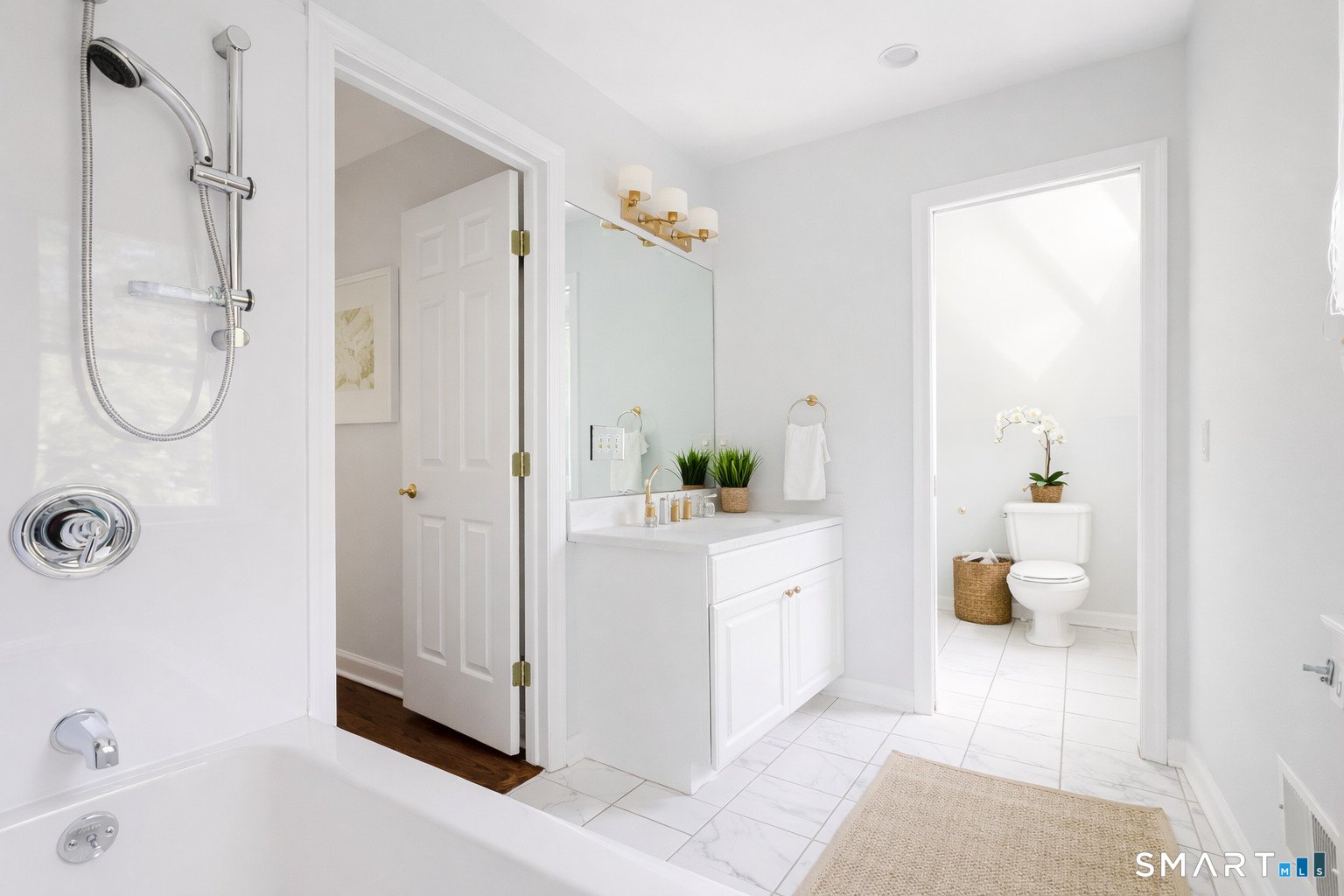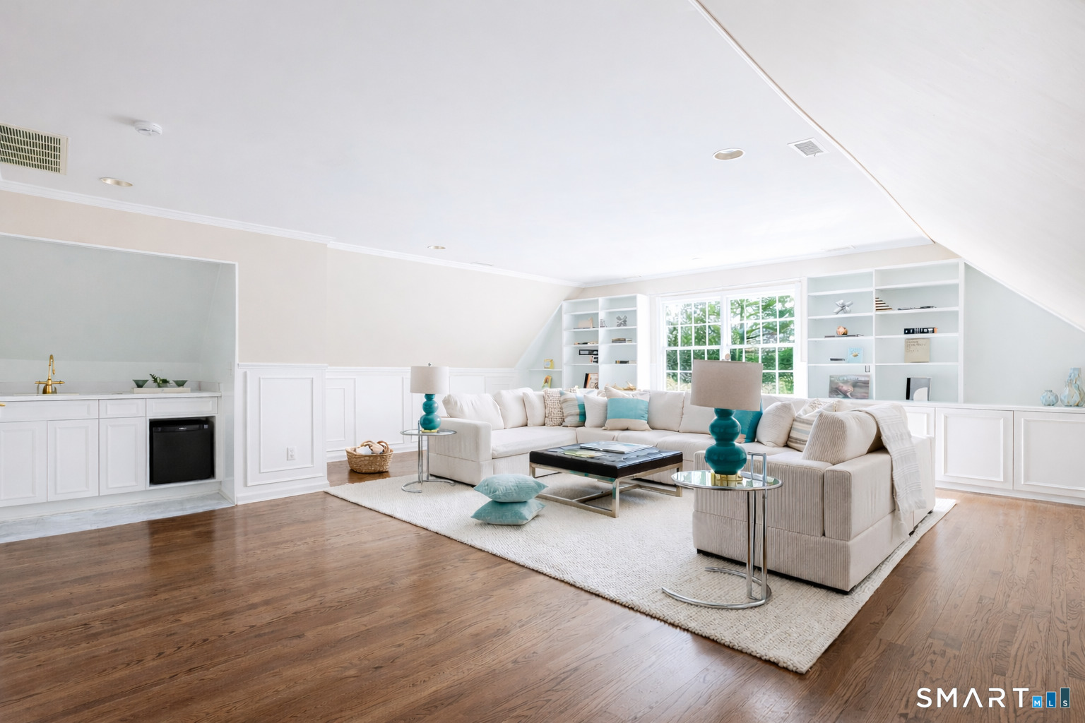 Storybook charm meets modern living in the heart of New Canaan! Ideally located just steps from the YMCA, Waveny Park, top-rated schools, and a short stroll to the vibrant downtown, this exceptionally charming Cape Cod / Colonial-style home offers the lifestyle you've been waiting for. Thoughtfully designed and beautifully maintained, this expansive residence features 5 spacious bedrooms and 4.5 baths, including a rare and highly sought-after dual primary setup with luxurious suites on both the first and second floors -- offering ultimate flexibility, comfort, and privacy. At the heart of the home, a stunningly remodeled kitchen flows seamlessly into the inviting family room, where sweeping green views of the backyard can be enjoyed from the brand new deck -- perfect for everyday living and effortless entertaining. A second oversized family / great room just off the kitchen provides even more space to gather, relax, and host. Designed for today's lifestyle, the home also offers multiple dedicated office spaces, ideal for remote work or creative pursuits. The lower level is a true standout, featuring three expansive finished areas -- perfect for a media room, recreation space, fitness area, or additional office setup. This home checks every box with the coveted trifecta of town water, town sewer, and natural gas.