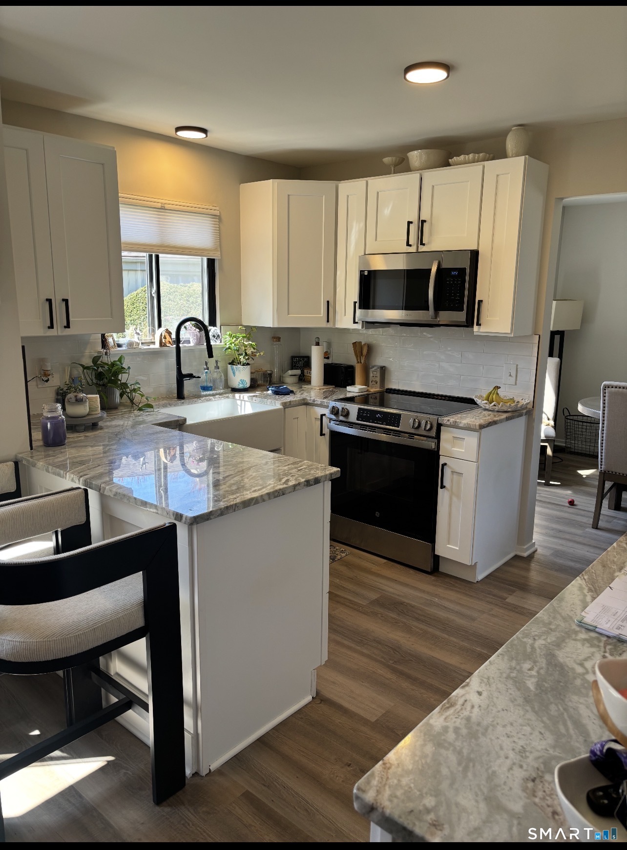 Welcome to 29 Lake Road, located in the highly desirable 55+ active community of Heritage Village! This beautifully maintained Upper Mark Twain unit is truly in pristine, move-in ready condition. Offering 2 bedrooms, 2 full bathrooms, and 1,076 square feet of comfortable living space, this home has been thoughtfully updated throughout. The remodeled kitchen is a standout feature, showcasing sleek granite countertops, stunning white cabinetry, a farmhouse sink, and newer appliances-perfect for both everyday living and entertaining. Enjoy meals in the elegant dining room, then unwind in the cozy and inviting living room. The home features two generously sized bedrooms with ample closet space, along with two tastefully updated bathrooms. The primary bathroom includes a double vanity, and both bathrooms are finished with beautiful tile flooring. Additional upgrades include new flooring throughout, recessed lighting, new heat pump, and modern window treatments, adding both style and comfort. Step outside to your private patio off the living room-an ideal spot to enjoy your morning coffee while soaking in the peaceful surroundings. This unit is perfectly situated near scenic ponds, walking trails, and conveniently close to activity buildings.