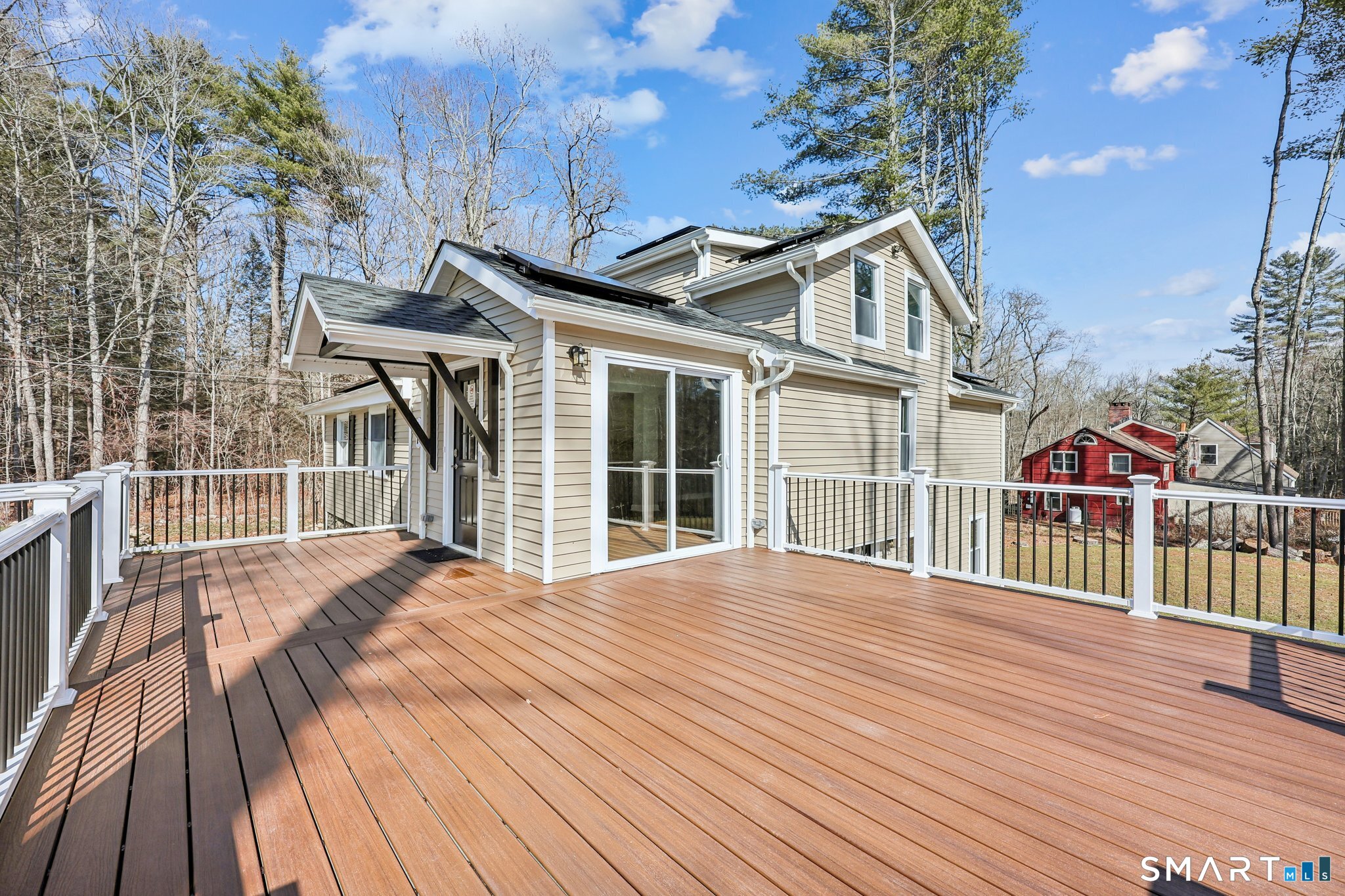 FULLY RENOVATED! In addition this home is fully insulated, energy-efficient, and enhanced with solar panels for low utility costs. The open floor plan and cozy fireplace create the perfect space for gatherings, while multiple decks, an above-ground pool, and serene natural surroundings provide a tranquil retreat-ideal for year-round living or a weekend getaway. Located perfectly on a beautiful acre with most of it in the backyard offers great entertaining space. A loft provides additional flexible space for a fourth bedroom or office. Finished lower level offers additional options for a play room, game room or office. The spacious garage allows for tools and additional storage.