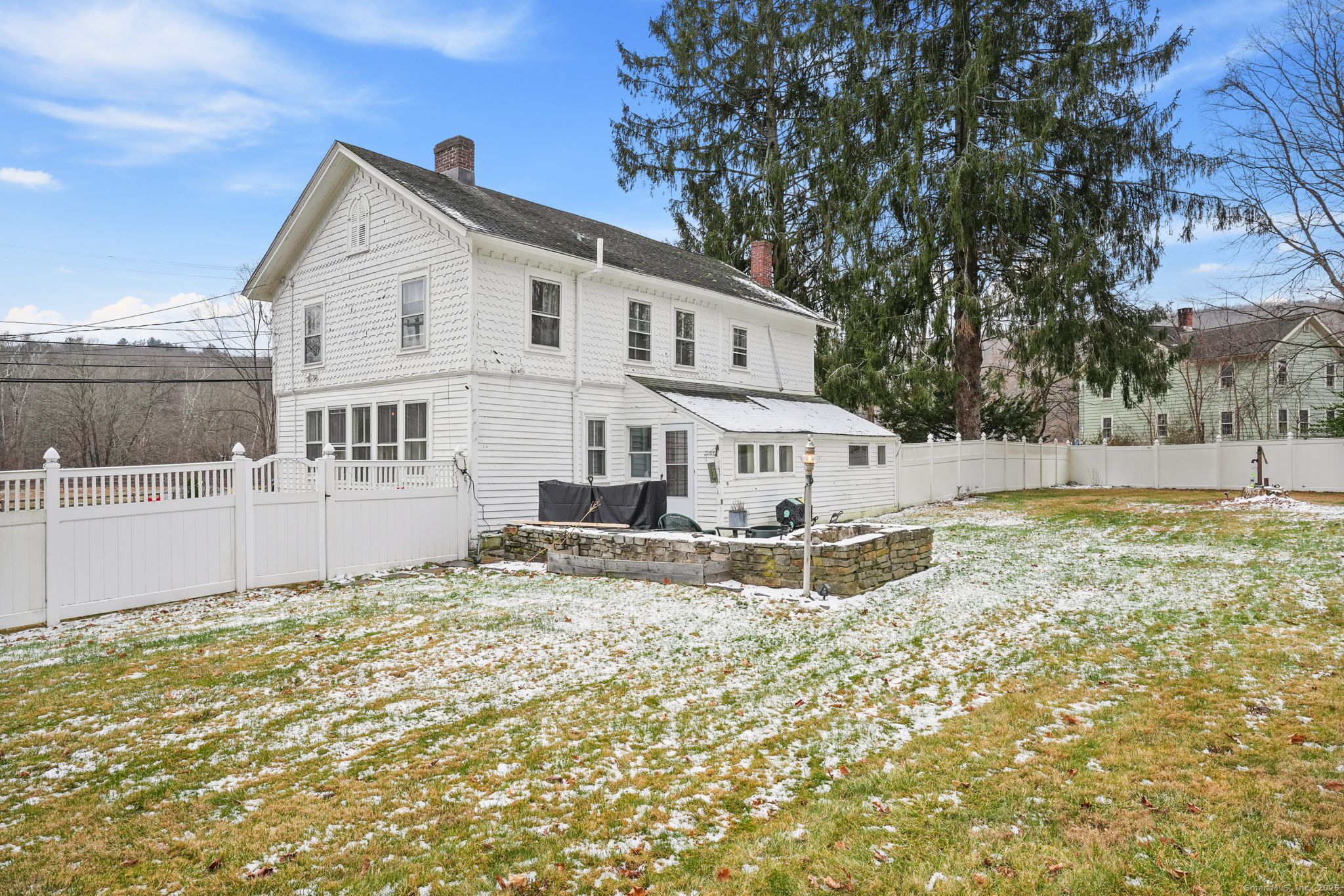 Step back in time with this historic 1800s Colonial that retains its original character and charm while offering modern amenities, including an updated kitchen and bathrooms. The home features four bedrooms upstairs with wood floors, including a primary bedroom with an attached room currently used as an office. The main level with a den, living room with fireplace, dining room, and a mahogany-floor kitchen. Plus a mudroom/laundry room leading to the back patio. A large barn provides ample storage, and the property includes a 1,250-gallon 4-bedroom septic tank installed in 2008, a fully fenced backyard, and a 24-foot-wide new asphalt driveway. Recent upgrades include a new barn roof and framing, new 200-amp electrical panel and some wiring in the main house, insulated exterior walls, remodeled shower and fireplace, new wainscoting in the upstairs hallway, new glass backsplash in the kitchen, and restored original wood floors upstairs. Enjoy relaxing on the front porch or rear stone patio and take advantage of nearby hiking trails, parks, and open space, with Southbury, Bridgewater, and Washington town centers just a short drive away. Confirmed appointment required for showings.