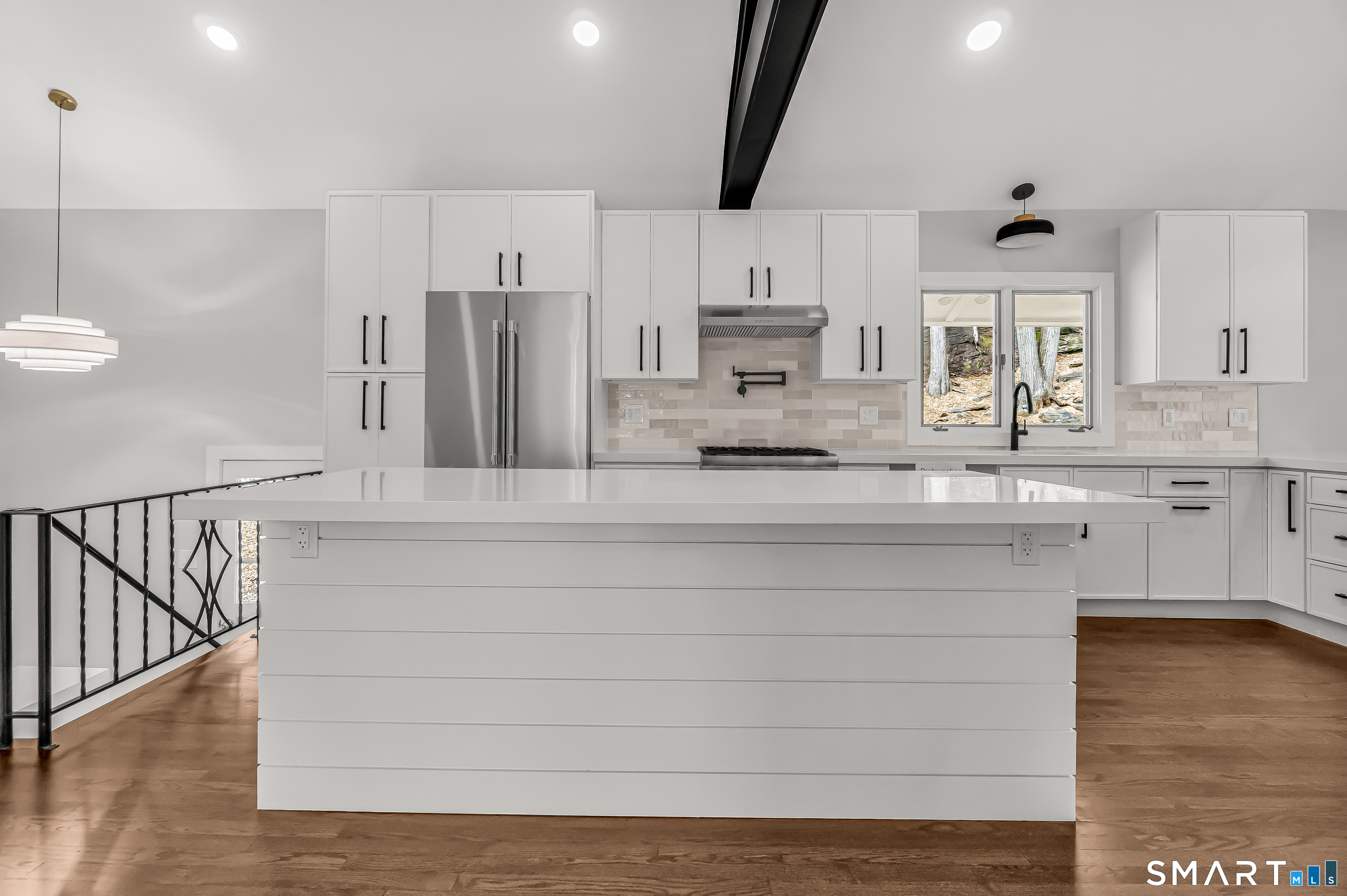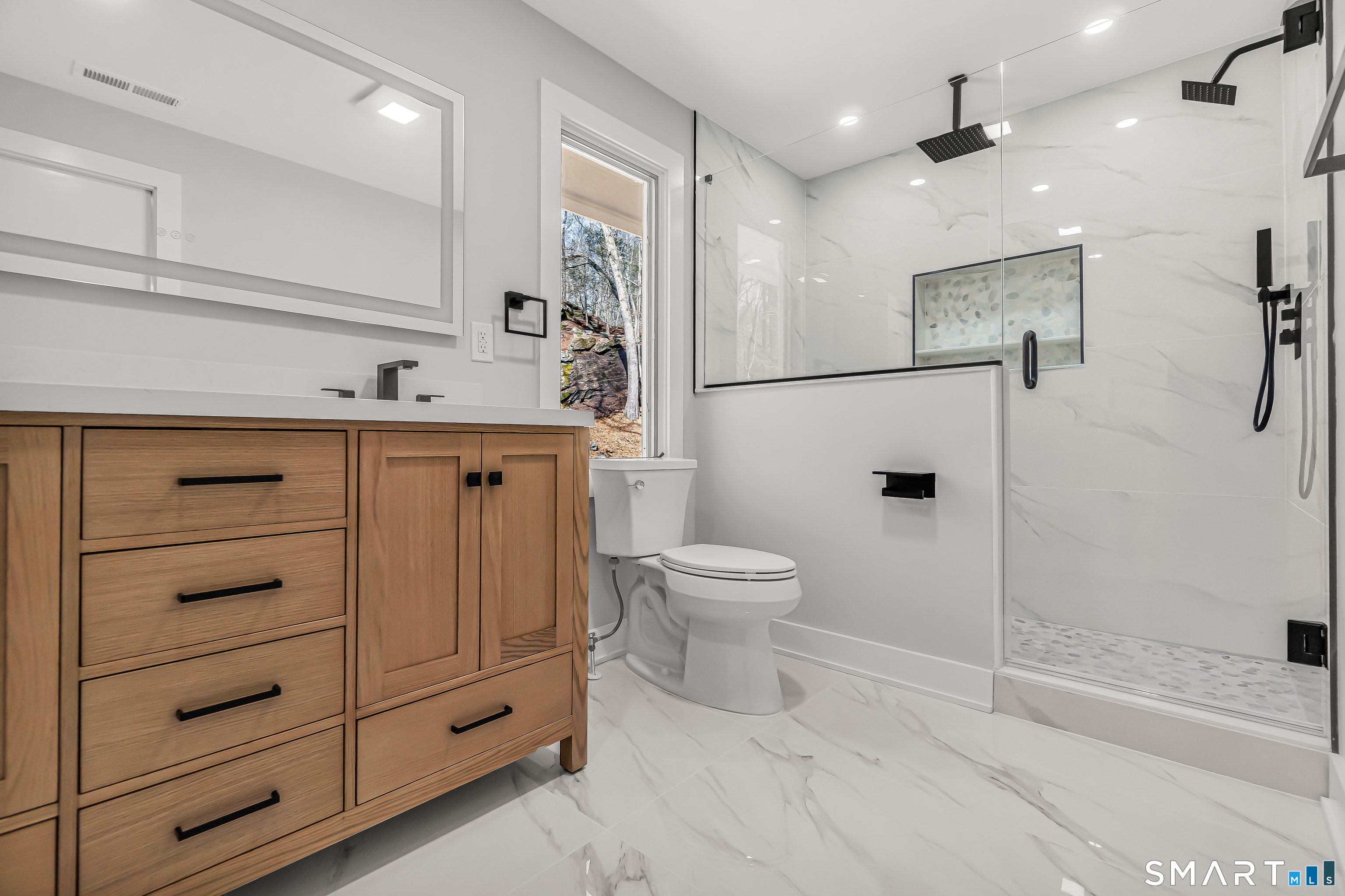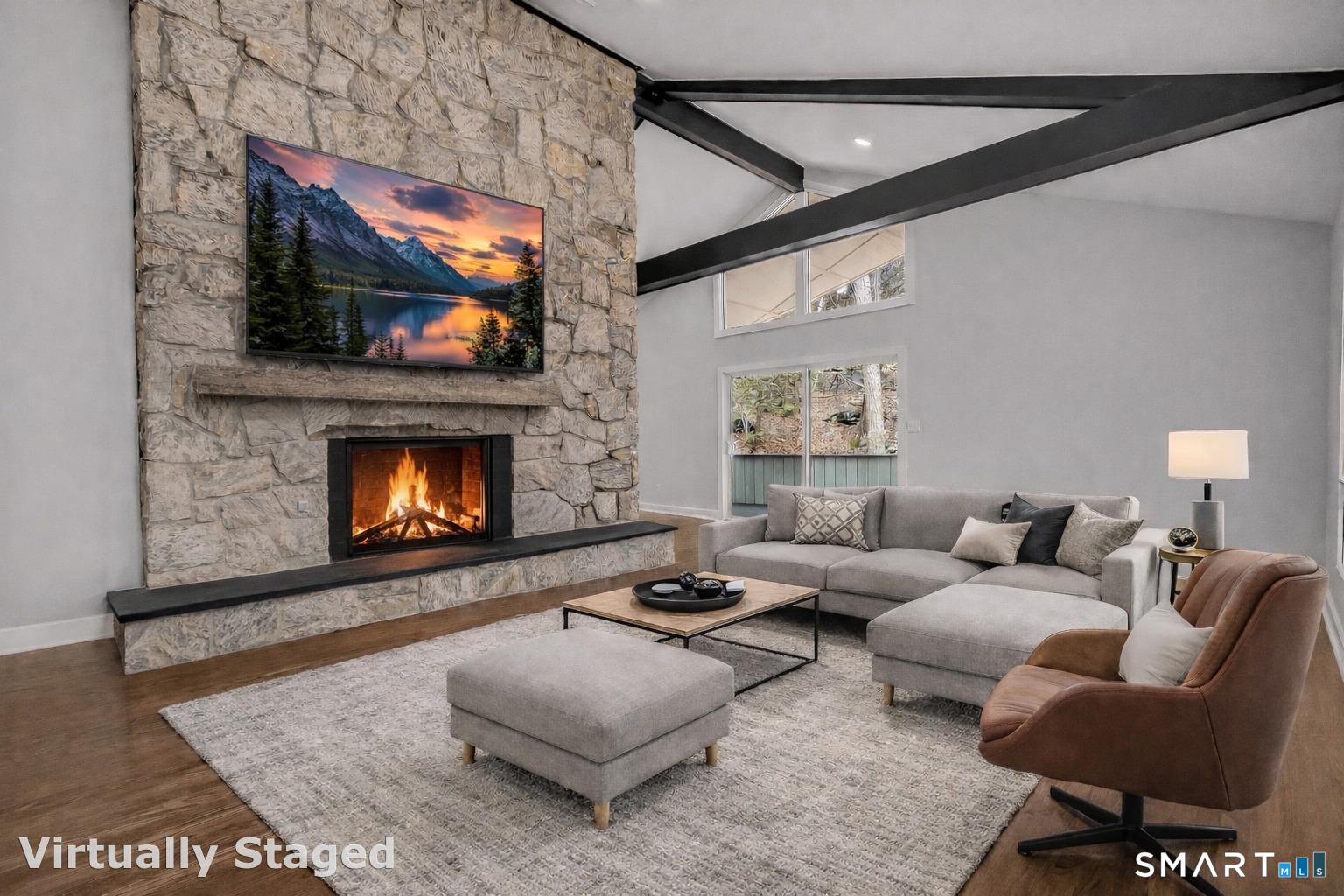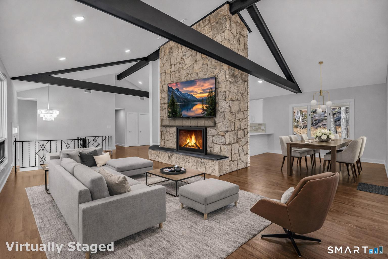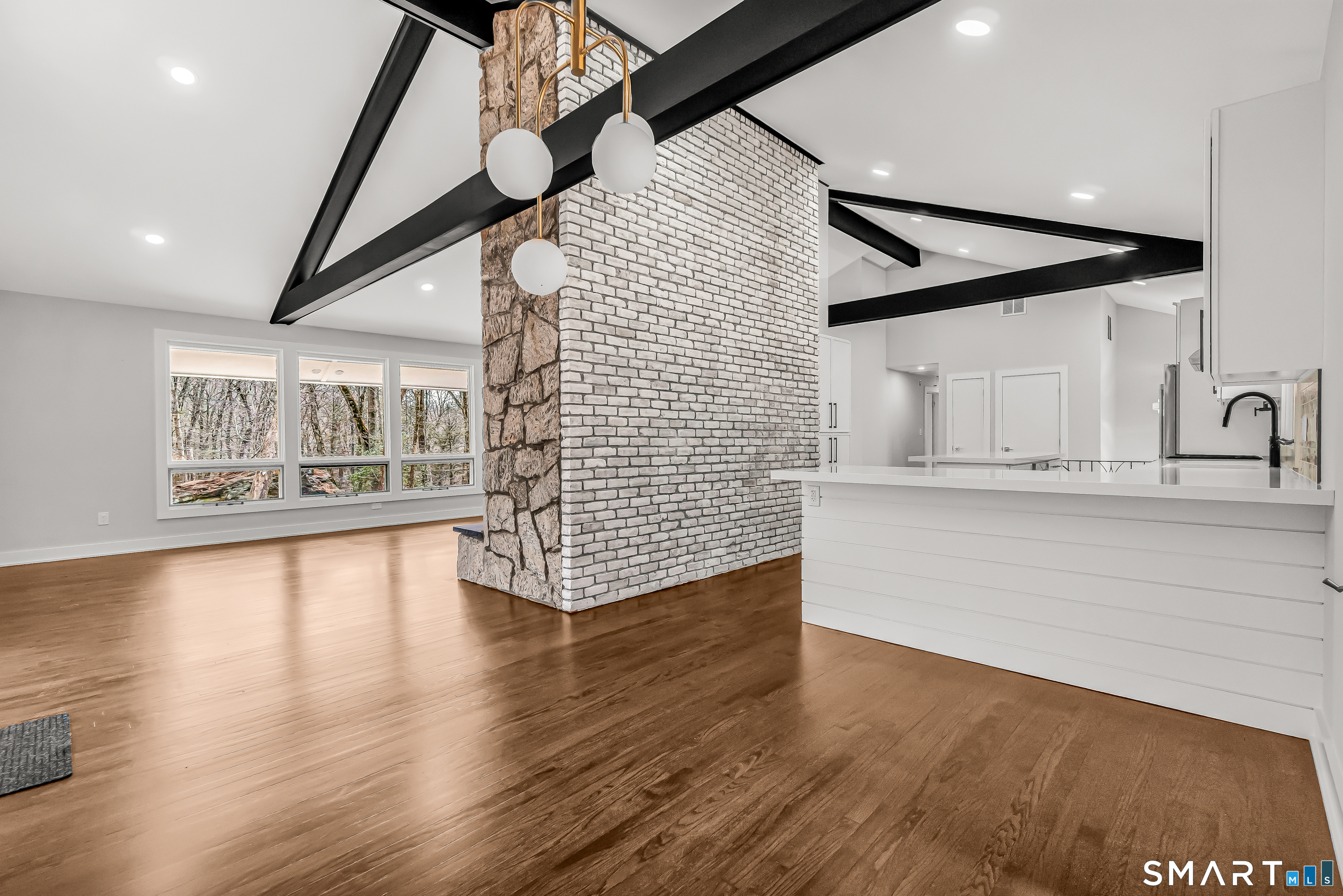 Builder renovated mid-century modern stunner in a super convenient Lower Easton location. This beautifully redesigned home features an open floor plan with soaring vaulted ceilings, oversized windows, and dramatic 8-foot sliders that flood the space with natural light. The stunning living room is anchored by a floor to ceiling stone gas fireplace and opens to a covered balcony overlooking the private yard. A gorgeous new kitchen offers abundant modern cabinetry, a full Thermador appliance package, and large center island. The primary suite features a walk-in closet, a lavish new primary bath with an oversized shower, and its own private covered balcony. Another redesigned modern bath with double vanity services the other main level bedrooms. The lower level offers substantial additional living space with a family room with double-sided fireplace, office/4th bedroom, another stunning full bath with a large shower, and a spacious laundry room which can be converted to a kitchenette, making it ideal as extra living space for the family or perfect as potential in-law setup. New trim, hardware, and LED lighting throughout. New high-efficiency furnace and central air system for added comfort. All set on a large, professionally landscaped lot with a new driveway, new front walkway, and a very private yard. A rare blend of modern design, function, and privacy in this ultra convenient Lower Easton location. Truly nothing to do but move in.