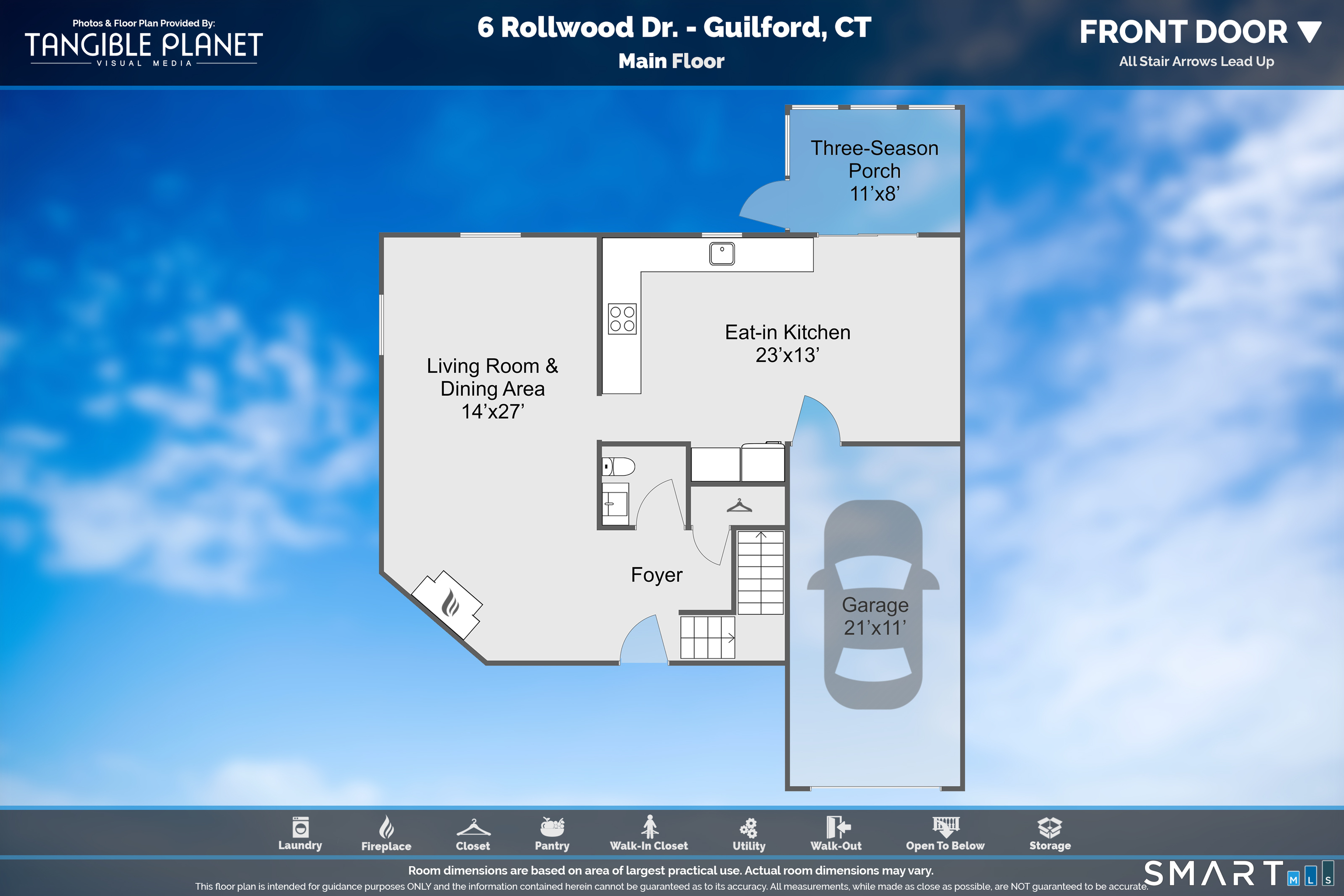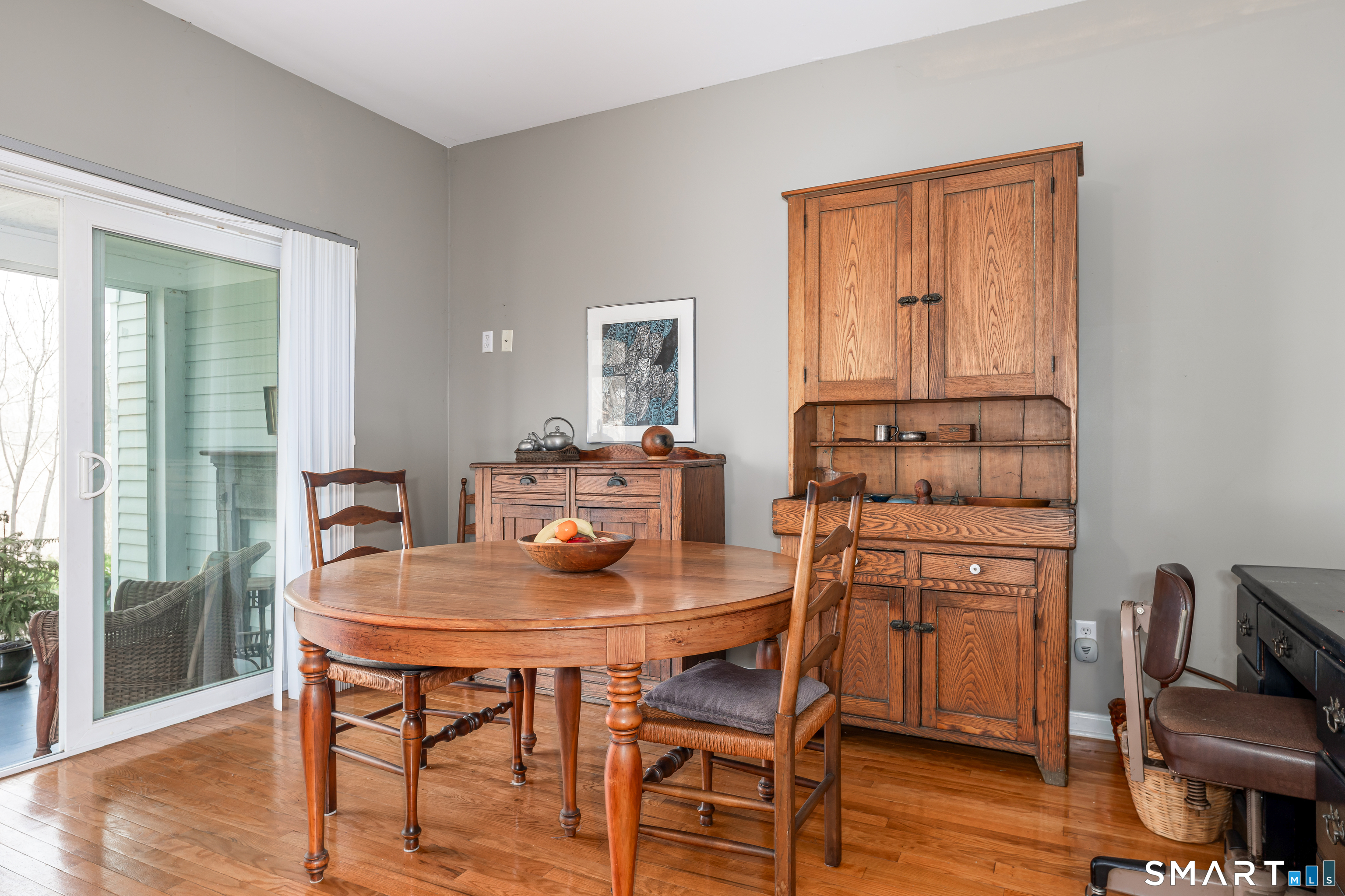 Do not miss rare opportunity! Two bedroom townhouse in seek after Rollwood community downtown Guilford! This home features open floor plan, spacious and airy living room/dining room combination with fireplace, built-ins, gleaming hard wood floors, two story foyer, eat-in kitchen with sliders to inclosed porch. Both bedrooms located on second floor and have the en suite full bathrooms and walk-in closets, the laundry room with additional ample storage is conveniently located on second floor next to the bedrooms. Offers attached garage, natural gas heating, central air, public water, just needs your finishing touches. Sold as is. This in-town community is ideally located just a few blocks from the town green, Jacobs beach, shopping, restaurants, library and train station. Pool and tennis/pickleball court on site.