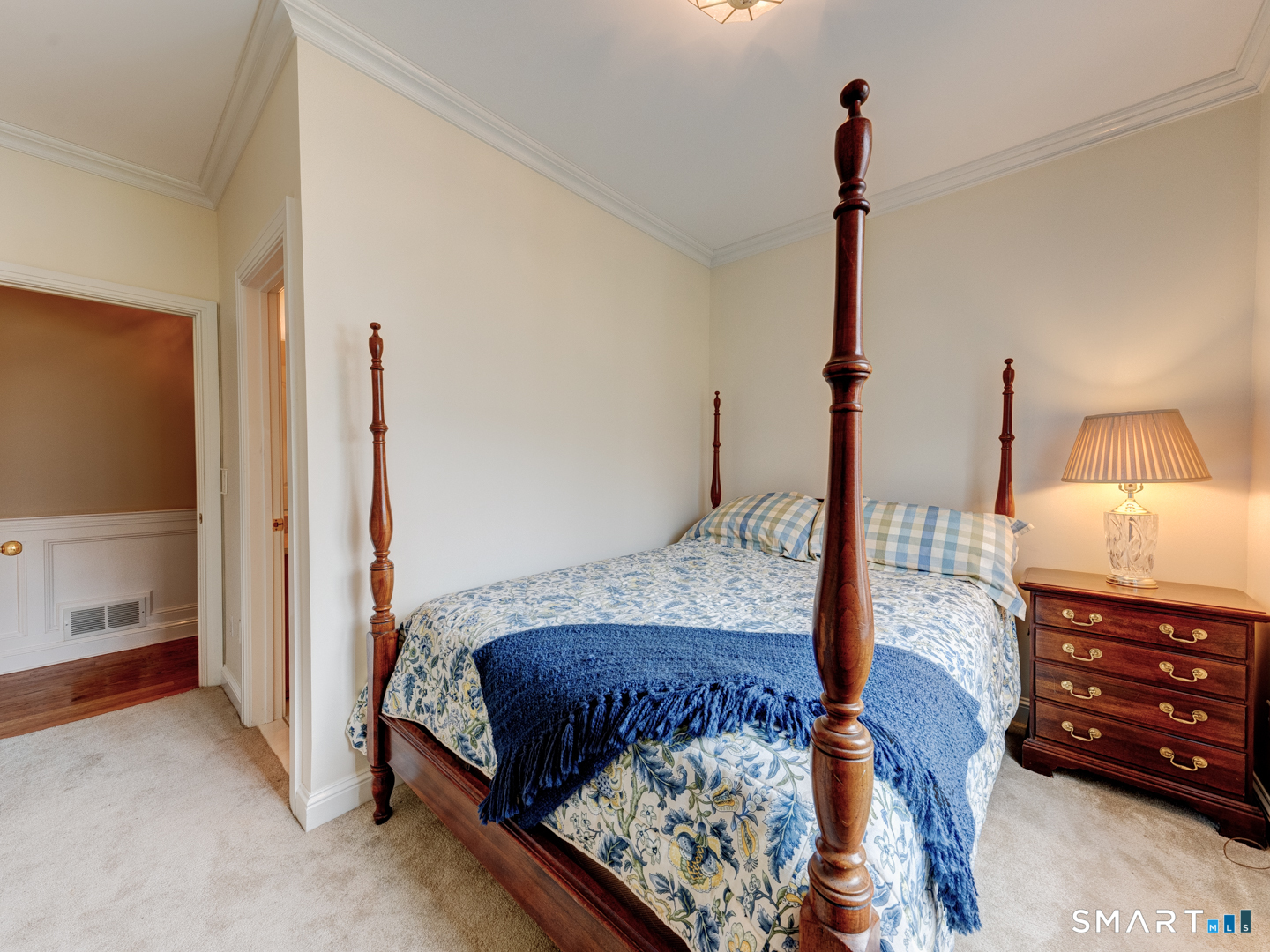 Privacy and elegance define this light-filled, 5-bedroom, 3.5- bath, plus formal office, builder's model home nestled in a sought-after Farmington neighborhood. Set on a generous almost half-acre lot and abutting protected public land, you'll enjoy the rare sense of perpetual privacy and natural surroundings. By blending architectural detail with effortless flow, the spacious layout excels for both everyday living and entertaining. The indoor space is complemented by over 600 sq. ft. of TrexTM deck and stone patio, plus mature, flowering plantings on all four sides of the house, supported by a programmable irrigation system. Upstairs, the primary suite is a true retreat featuring three walk-in closets - an exceptional and rare offering that provides unmatched storage and organization. In addition to the primary and three additional generously-sized bedrooms upstairs, this home includes a bedroom on the main level with its own ensuite bathroom, perfect for guest or family The partially finished basement adds flexible living space-perfect for a media room, gym, or play area-while still offering abundant storage. A whole house generator (2020) ensures peace-of-mind year-round. The garage includes built-in loft storage, plus features high ceilings to accommodate taller vehicles. A rare opportunity to own a private, elegantly appointed home in one of Farmington's most desirable settings!