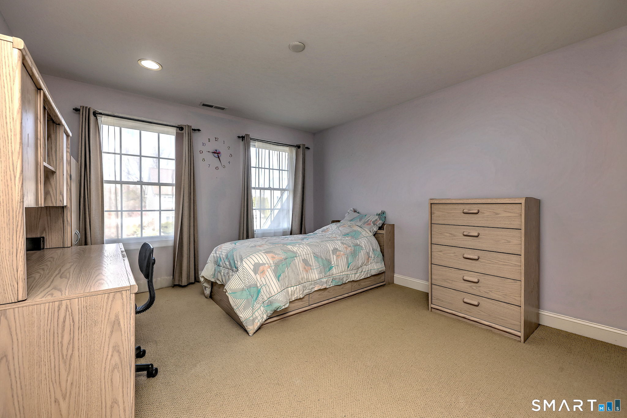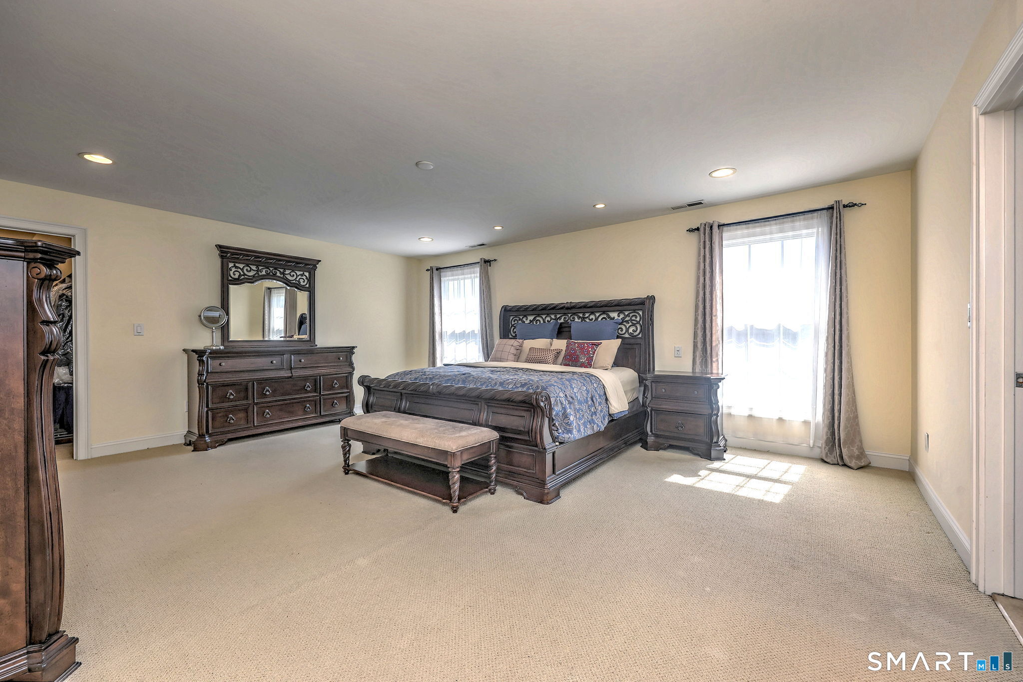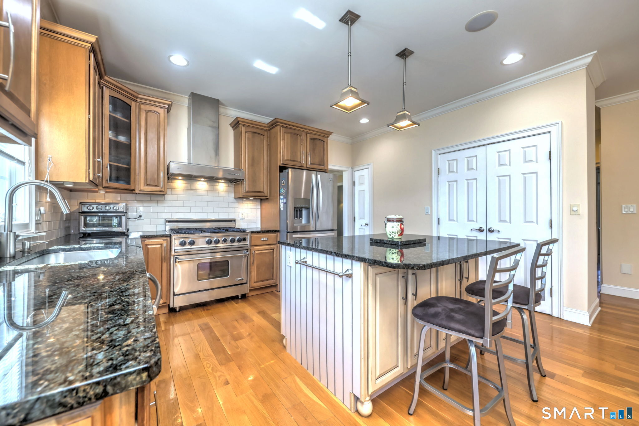 Exceptional value in one of Milford's most desirable neighborhoods with surrounding premium homes! This spacious 4BR, 3.5BA Colonial, is situated on a private cul-de-sac with a beautifully finished lower level. The open front porch leads to bright, well-maintained interiors providing a great opportunity to customize your style, while enjoying a fantastic layout and generous room sizes. The main level showcases an inviting two-story foyer, formal living room, dining room and home office with fine detailing, custom moldings, 9+ ft ceiling and hardwood floors throughout. The gourmet eat-in kitchen with large center island, stainless appliances, and large pantry opens to kitchen seamlessly connecting to large family room with gas fireplace. Step outside from a pair of 4 ft sliders to a large deck overlooking a private yard with in-ground sprinkler system, ideal for relaxing or entertaining. Second level, all 4 bedrooms are spacious with ample closets, including the primary suite with custom closets and private bath with jetted tub, heated floor, and walk-in shower. A beautifully finished lower level, offering versatile additional living space ideal for a media room, gym, playroom, or guest area. A well-maintained property combines classic design, generous room sizes, and outstanding potential for personalization located minutes to highways, train and downtown Milford. Don't miss this chance to make it your own.