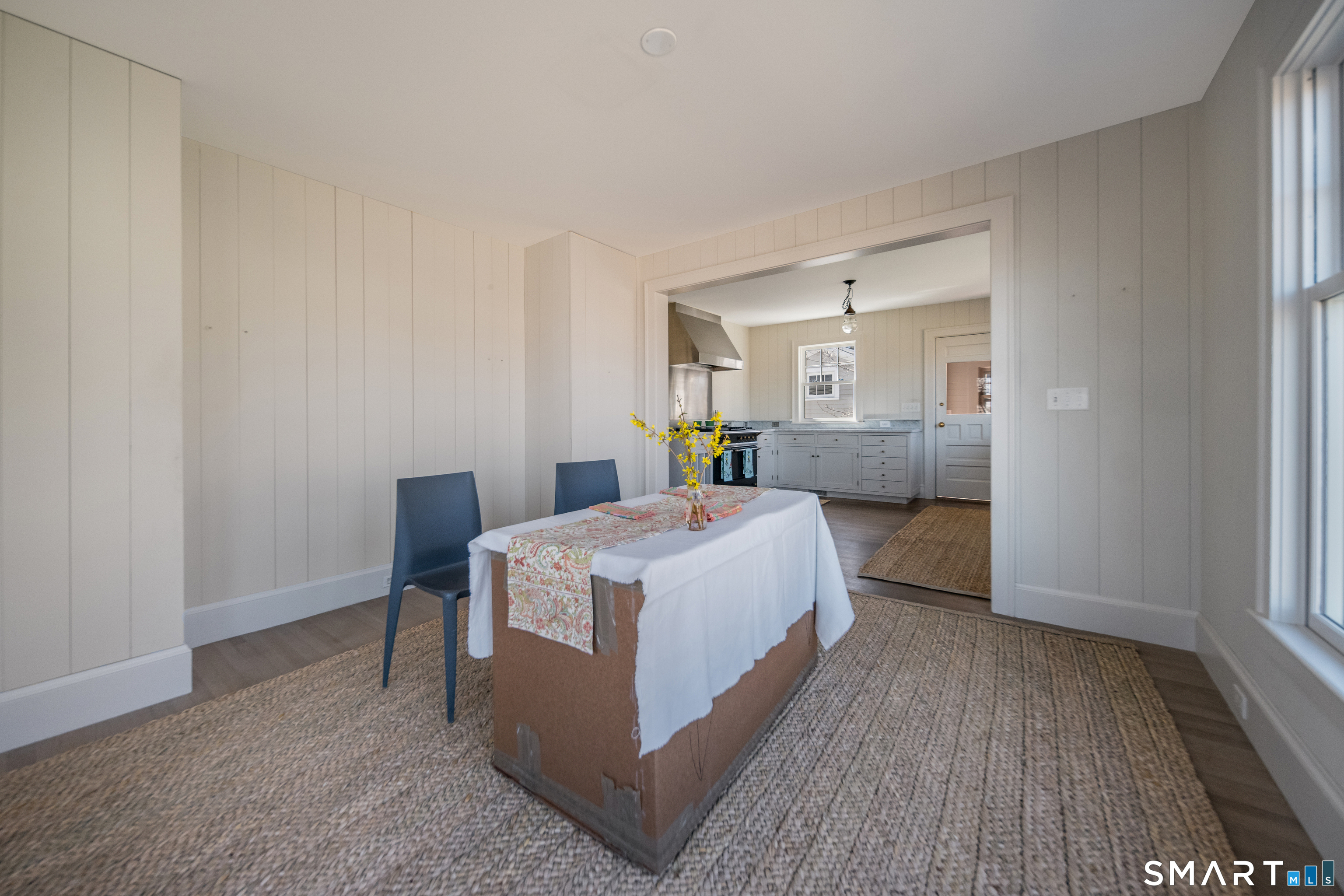 Owner did a remarkable renovation to this charming 1939 house in a quiet side street of the village. Beautiful views to the south and east down Wall Street and across to Sandy Point etc. The old garage was turned into a studio, there are two parking spaces in driveway. Upstairs are two en suite bedrooms and lots of closet space and multiple bookshelves. Downstairs there is a foyer and a large deck looking out to sea over a small garden area. Under the deck is storage for tools and garden items. Kitchen and dining area have lovely views over Dodges Paddock.