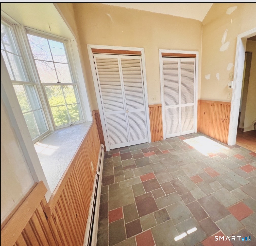 This vinyl sided Cape home sits on .76 Acres .This home has been in the same family for over 30 years .The home retains its original character with wood flooring throughout and is ready for paint and patching .Features 3-4 bedrooms with a 2 car brick & vinyl garage. Step into an oversized entry that features a cathedral ceilings ,a skylight, storage closets and slate floor. Great space for dining or reading. It flows into the living room and features a wood-burning fireplace with newer chimney liner. The heart of the home is the eat-in kitchen with the original breakfast bar. Open the side door, step outside and enjoy a private fenced-in patio for grilling, lounging, and outdoor relaxing ,the big deck needs repair.The main level also has a bedroom, wood floors, full bath, and an another room for familyroom , office or 4 bedroom. Upstairs boasts two oversized, dormered bedrooms with wood floors and storage .The walk-out basement has a wood/coal stove , laundry room , space for a rec room, workshop , storage and 2nd bath potential .The basement door leads directly to the expansive backyard with room for recreation or gardening .The furnace and garage roof have been recently replaced. Other pluses are vinyl windows, gutters, updated electric panel, city water and Sewer. Great opportunity to own a home close to the library ,schools ,town park, town pool, Farmington River, Collinsville and walk/bike trails area of 400k+ homes