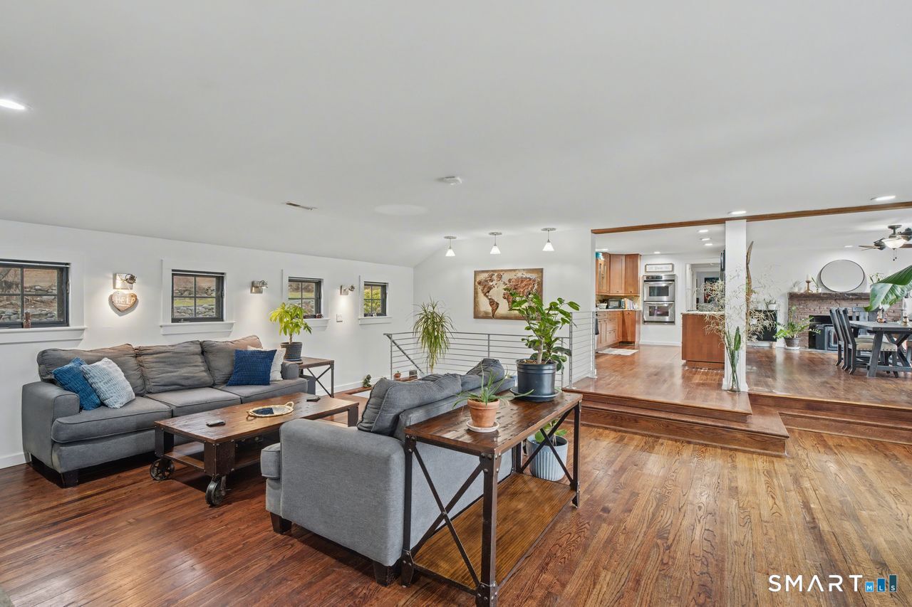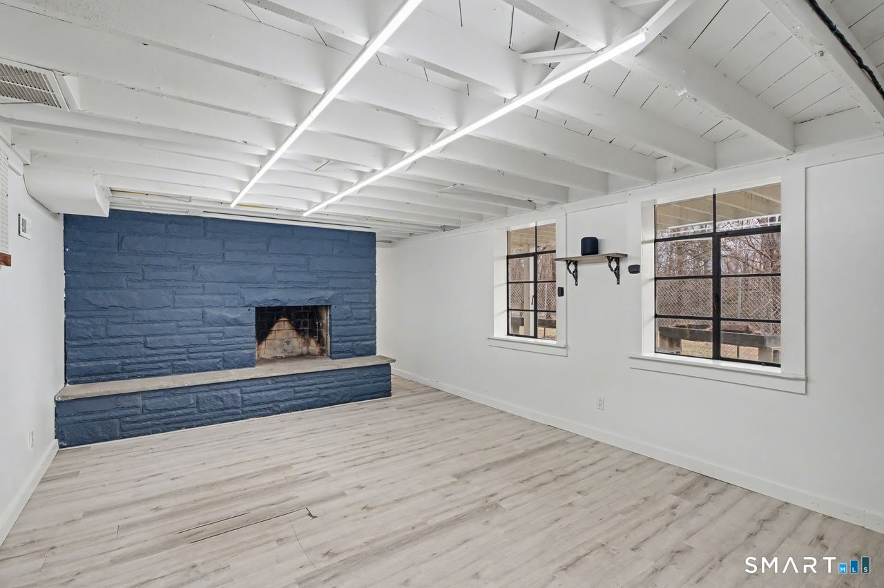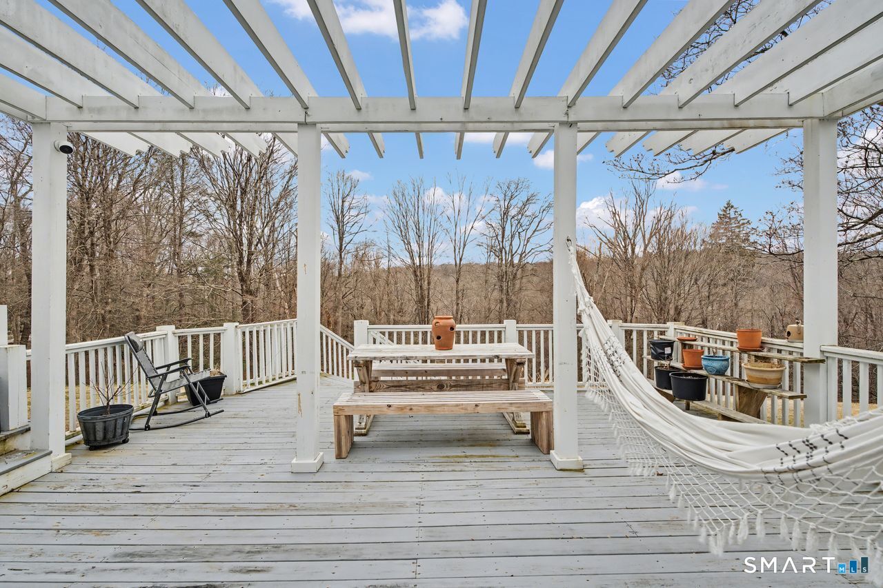 Set behind a classic New England stone wall in highly desirable West Redding, this move-in ready home offers space, flexibility, and charm across 2,294 sq ft on the main level plus 952 sq ft in the finished lower level. Thoughtfully laid out and currently utilized as a 3-bedroom, the home includes a versatile additional room ideal for a bedroom, office, or guest space. Bright, open layout with hardwood floors and abundant natural light throughout. The main living areas feature two fireplaces and a wood stove, adding warmth and character, while multiple access points lead to the expansive back deck for seamless indoor-outdoor living. The oversized primary suite offers vaulted ceilings, ceiling fans, and direct deck access, creating a private, retreat-like feel. The finished lower level adds 952 sq ft of valuable additional space, including a recreation room with fireplace, along with a dedicated workshop, laundry area, and ample storage-ideal for recreation, hobbies, or a home gym. Step outside to a large deck with pergola overlooking a peaceful, wooded setting, offering privacy and space for entertaining or everyday enjoyment. Additional highlights include central air conditioning and a layout designed for comfort and functionality. Located in a town known for its top-rated schools, with convenient access to nearby train stations and major routes, making commuting to NYC and surrounding areas both practical and accessible.