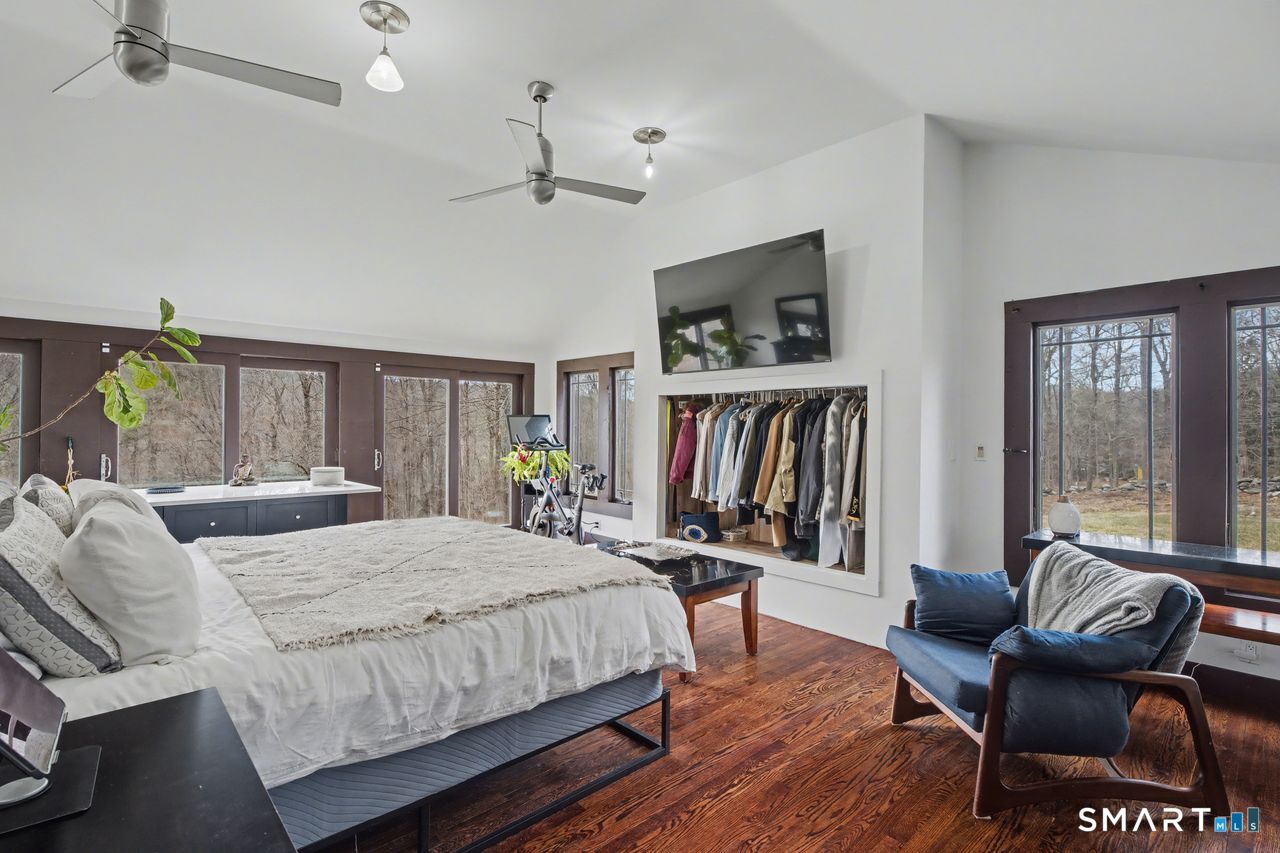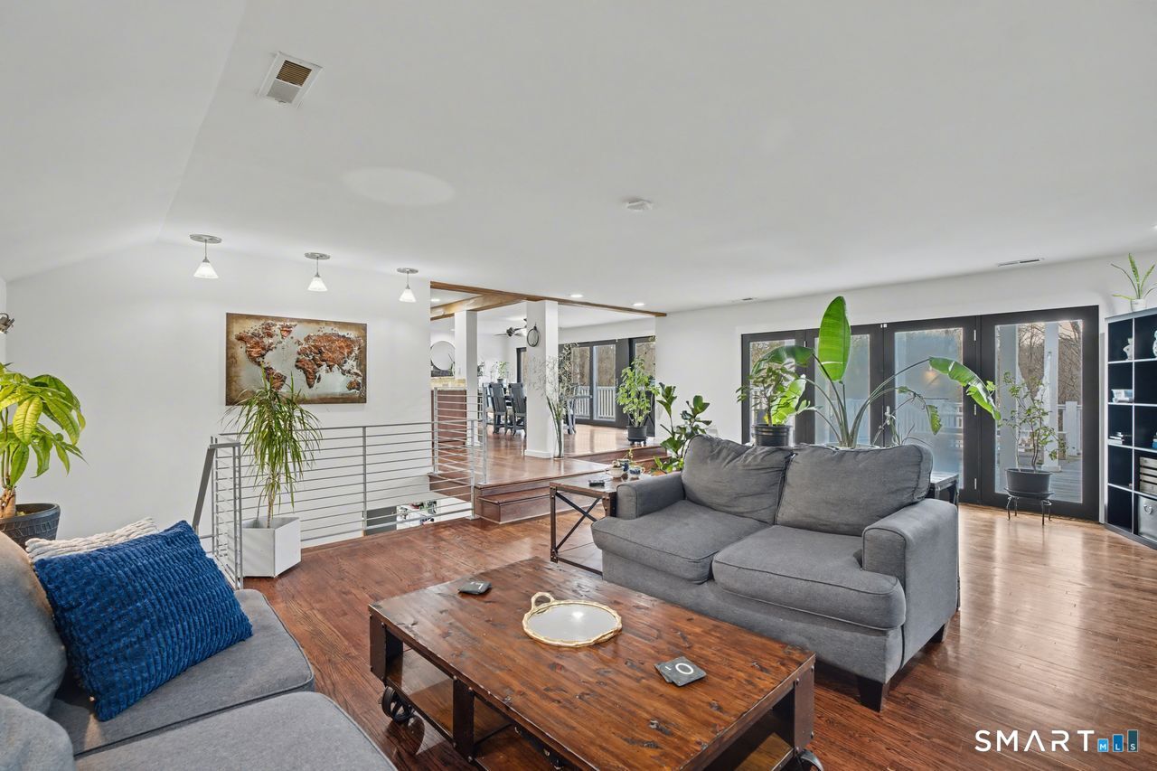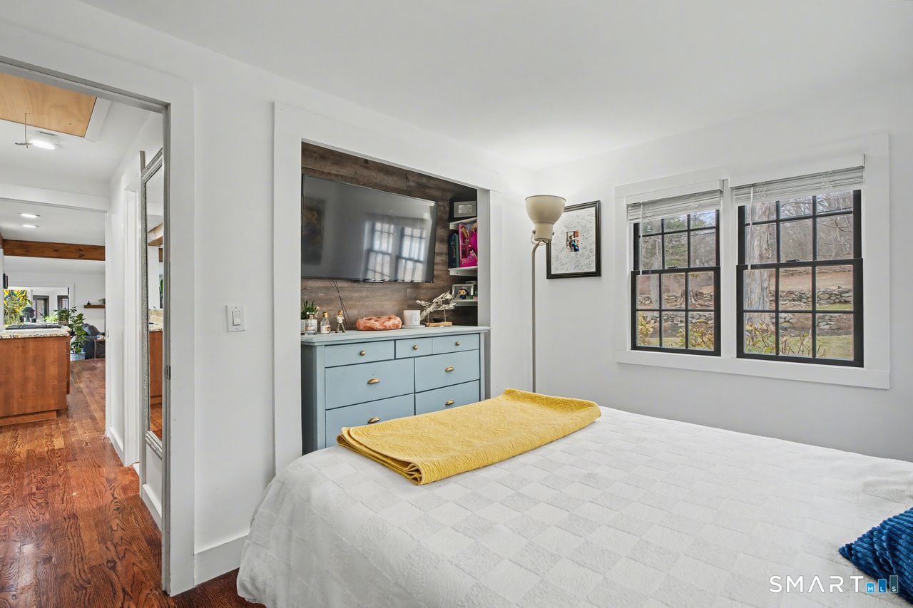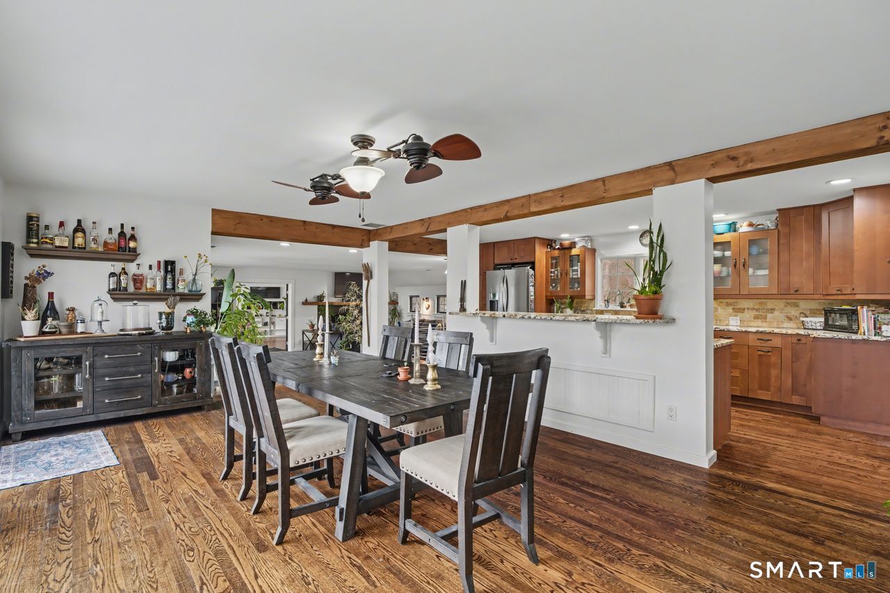 Set behind a classic New England stone wall in highly desirable West Redding, this move-in ready home offers space, flexibility, and charm across 2,294 sq ft on the main level plus 952 sq ft in the finished lower level. Thoughtfully laid out and currently utilized as a 3-bedroom, the home includes a versatile additional room ideal for a bedroom, office, or guest space. Bright, open layout with hardwood floors and abundant natural light throughout. The main living areas feature two fireplaces and a wood stove, adding warmth and character, while multiple access points lead to the expansive back deck for seamless indoor-outdoor living. The oversized primary suite offers vaulted ceilings, ceiling fans, and direct deck access, creating a private, retreat-like feel. The finished lower level adds 952 sq ft of valuable additional space, including a recreation room with fireplace, along with a dedicated workshop, laundry area, and ample storage-ideal for recreation, hobbies, or a home gym. Step outside to a large deck with pergola overlooking a peaceful, wooded setting, offering privacy and space for entertaining or everyday enjoyment. Additional highlights include central air conditioning and a layout designed for comfort and functionality. Located in a town known for its top-rated schools, with convenient access to nearby train stations and major routes, making commuting to NYC and surrounding areas both practical and accessible.