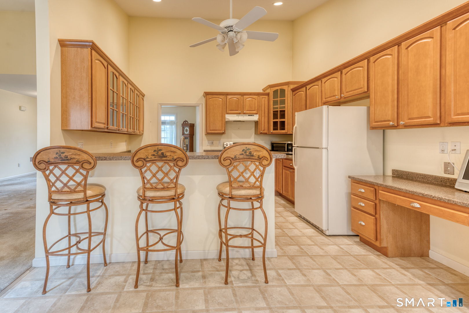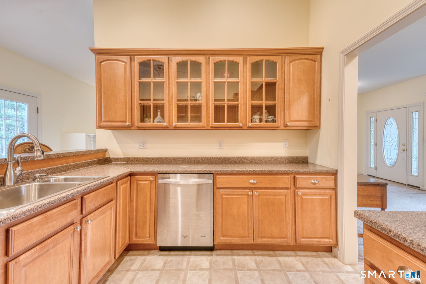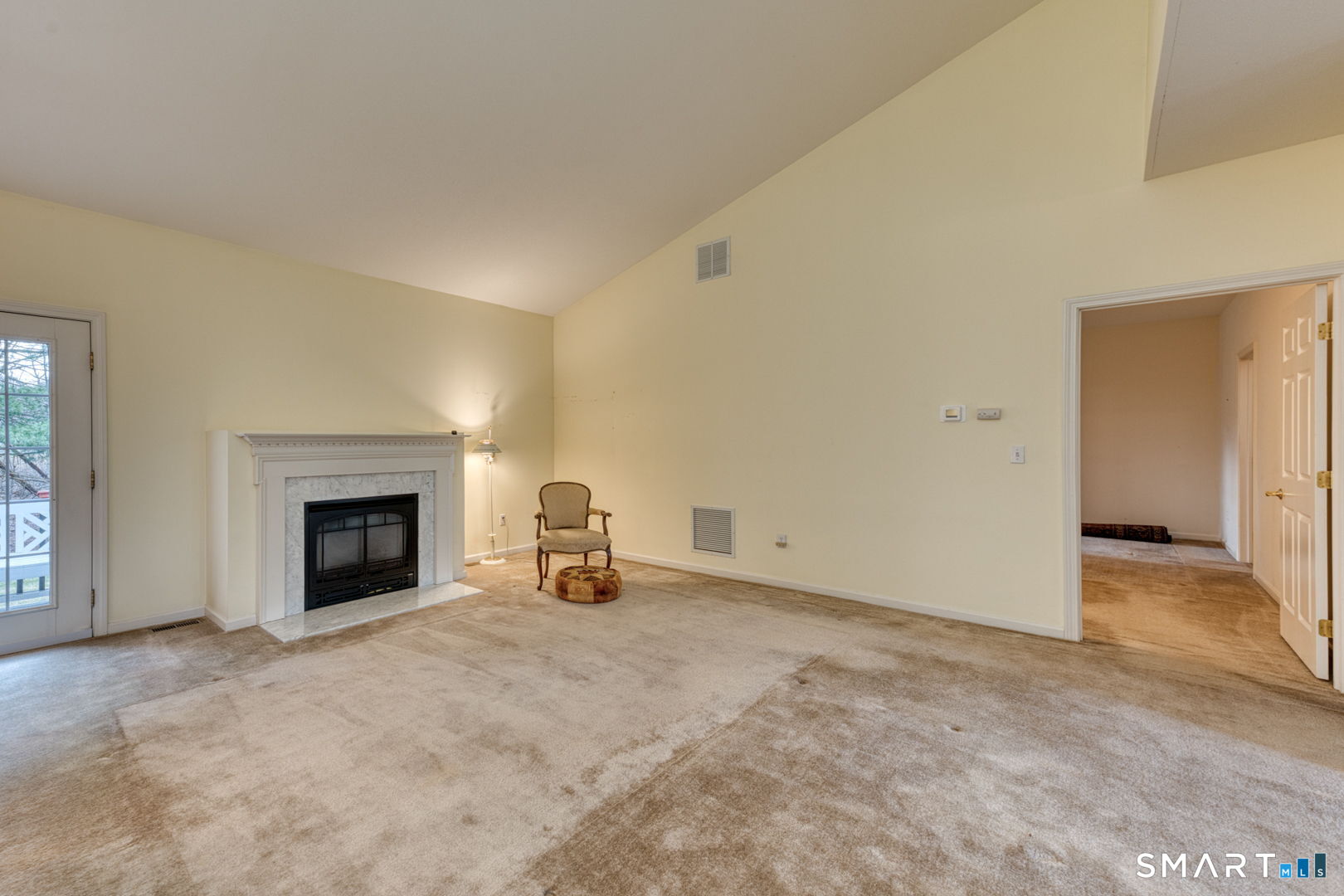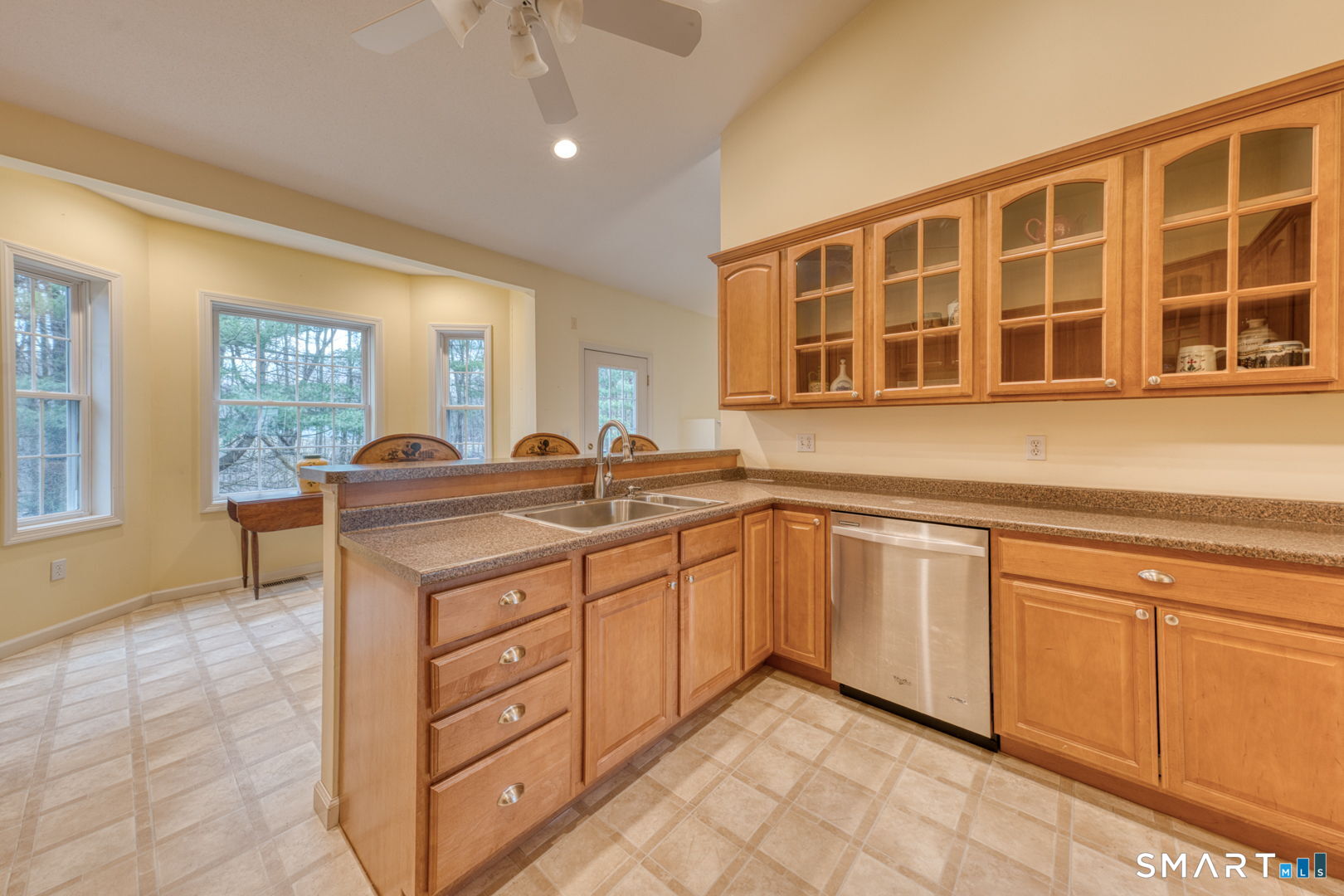 Beautiful ranchstyle home located in a desirable 55+ adult community, offering comfortable onelevel living and a bright, open layout. The spacious living room features abundant natural light and a cozy gas fireplace, creating a warm and inviting gathering space. The kitchen includes a breakfast bar, attractive wood cabinetry with glassfront accents, and easy flow to the main living areas. The primary bedroom offers sunny windows, a large walkin closet, and a full bathroom with a stepin shower and convenient inunit laundry. The second bedroom also includes its own full bathroom with a bathtub-perfect for guests or flexible use. A half bath and coat closet add everyday practicality. Outdoor living is enhanced by a private deck and patio area overlooking the back of the property. Additional features include a full unfinished basement providing excellent storage options and a twocar attached garage for easy access and convenience. A wellmaintained home offering comfort, space, and lowmaintenance living in a peaceful community setting.