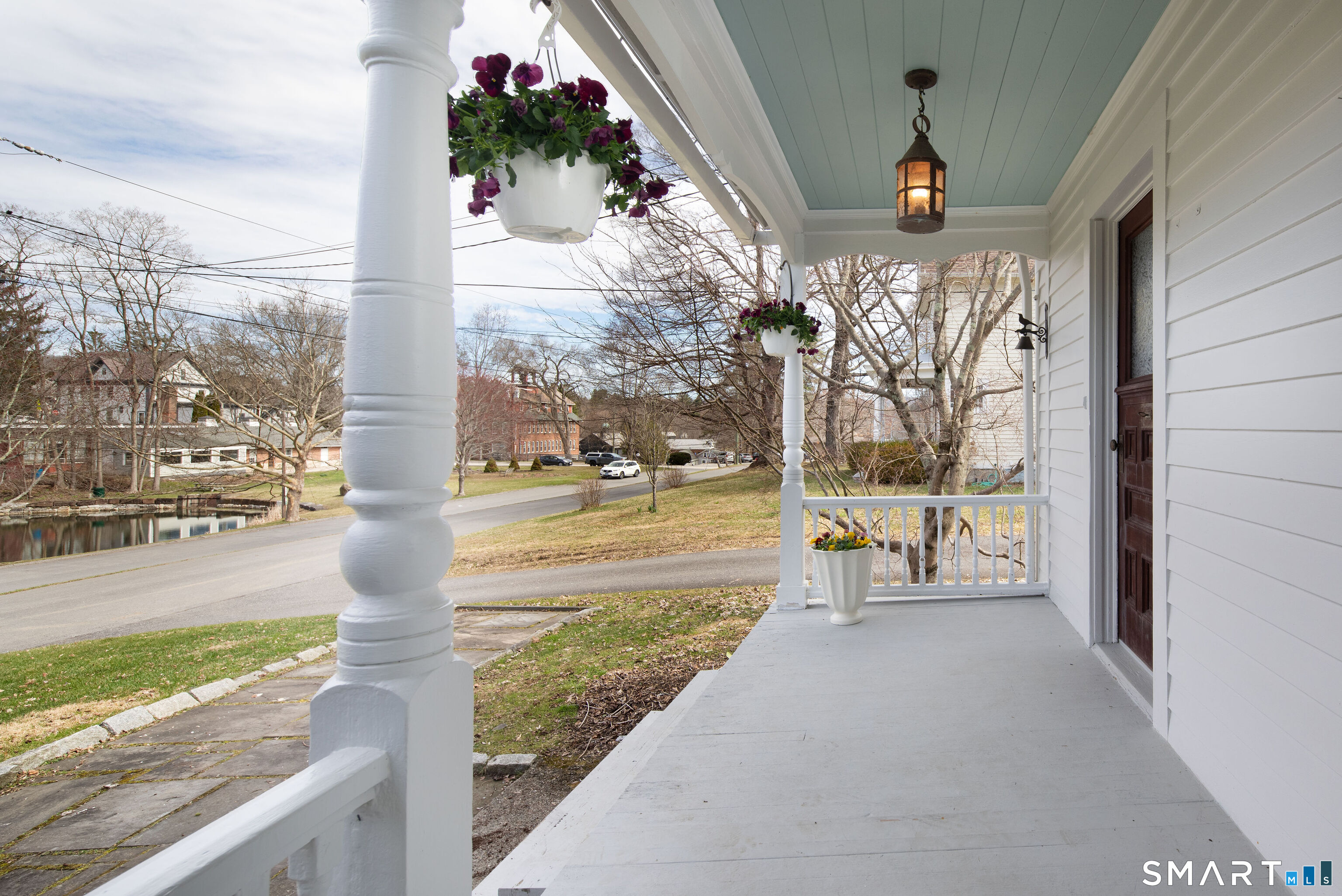 Charming vintage home is move-in ready in desirable Lakeville Ct. This 1890's home includes modern updates, including a roomy kitchen with generous storage and counter space along with a gas stove and farm sink. The main floor features an open, inviting layout, but retains its historic character with details such as hardwood floors throughout the living spaces, and an additional room that could be a library, den, or office. French doors open to the covered front porch with space for comfortable seating and a wrap-around space for casual dining. A tiled mudroom is conveniently located near the laundry/half bath. Upstairs, the primary bedroom at the rear of the house includes an ensuite bath. Two additional bedrooms share an updated hall bath, and an another smaller room could be a fourth bedroom or home office. A walk-up attic provides ample storage. Outdoor living space includes the wraparound front porch, a private back deck, and a tidy back yard. A full-sized basement provides easy access to mechanicals. This property provides the convenience of town water and sewer. Located just steps from Lakeville Lake and the Town Grove, with seasonal activities, tot park and platform tennis. Near local restaurants and Lakeville's Main Street. Close proximity to Hotchkiss, Indian Mountain School, and other area private schools. Very strong rental history for summers and for academic year. Walk to the July 4th festivities at the Salisbury Town Grove!