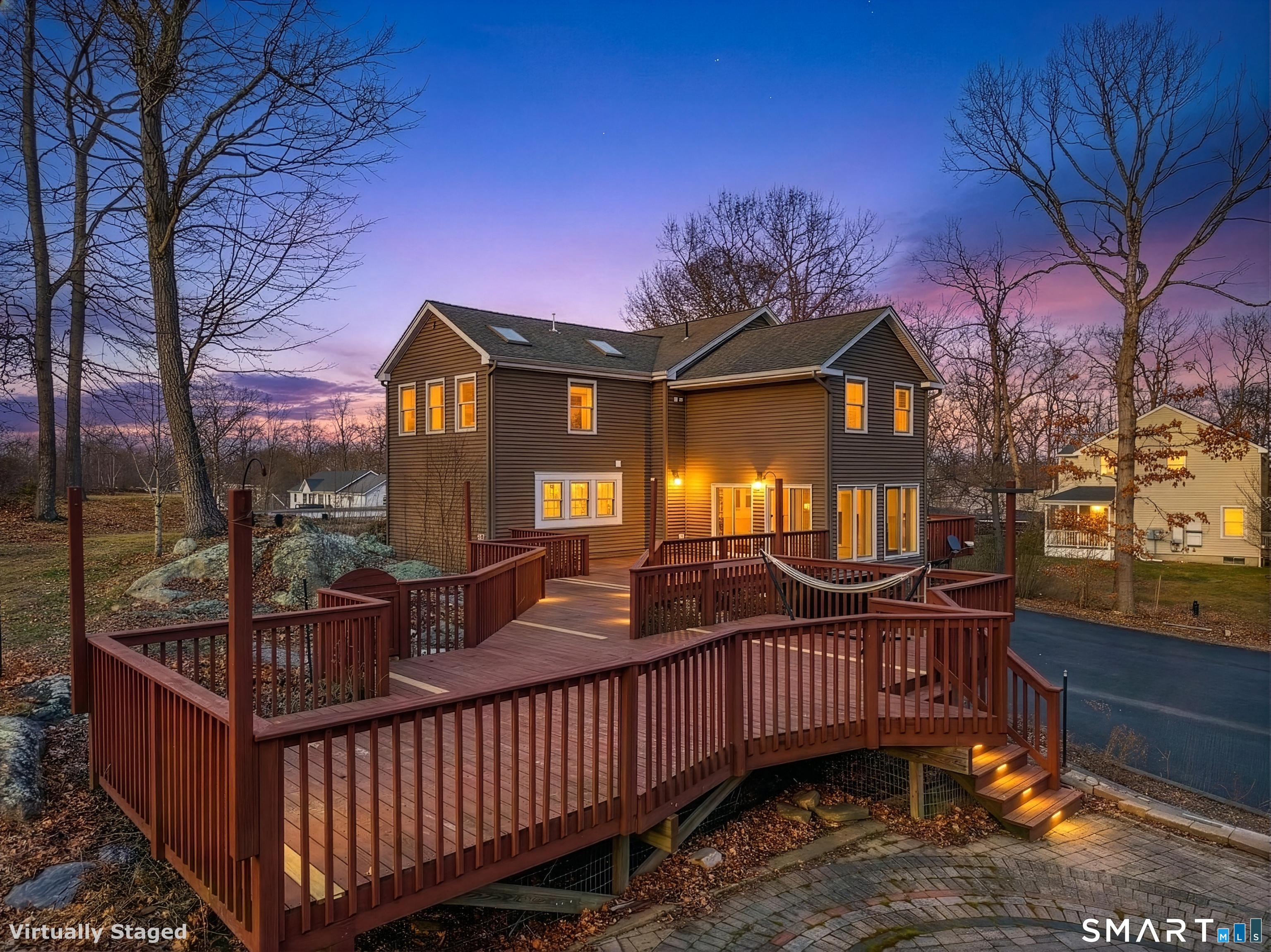 Welcome to 80 Sashel Lane, where spring brings this home to life. Set on 2.43 wooded acres at the end of a quiet cul-de-sac, this 3,200+ sq. ft. colonial offers the perfect blend of space, flexibility, and privacy just as the warmer months arrive. With 5 bedrooms, 4.5 bathrooms, and a rare three primary suite layout-including one on the main level and two upstairs-this home is ideal for multi-generational living, extended guests, or simply enjoying room to spread out. Sunlight fills the home throughout the day, especially in the bright sunroom just off the kitchen, creating the perfect spot to enjoy your morning coffee as the seasons change. Inside, a pellet stove adds warmth and charm, while four heating zones (two upstairs and two on the main level) provide comfort and efficiency year-round. Step outside and truly experience what makes this property special. An expansive deck and spacious patio offer endless opportunities for outdoor dining, entertaining, or relaxing as the surrounding landscape comes into bloom. The private setting provides a peaceful backdrop for everything from quiet mornings to lively gatherings. Fresh, flexible, and ready for its next chapter, 80 Sashel Lane is the perfect place to settle in and enjoy the season ahead.