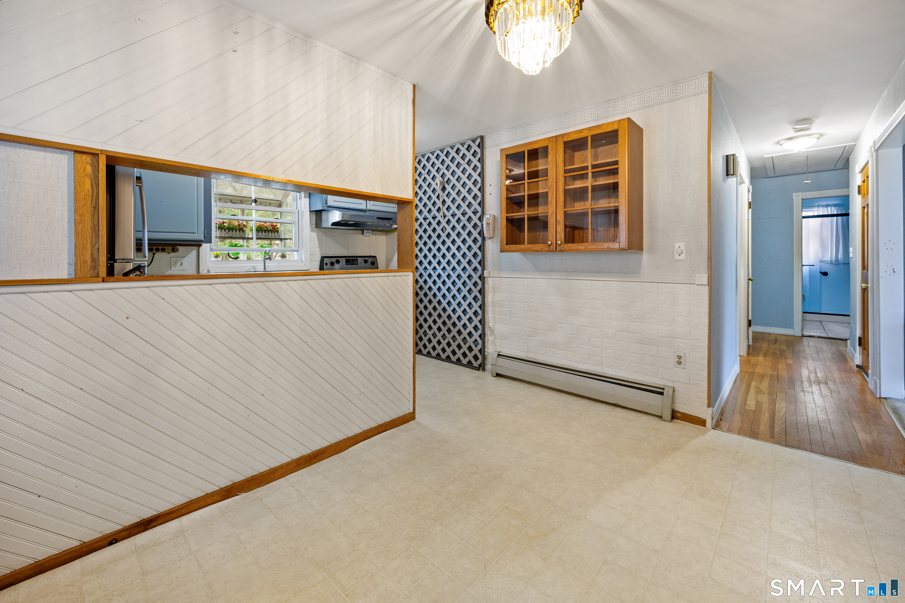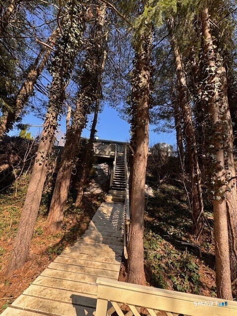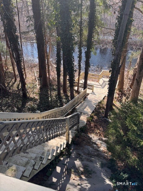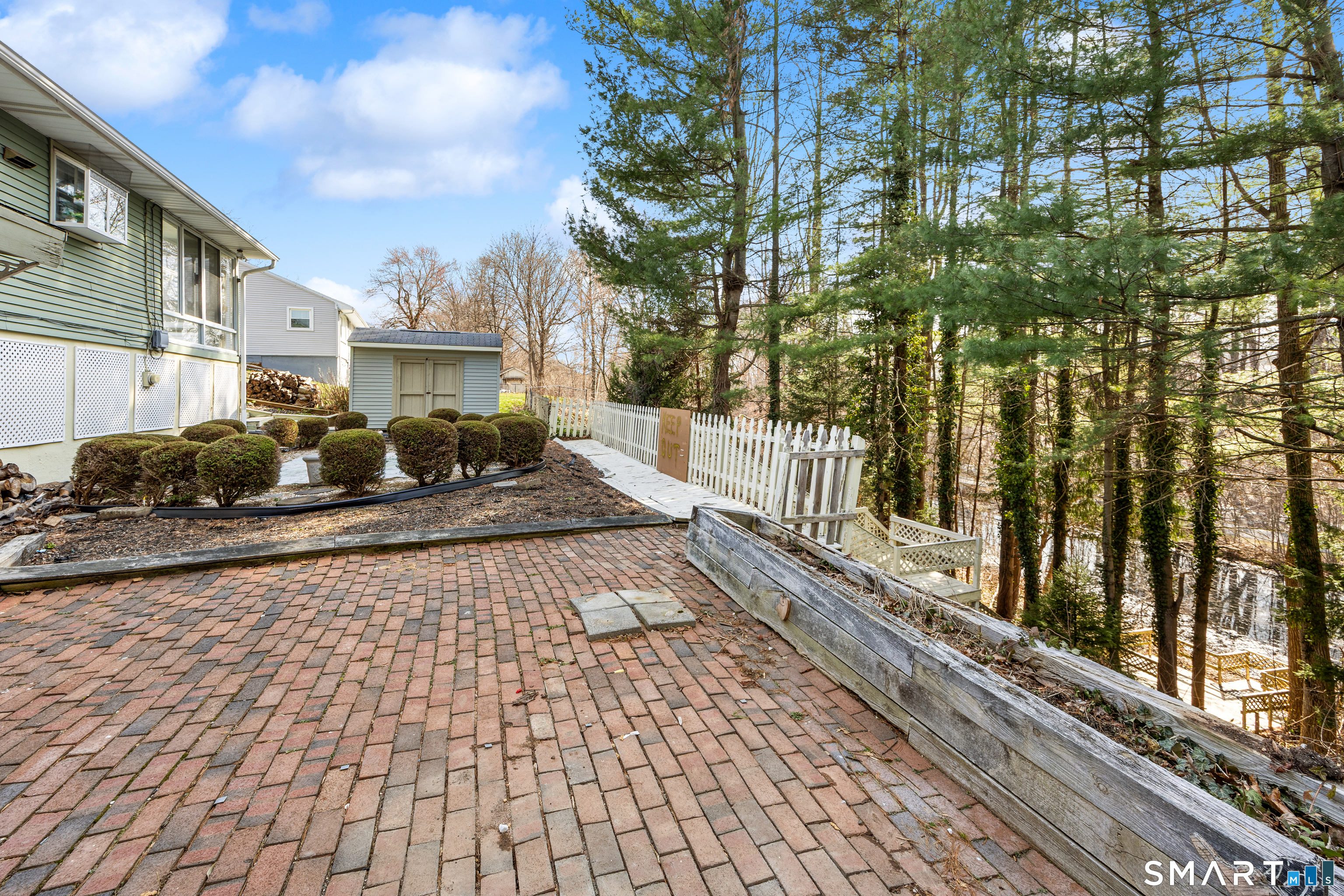 Opportunity knocks in this ranch located in a desirable central Cheshire neighborhood with sidewalks to schools, shopping, and parks. This 3-bedroom home with 1 full and 2 half baths offers great space, a wonderful setting, and endless potential for the buyer ready to make it their own. Upon entry, you will find a spacious living room that is adjacent to an eat-in kitchen and a hallway that leads to 3 generously sized bedrooms and a remodeled full bath. It is believed that there is likely hardwood throughout the main floor living room and bedrooms. There is a lovely 3-season porch which overlooks the Farmington canal and rail trail and functions as a convenient entryway from the 2-car carport garage. The walk-out lower-level adds valuable space featuring two finished rooms, a half bath, as well as direct access to a backyard patio area. This property features a custom-built stairway that leads you down toward the water, offering a tiered landscape that transitions from the upper deck to the serene edge of the Farmington Canal. Two storage sheds and a pretty wooded backdrop overlooking the Farmington Canal and trailway complete the backyard. There is a newer hot water heater and oil tank in the unfinished portion of basement. While in need of some updating, this home has great bones, generous space, and wonderful potential for a buyer ready to invest some sweat equity. This gem won't last. Being sold "As-Is".