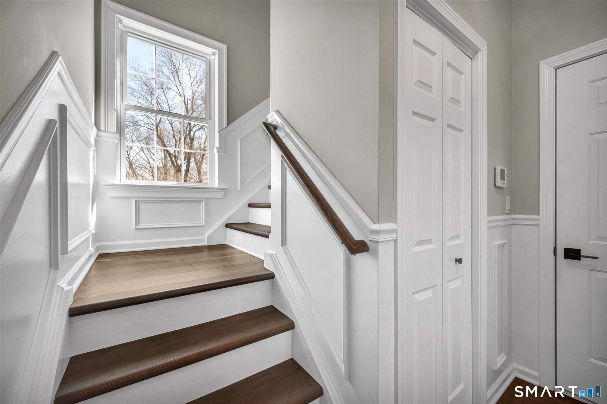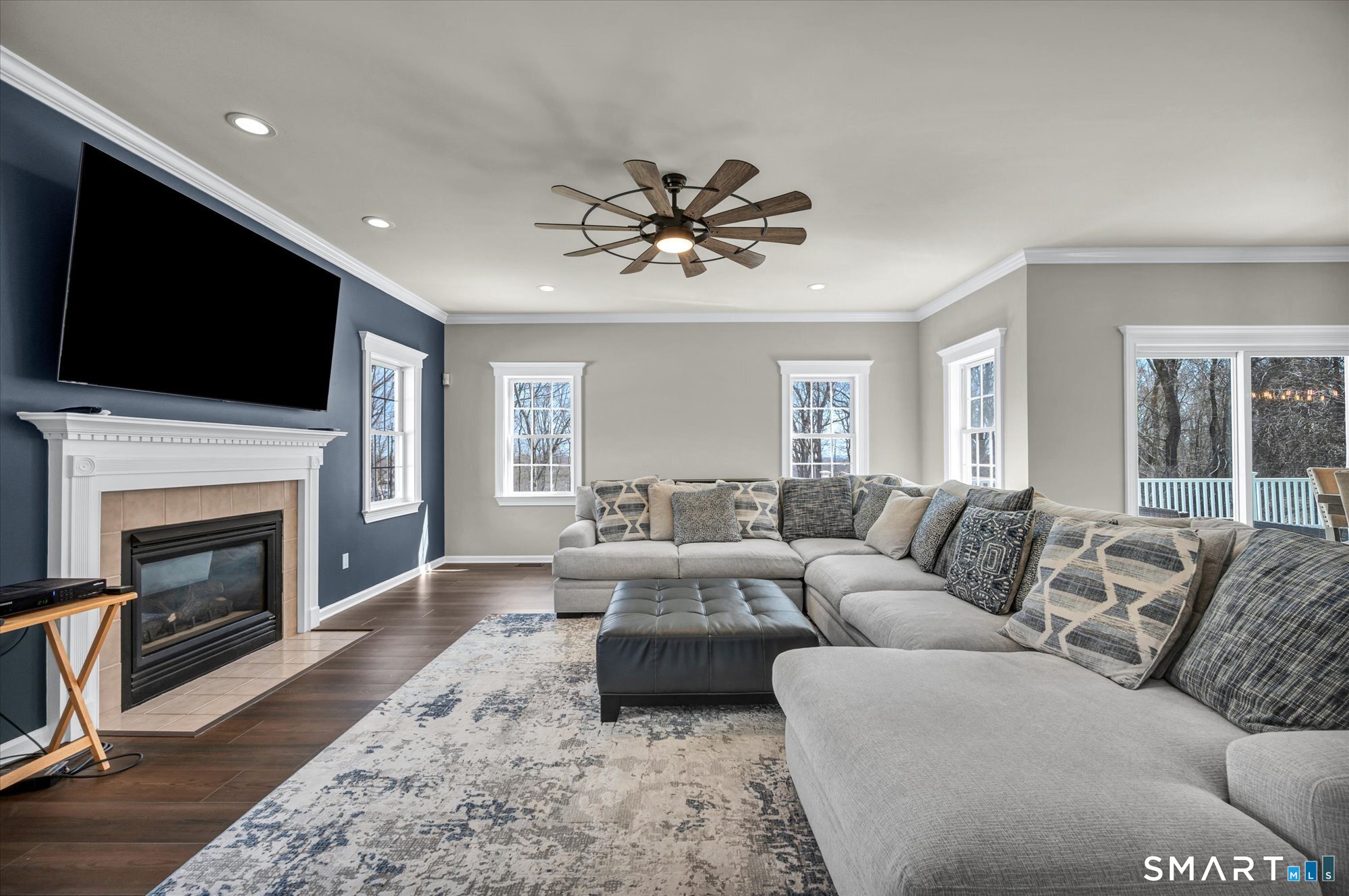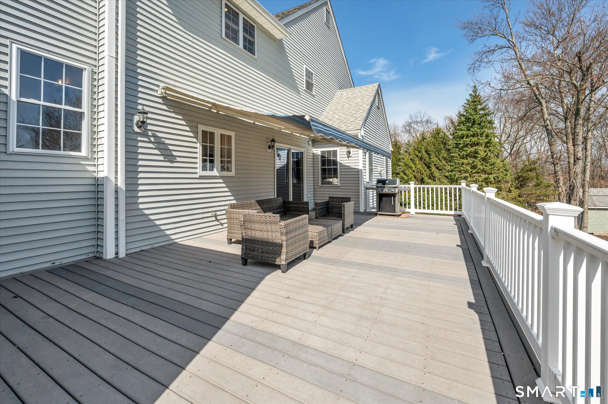 Welcome to Milford Chase, set in the charming coastal town of Milford-"the small city with a big heart." With 17 miles of shoreline, beautiful beaches, and a vibrant downtown, you'll enjoy the perfect blend of coastal living and everyday convenience. This beautifully updated, quality-built Colonial offers over 3,200 sq ft of thoughtfully designed living space and an ideal layout for both everyday living and entertaining. The heart of the home is the stunning kitchen, featuring a large quartz island, updated appliances, and a sun-filled dining area with sliders leading to an oversized deck. The kitchen flows seamlessly into the spacious great room with a gas fireplace, creating a warm and inviting gathering space. A formal dining room and elegant living room add versatility for hosting and holidays. Refined details throughout include crown molding, chair rail, shadow box trim, recessed lighting, and ceiling fans. The expansive primary suite is a true retreat, showcasing tray ceilings, abundant natural light, two walk-in closets, and a beautifully renovated bath with soaking tub and separate shower. A private staircase from the suite to the kitchen adds both charm and convenience. Set at the end of a cul-de-sac on over an acre of level, professionally landscaped property, this home offers exceptional privacy and space. Outdoor living shines with a large deck and an impressive stone patio with walk-out access from the lower level-perfect for entertaining or relaxing.