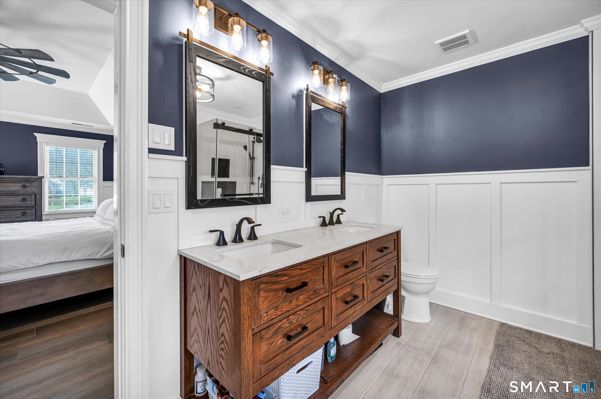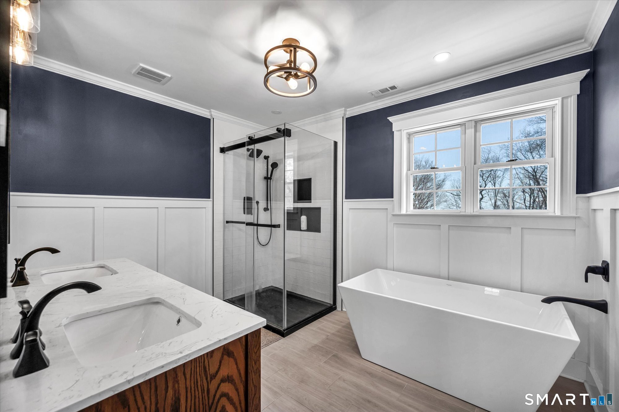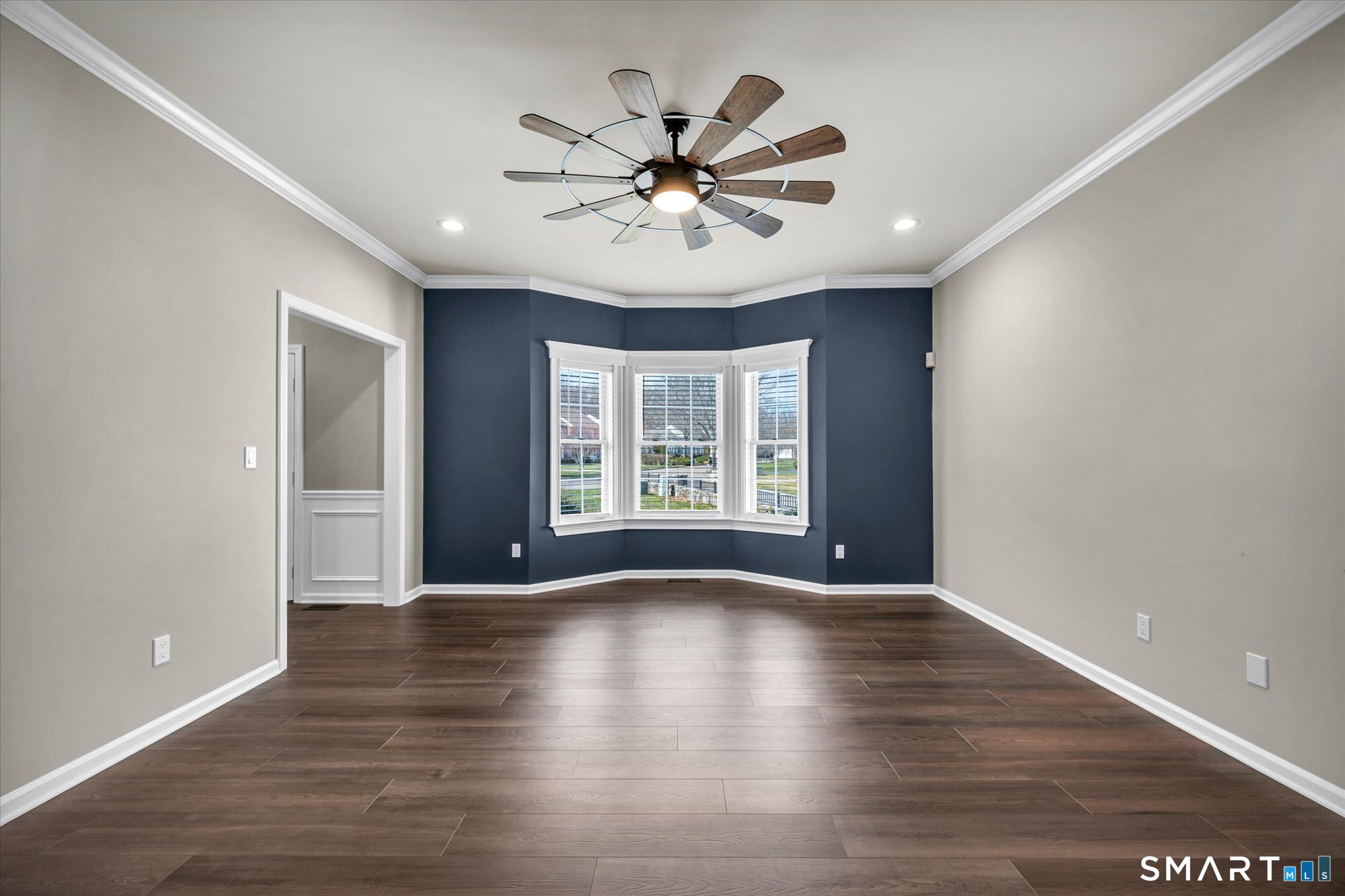 Welcome to Milford Chase, set in the charming coastal town of Milford-"the small city with a big heart." With 17 miles of shoreline, beautiful beaches, and a vibrant downtown, you'll enjoy the perfect blend of coastal living and everyday convenience. This beautifully updated, quality-built Colonial offers over 3,200 sq ft of thoughtfully designed living space and an ideal layout for both everyday living and entertaining. The heart of the home is the stunning kitchen, featuring a large quartz island, updated appliances, and a sun-filled dining area with sliders leading to an oversized deck. The kitchen flows seamlessly into the spacious great room with a gas fireplace, creating a warm and inviting gathering space. A formal dining room and elegant living room add versatility for hosting and holidays. Refined details throughout include crown molding, chair rail, shadow box trim, recessed lighting, and ceiling fans. The expansive primary suite is a true retreat, showcasing tray ceilings, abundant natural light, two walk-in closets, and a beautifully renovated bath with soaking tub and separate shower. A private staircase from the suite to the kitchen adds both charm and convenience. Set at the end of a cul-de-sac on over an acre of level, professionally landscaped property, this home offers exceptional privacy and space. Outdoor living shines with a large deck and an impressive stone patio with walk-out access from the lower level-perfect for entertaining or relaxing.
