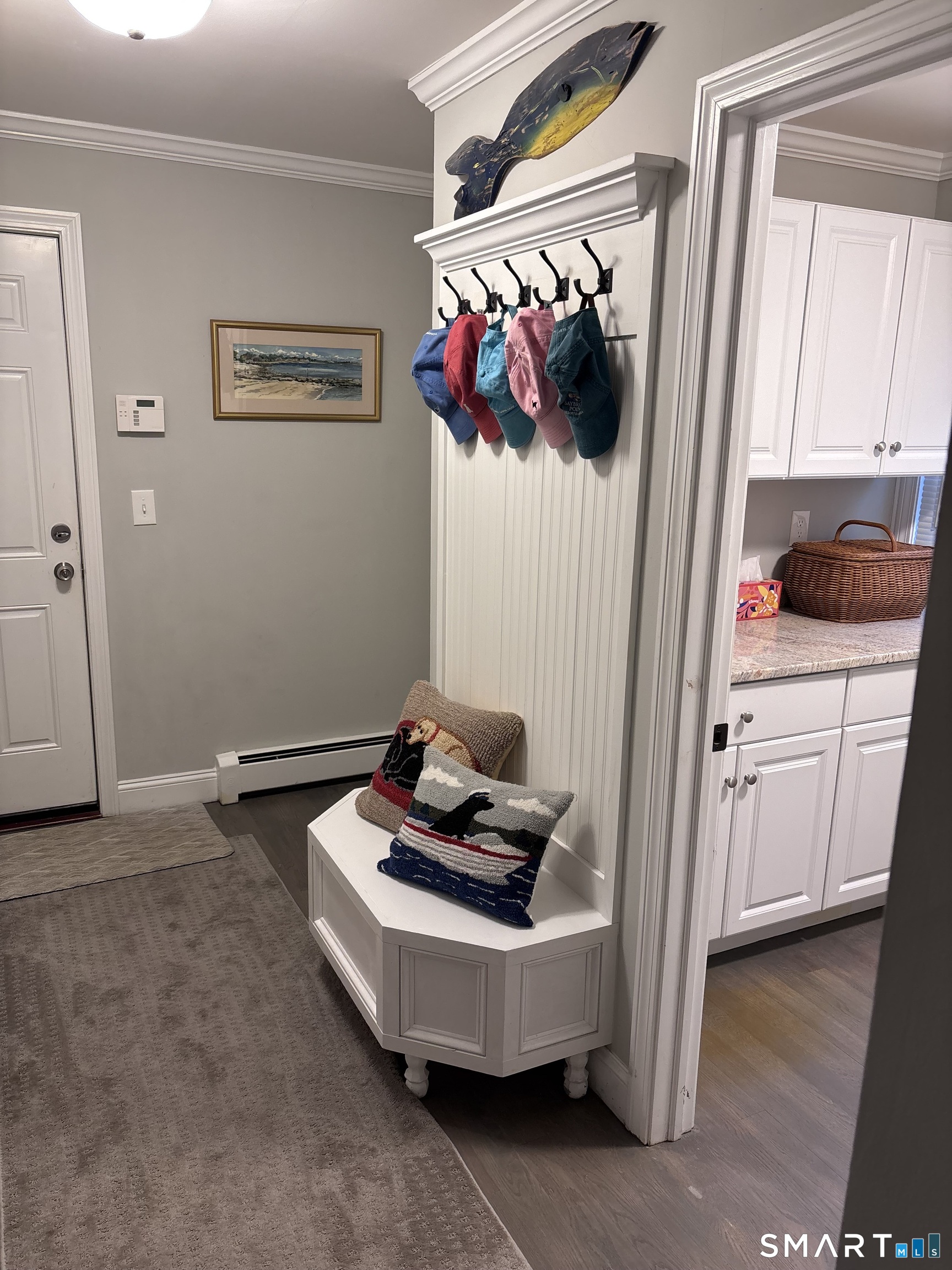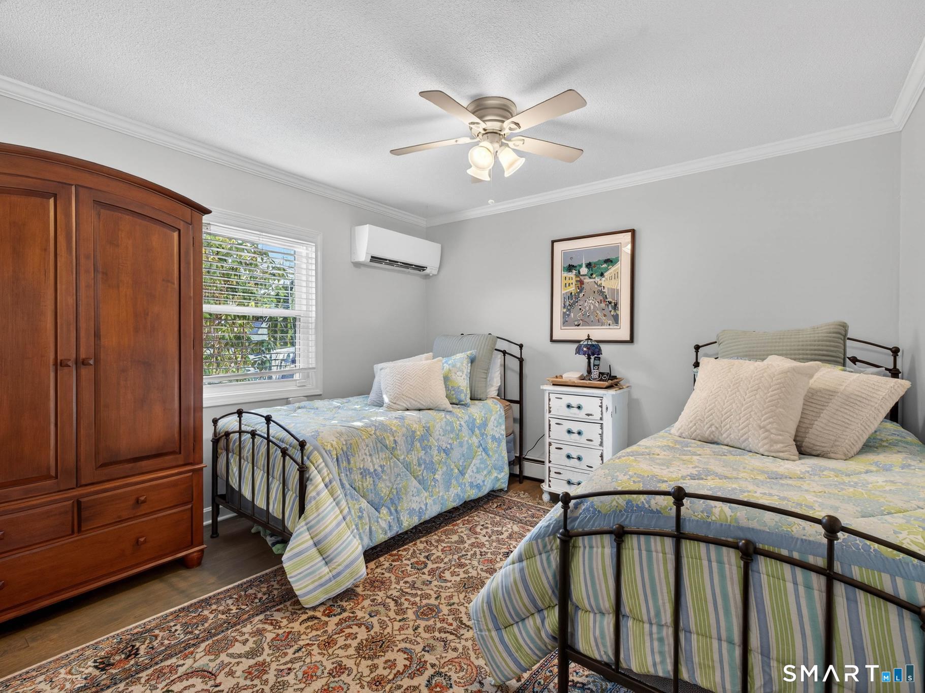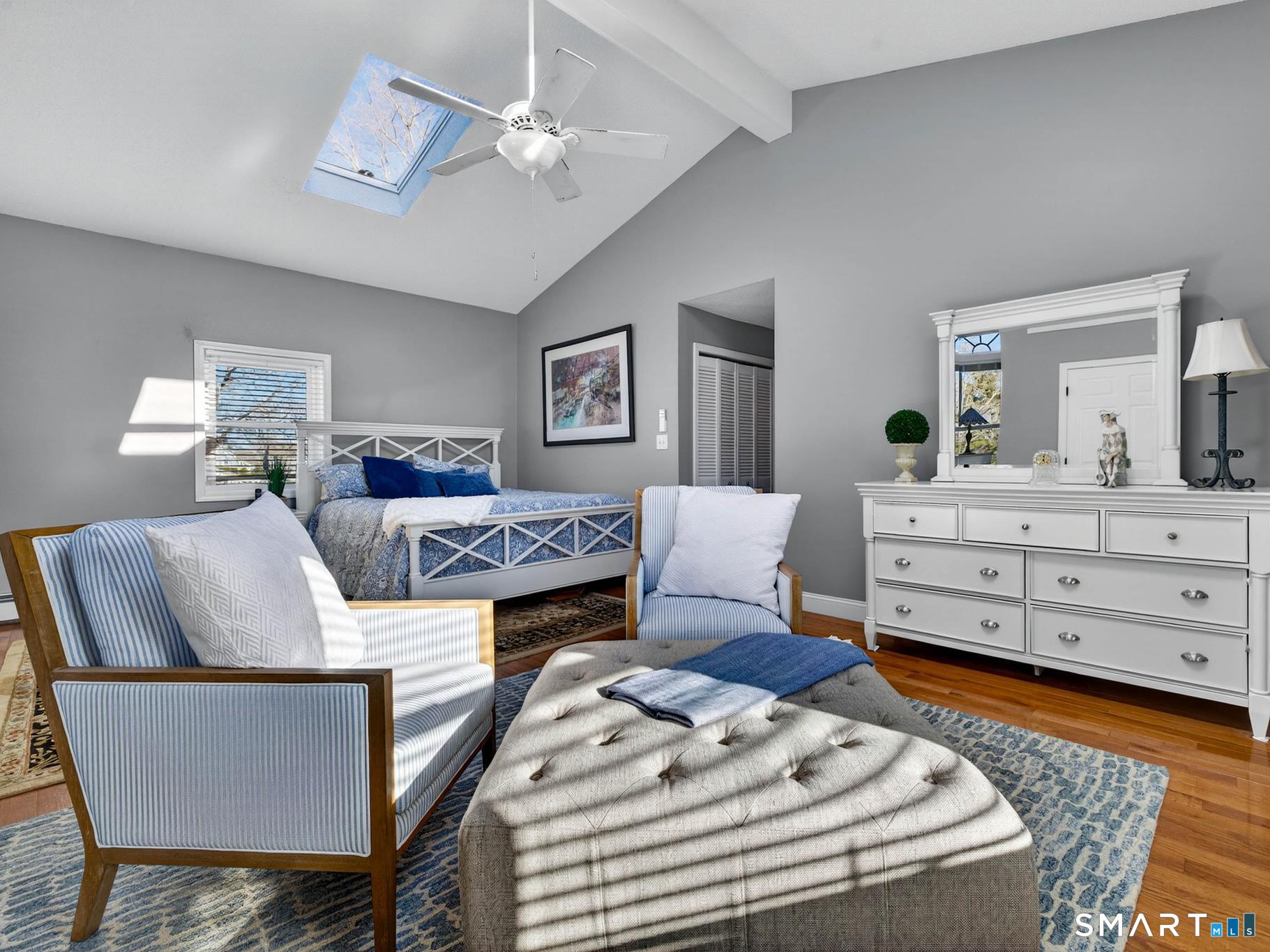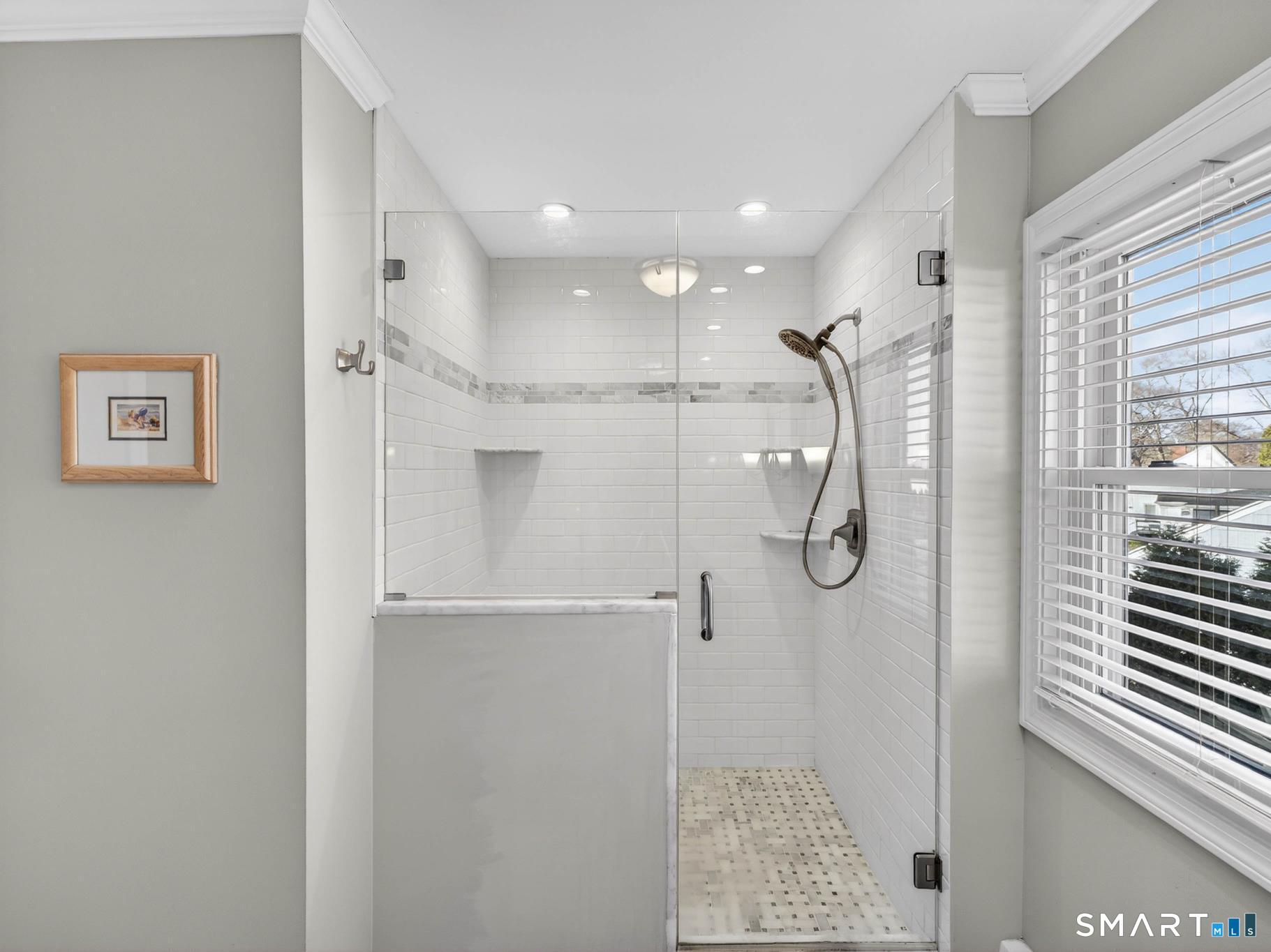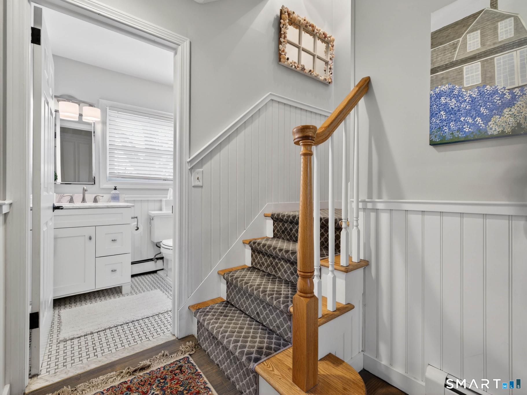 Rare opportunity to enjoy sweeping views of Long Island Sound from a quiet street just off Maple Avenue in sought-after Knollwood Beach. This beautifully renovated 3-bedroom, 3-bath coastal retreat, just one street from the water, offers unobstructed views and is ideal as a year-round home or second getaway. The bright, open floor plan is designed to capture the scenery, with an oversized living/dining area featuring hardwood floors, a custom stone propane fireplace, and a wall of south-facing windows. An oversized one-car garage, mudroom, and laundry area welcome you inside. The custom white kitchen features quartzite countertops, porcelain farm sink, stainless appliances, and a Bosch propane range-perfect for entertaining. The first floor also offers an updated full bath and flexible bedroom or office. Upstairs, the primary suite boasts cathedral ceilings, a custom bath with dual sinks, tiled shower, and generous closets. A third bedroom, remodeled full bath, and family room with French doors lead to a covered deck with panoramic water views. The partially finished lower level provides additional living space and storage. Features include dual street access, ample parking, whole-house generator, alarm system with cameras, fenced yard with mature landscaping, and new Mitsubishi split HVAC (2024). Meticulously maintained and not in a flood zone-an exceptional shoreline opportunity.