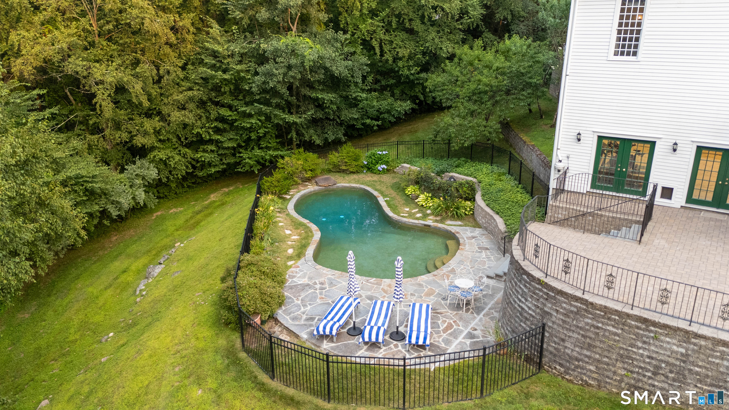 Set at the end of a quiet cul-de-sac in Easton, this stately Federal-style colonial offers a rare combination of timeless architecture, privacy, and pretty views across the three picturesque acres. Thoughtfully positioned to capture the natural beauty of its surroundings, the property is complemented by an inviting in-ground pool and expansive outdoor living spaces. Inside, the home unfolds with a sense of classic elegance and scale. Formal living and dining rooms provide a sophisticated backdrop for entertaining, while the family room with fireplace offers a warm and inviting everyday retreat. The chef's kitchen is exceptionally well-appointed, featuring dual islands-one with granite countertops and one with butcher block-each with its own prep sink, along with three ovens, two dishwashers, and both gas and electric cooking, creating a space designed for both function and gathering. The main-level primary suite offers a private sanctuary, complete with a spa-like bath featuring dual vanities, a soaking tub, and separate shower. Upstairs, five generously sized bedrooms and three full baths provide ample accommodations, while the third-floor bedroom suite /library-anchored by a fireplace & complemented by a full bath-creates a refined and versatile space for work, reading, or quiet escape, with an additional area ideal for play or office use. The lower level is designed for recreation with a spacious entertaining area, gym & perfect au-paire or guest suite.