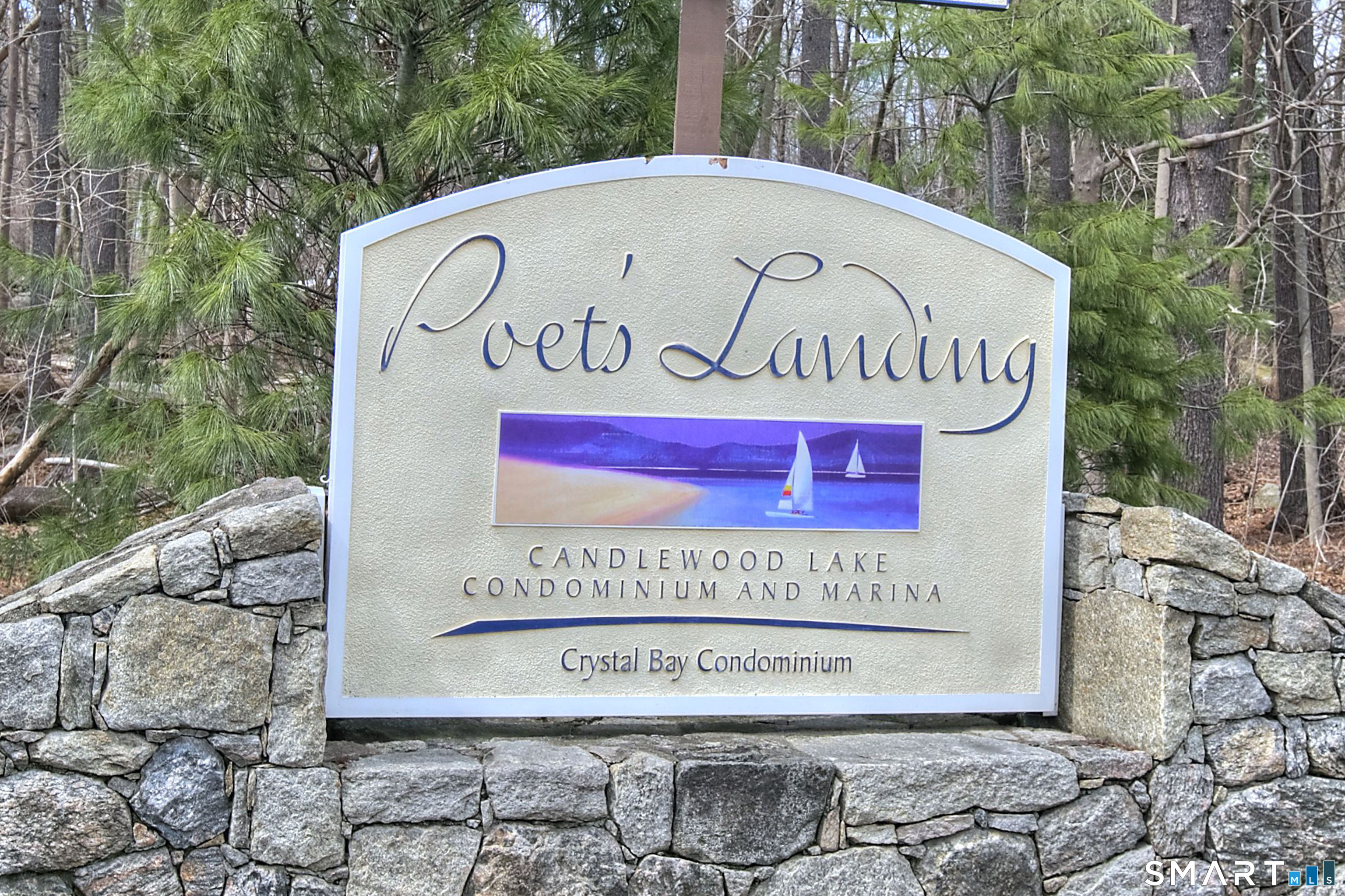 Experience elevated lakeside living in this stunning two-level penthouse overlooking Candlewood Lake. This exquisite 2-bedroom, 2.5-bath residence offers a sophisticated retreat with soaring cathedral ceilings, a cozy fireplace, and breathtaking water views from two private balconies- one off the primary suite and another extending from the main living area, perfect for tranquil mornings and unforgettable sunsets. The home's interior features a gourmet kitchen equipped with Wolf and Sub-Zero appliances, granite countertops and hardwood floors. An additional versatile room provides the perfect space for a third bedroom, large home office or guest room. Located in the Poets Landing community, this luxury waterfront condominium complex delivers a true resort-style lifestyle. The four-story building is designed in the grand style of Adirondack lodges and set on beautifully landscaped grounds, complete with convenient elevator access. Residents enjoy exceptional amenities, including a heated pool and jacuzzi overlooking the lake, a private marina, a fitness center, kayak storage, a dedicated dog run, and a private beach. A stylish clubhouse offers space for gatherings and social events, along with a barbecue area with views of the lake. This remarkable property is just 65 miles north of Midtown Manhattan making it a perfect full-time residence or weekend escape.