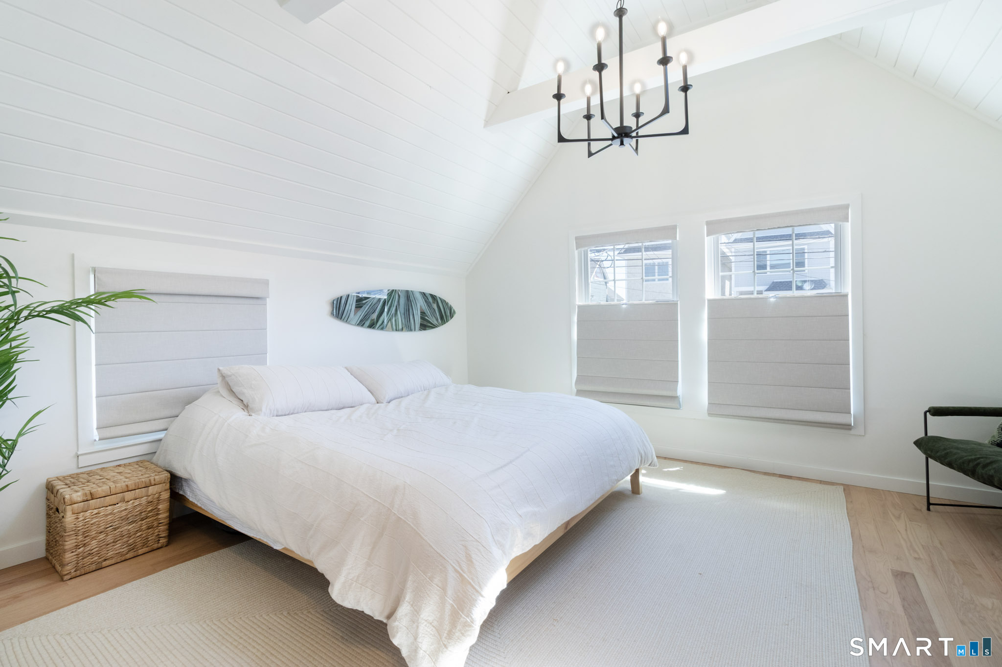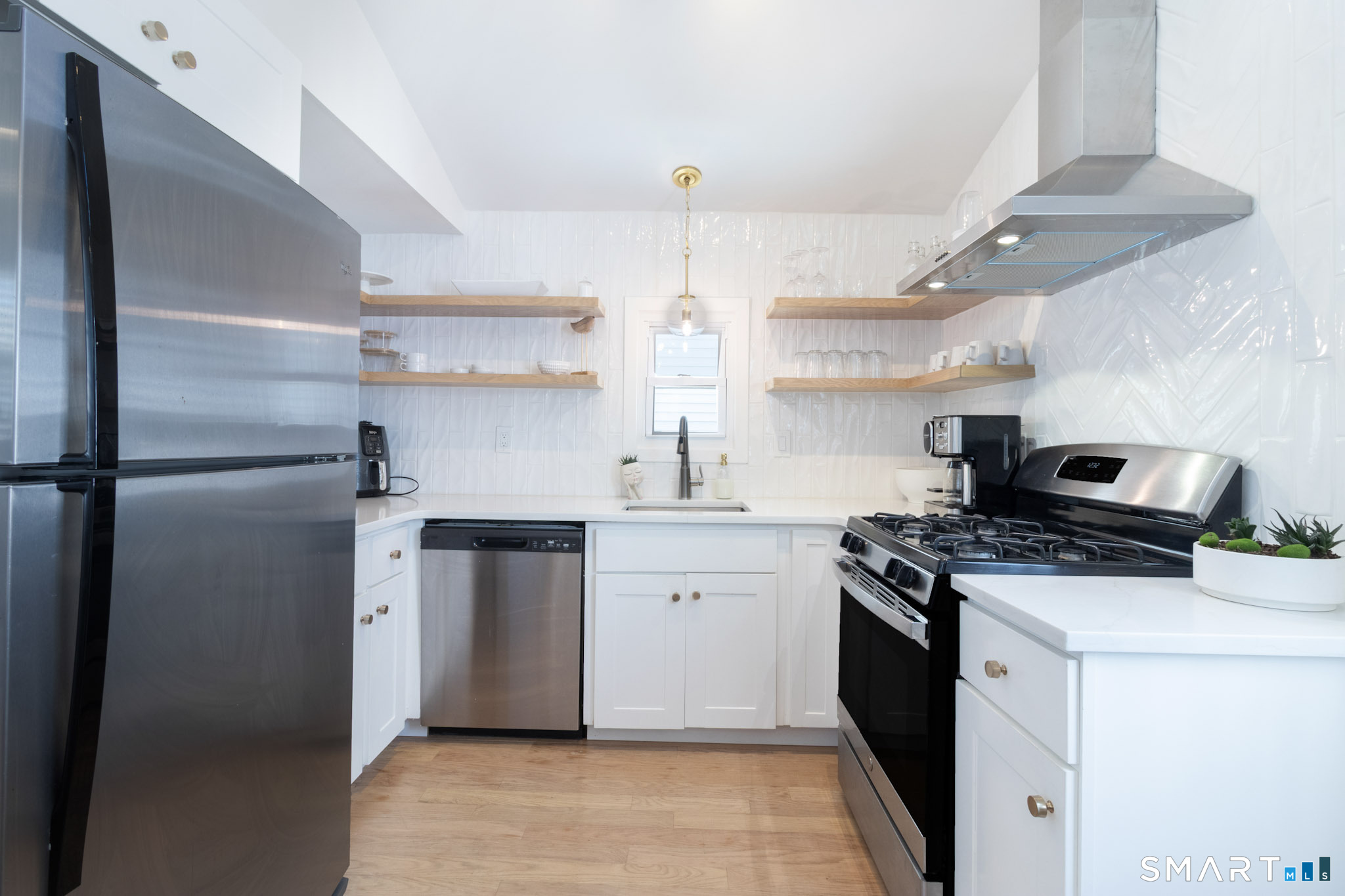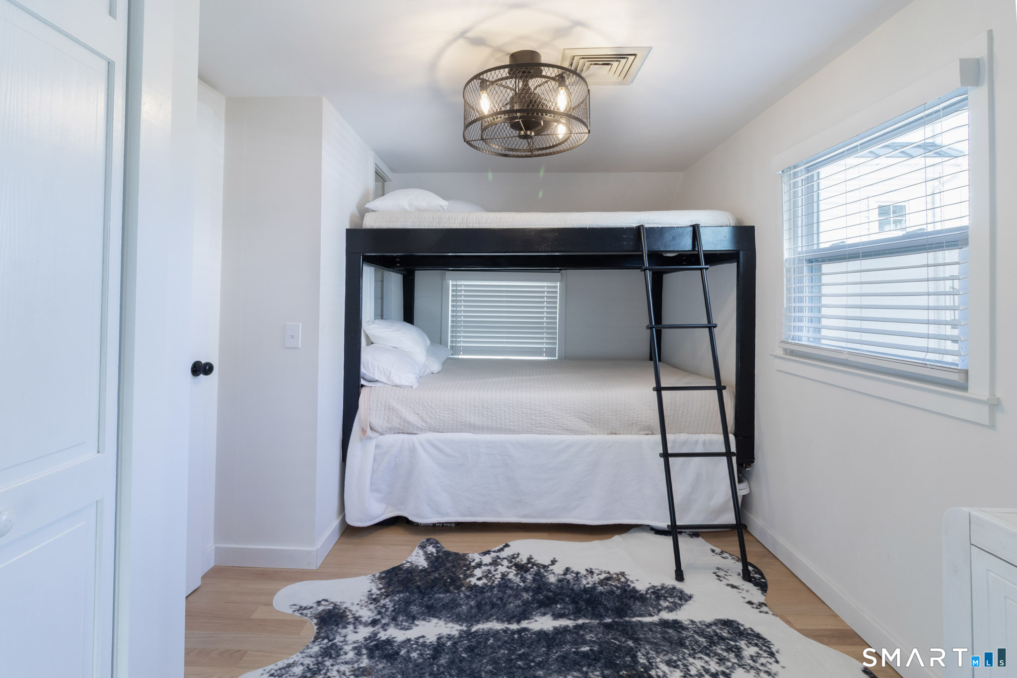 Perfectly suited for investors, owner-occupants, or those seeking a charming vacation retreat, this beautifully maintained home offers the best of shoreline living with water views, close proximity to Silver Sands Beach and steps away from two public beach access walkways. Located just 1.5 miles from downtown, enjoy a quick bike ride to local shops, restaurants, and all the area has to offer. Inside, you'll find a completely renovated kitchen featuring stainless steel appliances, quartz countertops, tile backsplash and a built-in corner bench-perfect for casual dining and gathering. Hardwood floors flow throughout the home, complemented by central air and efficient natural gas heating for year-round comfort. Custom window coverings allow privacy and views. Brand new roof to enjoy for many years to come. Step outside to a fully fenced rear yard, ideal for entertaining, relaxing, or enjoying summer evenings. Set in a truly fabulous neighborhood that shines in every season, this home is a rare opportunity to enjoy coastal living at its finest.
