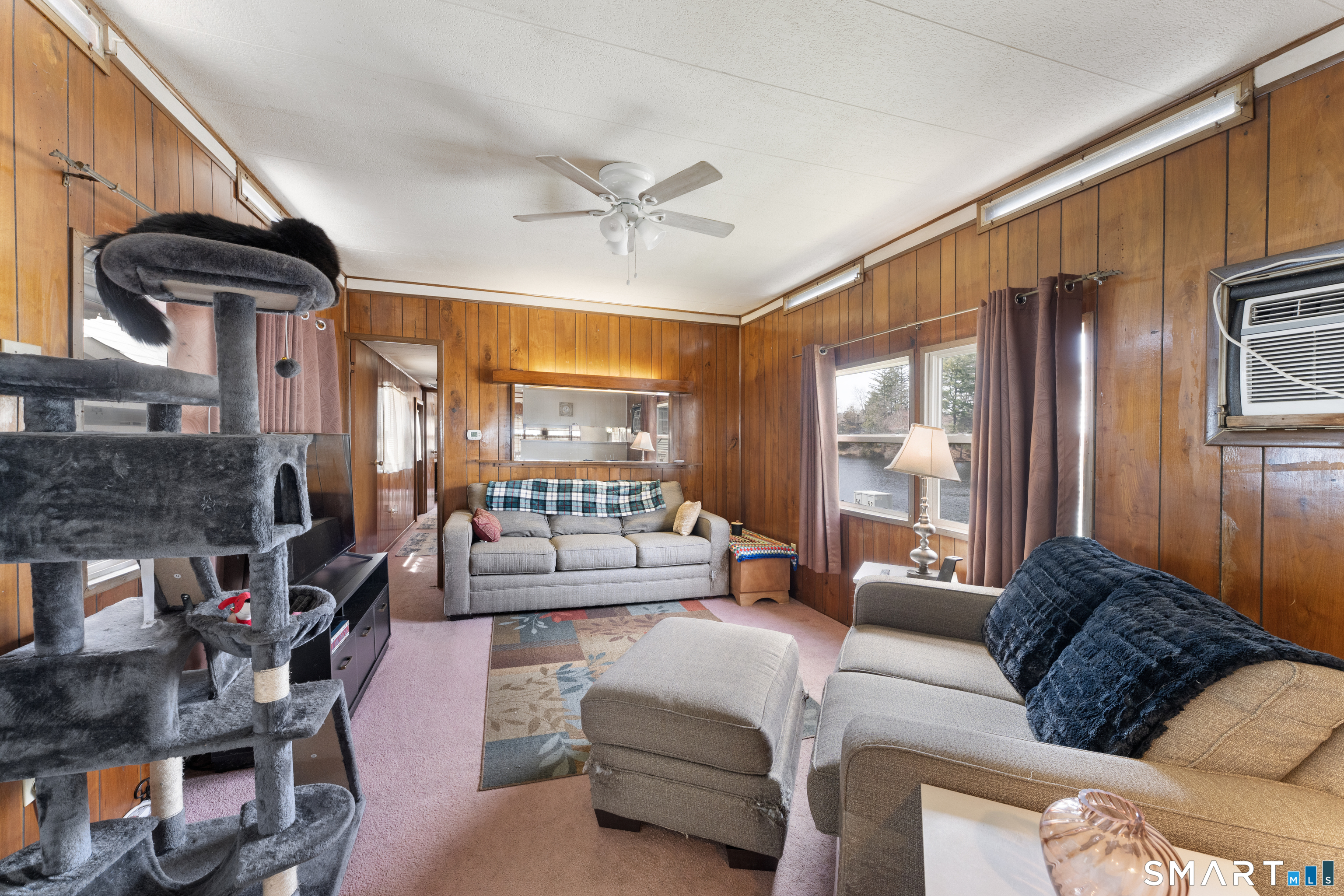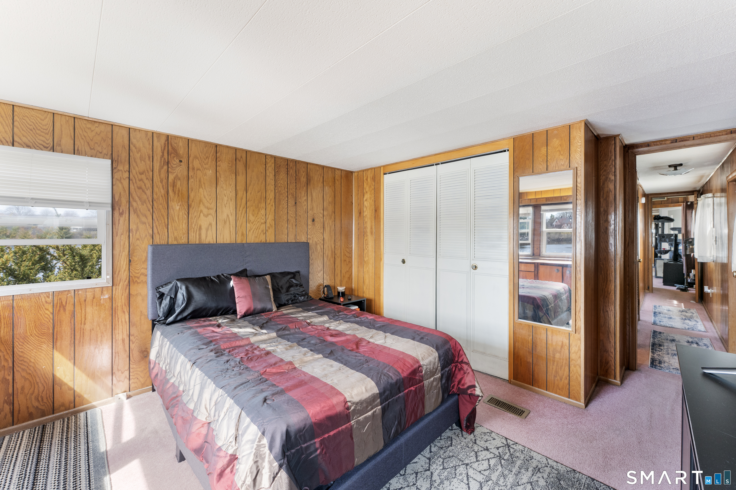Well-maintained two bedroom, one bath mobile home boasts a spacious primary bedroom with built-in shelving and a waterfront view. A brand new water heater was installed just this year. Enjoy fishing and sitting by the pond. Close to shopping centers, yet has the comfort of being in a rural part of town.