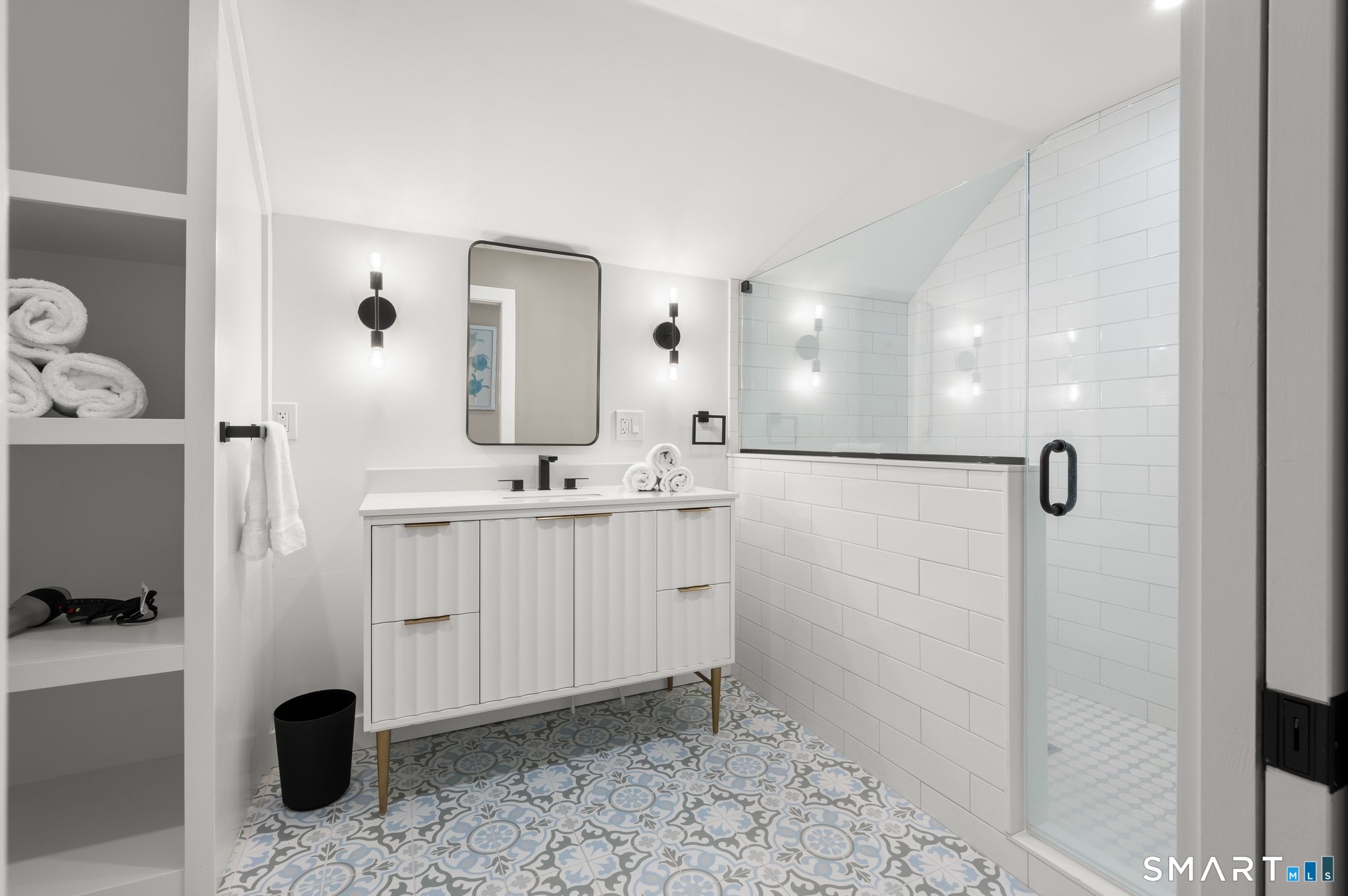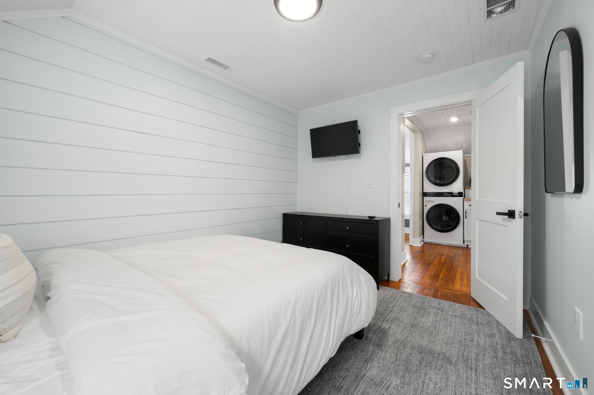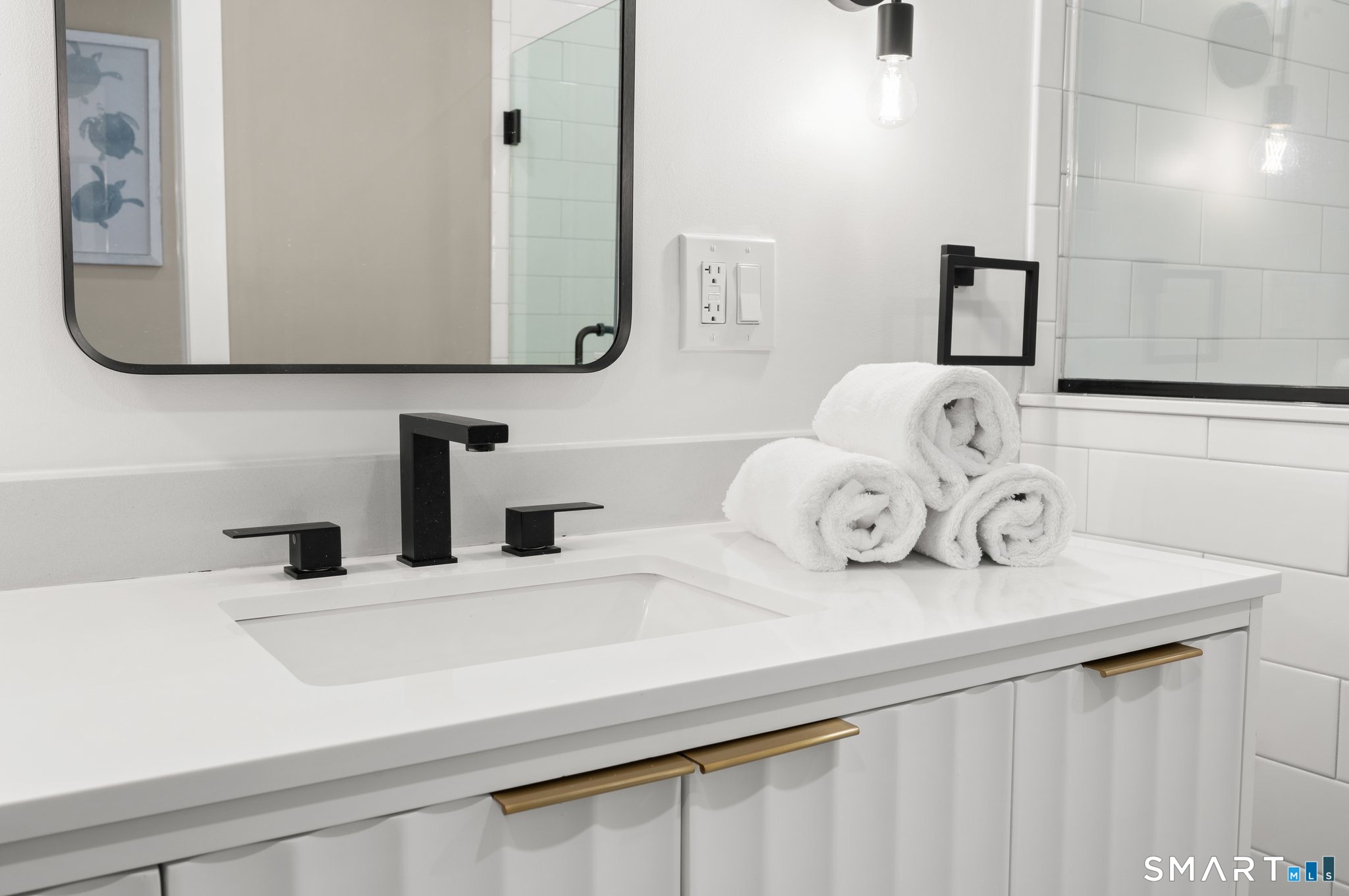 This beautifully renovated 3 bedroom, 1.5 bath home nestled in the charming community of Old Mystic has been thoughtfully updated throughout and offers a modern feel while preserving its timeless charm. Step inside to find gleaming hardwood floors throughout and a bright, inviting open layout. The large living space flows into the dining and kitchen area featuring elegant quartz countertops, tiled backsplash and white shaker cabinetry. Rear sliders lead to the private outdoor space complete with a fire pit area maximizing indoor outdoor living. On the second floor of the home you will find three bedrooms all with hardwood floors and wood wall accents. Built in laundry space and the large bathroom with custom tile floors and shower complete this upper level. New windows, roof, updated utilities and a forced hot air and central air system add to the ease of ownership. Whether you're looking for a home of your own or a short-term investment opportunity this property checks all the boxes being across the street from the water and right outside the Downtown Mystic area.