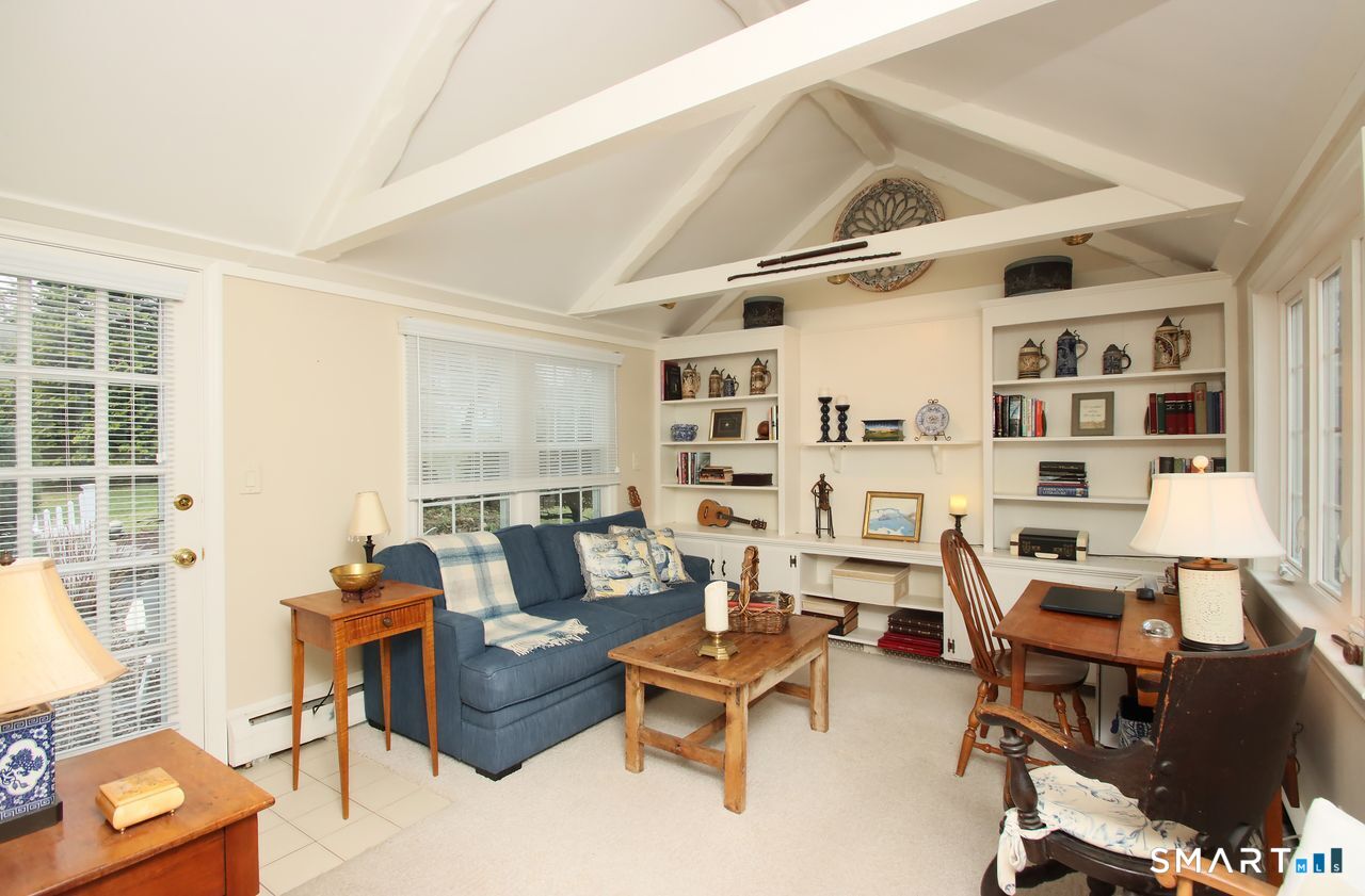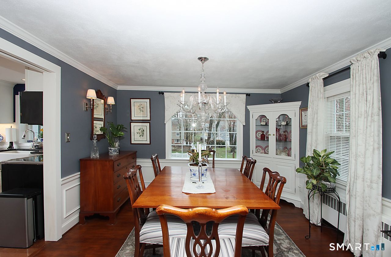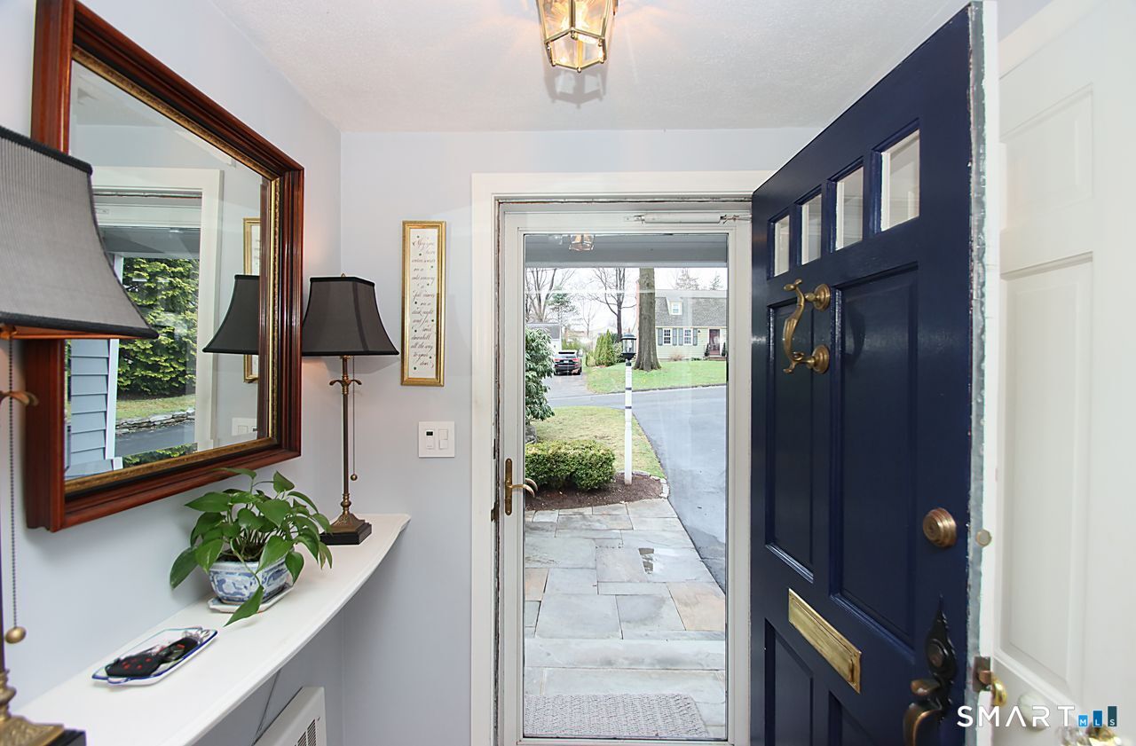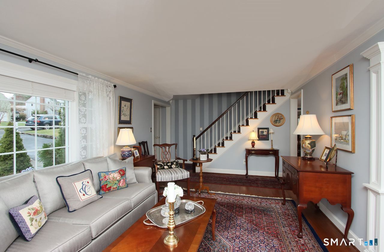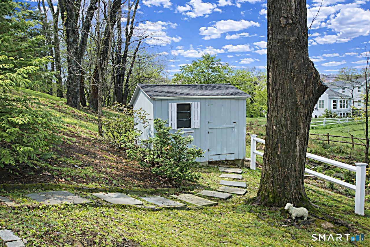 An A+ location and beautifully landscaped, professionally maintained yard set the stage for this exceptional 9-room home near schools, shopping, and recreation. A welcoming foyer opens to a formal living room with a gas fireplace and a sun-filled dining room, both featuring large windows. The updated white kitchen is the heart of the home, offering granite countertops, a center island with bar seating, a breakfast nook, built-ins, a garden window, and garage access. It flows into a charming family room with a gas fireplace, vaulted ceiling, wet/coffee bar, and door leading to a deck and private patio. A versatile fifth bedroom or home office sits just off the kitchen with its own entrance, patio access, and adjacent full bath. Upstairs are four additional bedrooms with hardwood floors and an updated bath with custom tile, marble sink, and refreshed shower. The lower level includes a second office area, built-ins, playroom with five sunny windows, laundry, half bath, and access to the patio and a workshop/storage area. The backyard extends to a scenic brook and includes a storage shed. Immaculate and full of charm, this move-in ready home is a rare find! Agent related to Seller.
