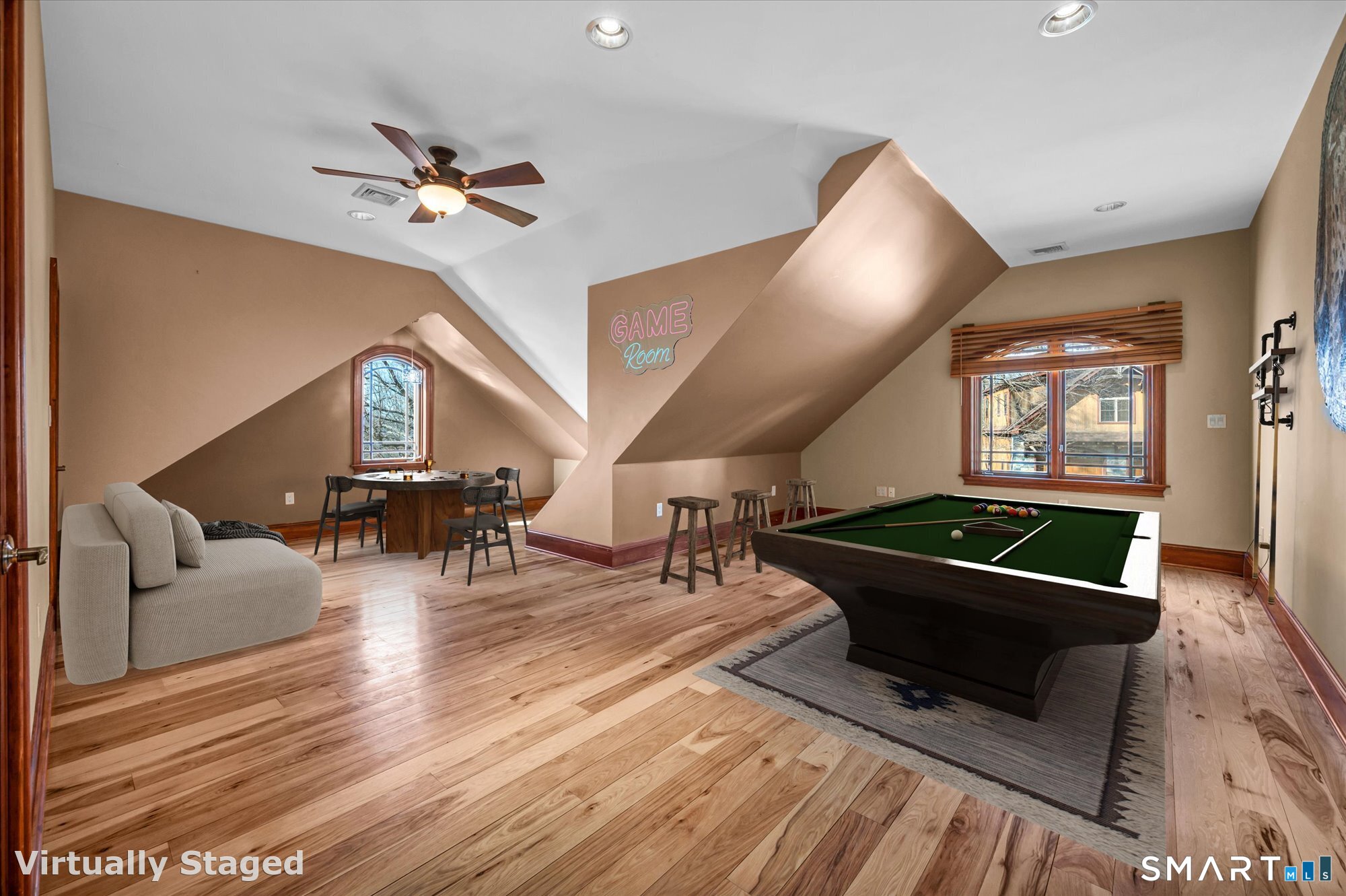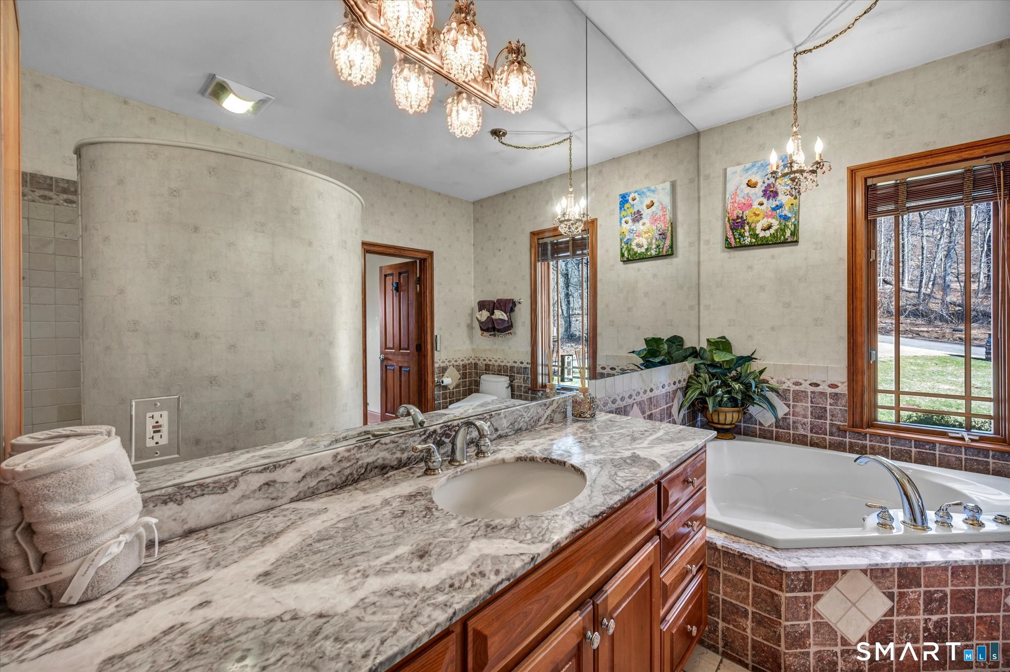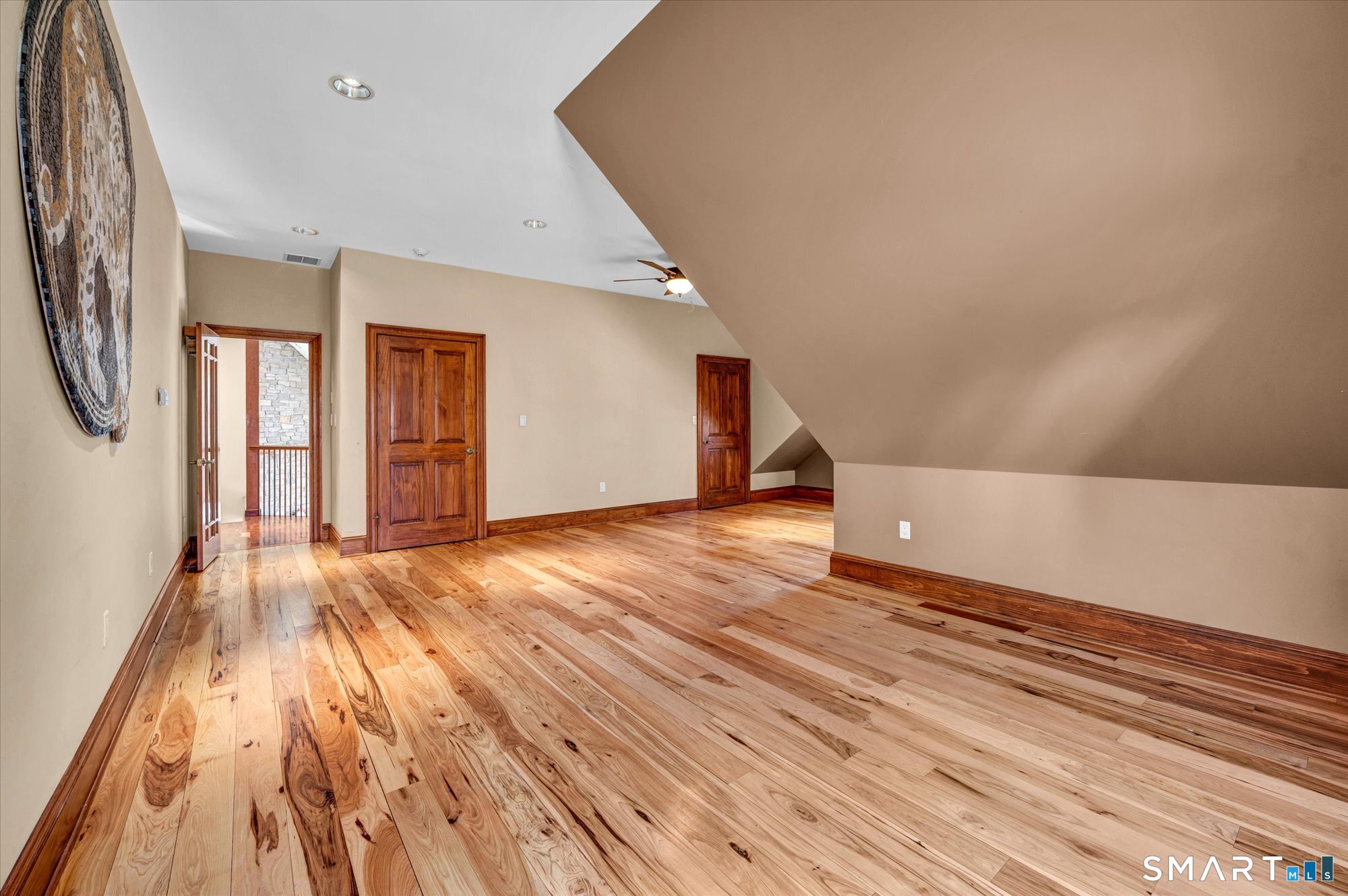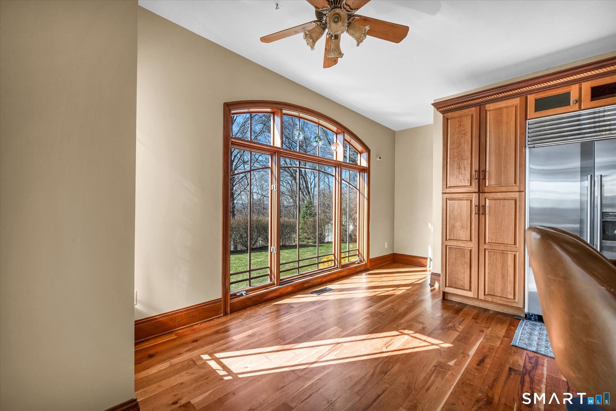 Perched high above Southington on over 2 private acres, this Custom built Cape Style home offers more than 3200 sq ft of thoughtfully designed living space, a 5 car garage and some of the most breathtaking views in town! From the moment you step inside, the home immediately makes an impression w/soaring spaces, floor-to-ceiling windows that fill the home with natural light, and a beautiful floor-to-ceiling Belgian Block corner stone fireplace that serves as the centerpiece of the living area. The main level features rich cherry hardwood floors, a beautifully appointed granite kitchen with high-end Wolf appliances, and custom cherry cabinetry--perfect for both everyday living and entertaining. Every detail of this home was thoughtfully designed to create a space that feels both elegant and comfortable. The flexible floor plan offers 3-4 bedrooms and 2.5 baths, including a 1st floor primary suite ideal for multi-generational living. This private retreat features a spacious walk-in closet and a primary bath complete w/a curved tile shower and soaking tub. Upstairs, you'll find 3 additional bedrooms, including one ideal for a game room or bonus space, all finished with warm hickory flooring and a full bath. But what truly sets this home apart is the view! Step outside to your own private retreat--a stunning paver patio with a built-in fireplace, where you can enjoy sweeping views of Southington and surrounding towns.