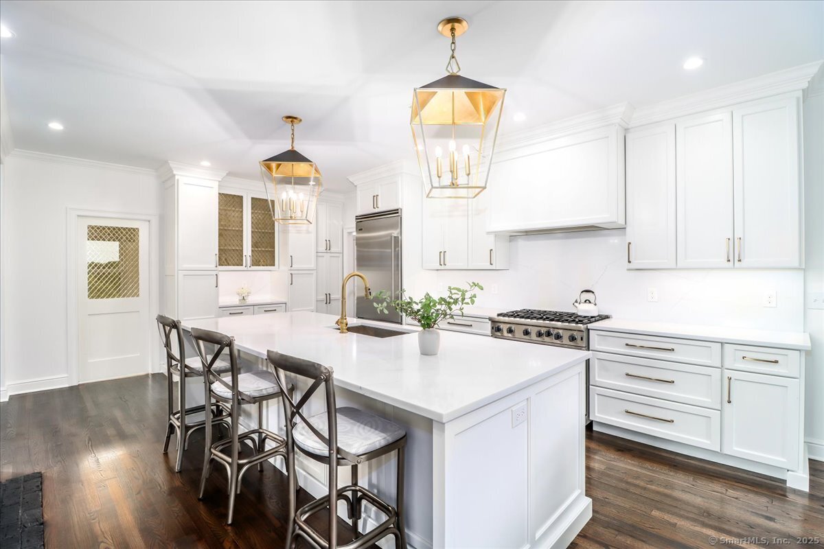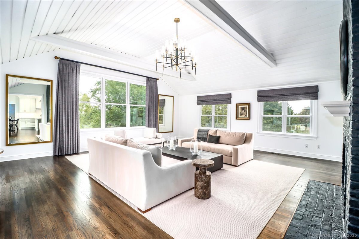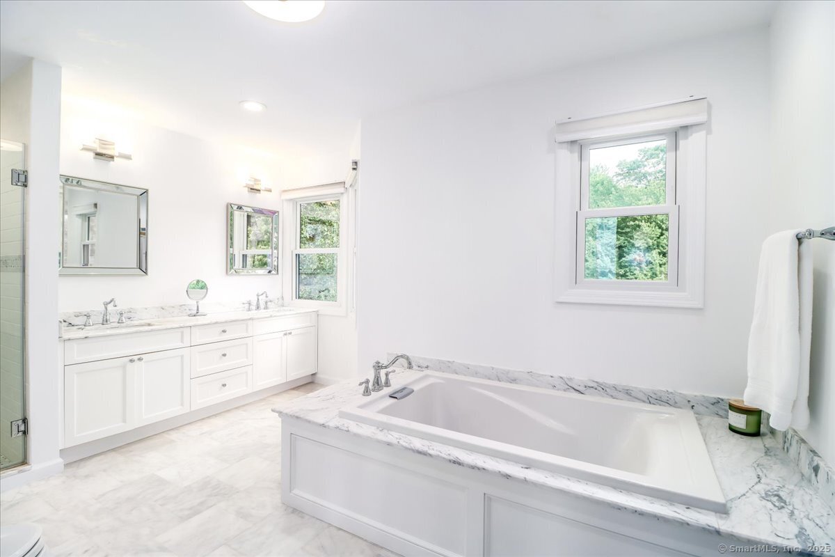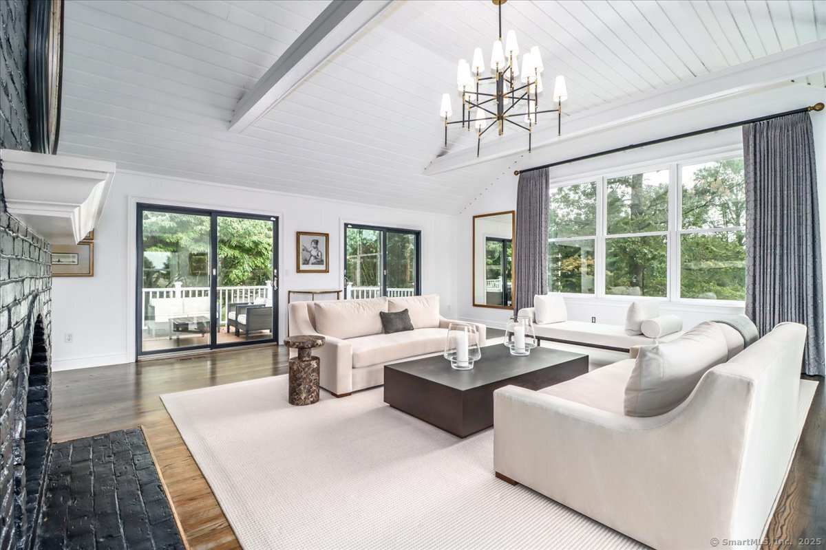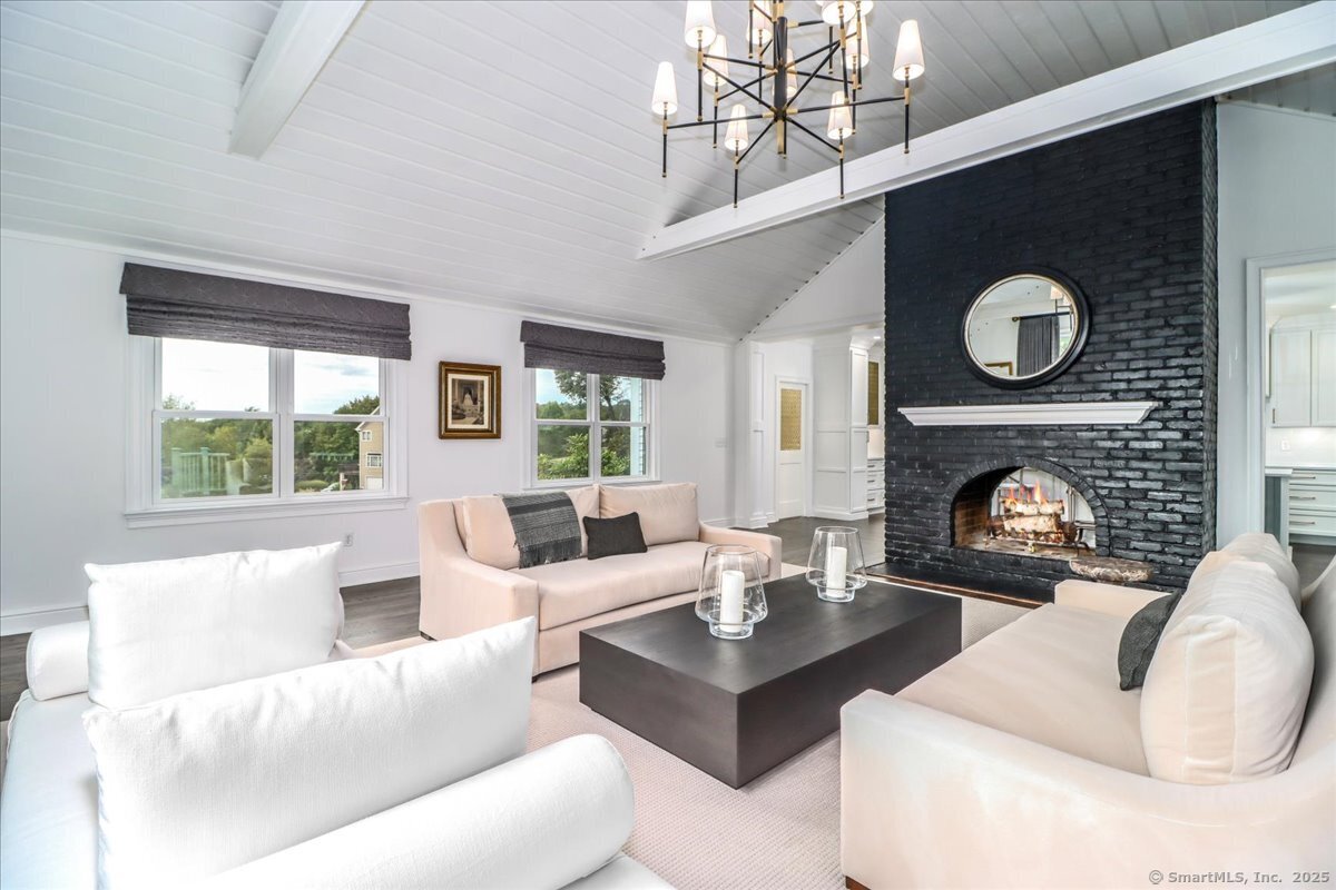 Welcome to 13 Old Castle Drive, a stunning, fully reimagined Colonial set on 1+ level acre lot and nestled on a peaceful cul-de-sac in one of Newtown's most sought-after neighborhoods with scenic views of the Borough. Thoughtfully renovated over the past three years, this elegant 4-bedroom, 2.5-bath residence combines timeless architecture with upscale modern living across 4,300+ square feet of beautifully finished space. Step inside to find refinished hardwood floors flowing throughout, fresh interior paint, and designer lighting that elevates each room. Remodeled gourmet, eat-in kitchen-with top-of-the-line Viking appliances, Quartz countertops, an expansive 10'x4' center island, walk-in butler's pantry with sink and beverage fridge. A double-sided gas fireplace connects the kitchen to the dramatic vaulted-ceiling family room, which features double sliding glass doors that open to new patio and decking. Main level also includes an oversized foyer with French doors leading to a music room or office, den space, inviting formal Dining Room along with a stylishly updated powder room. Upstairs, the primary suite boasts a new custom walk-in closet, full bath with spa-like ambiance. Renovated hall bathroom serves the additional 3 bedrooms with style and function. New Andersen windows and French doors on the main level, and Harvey replacement windows upstairs. Finished lower level with a home gym, media room, designer laundry with barn door, and mudroom and generous storage.