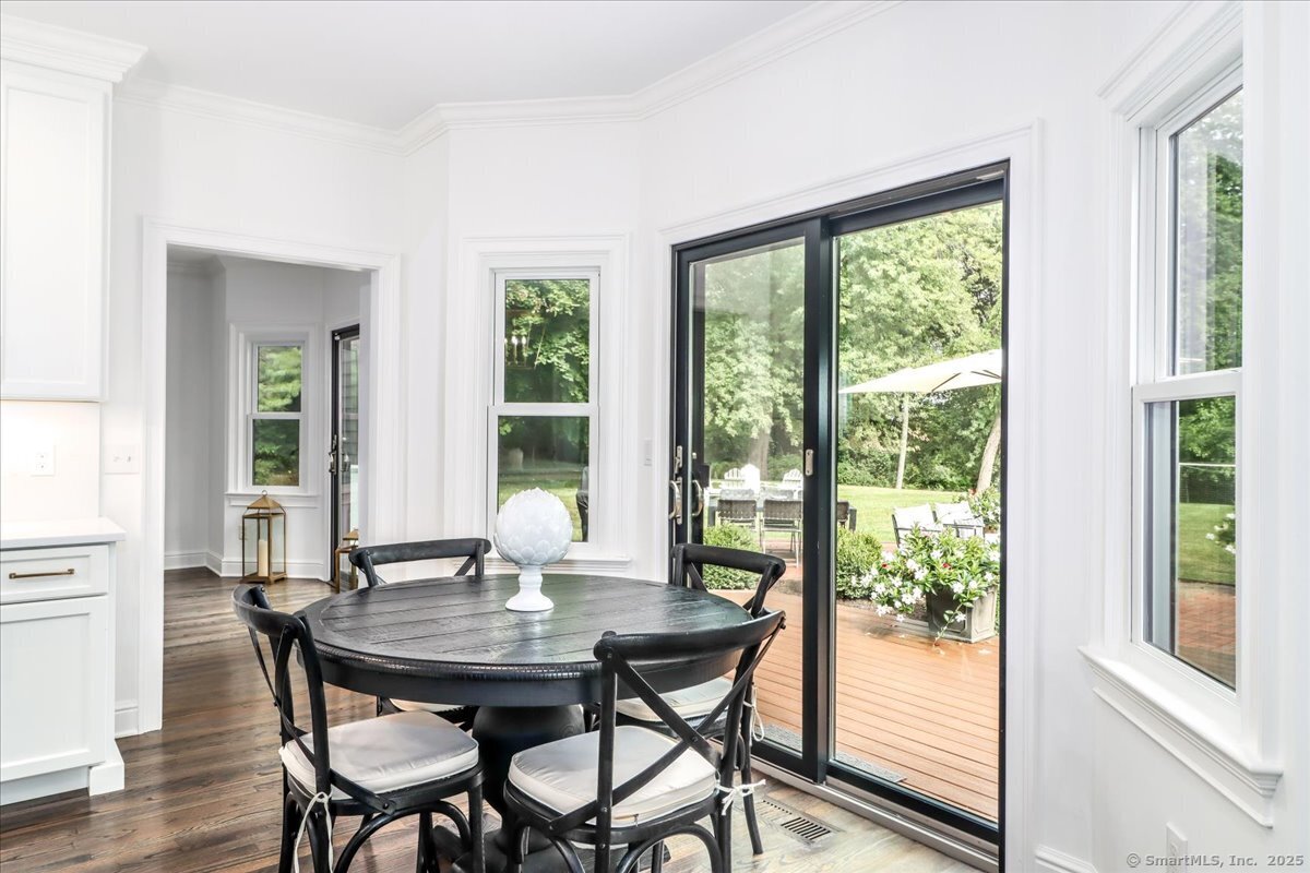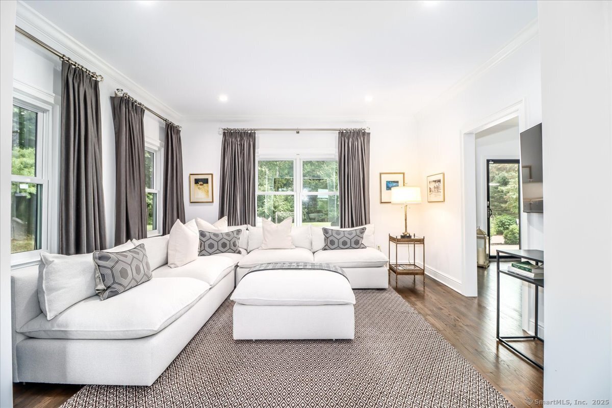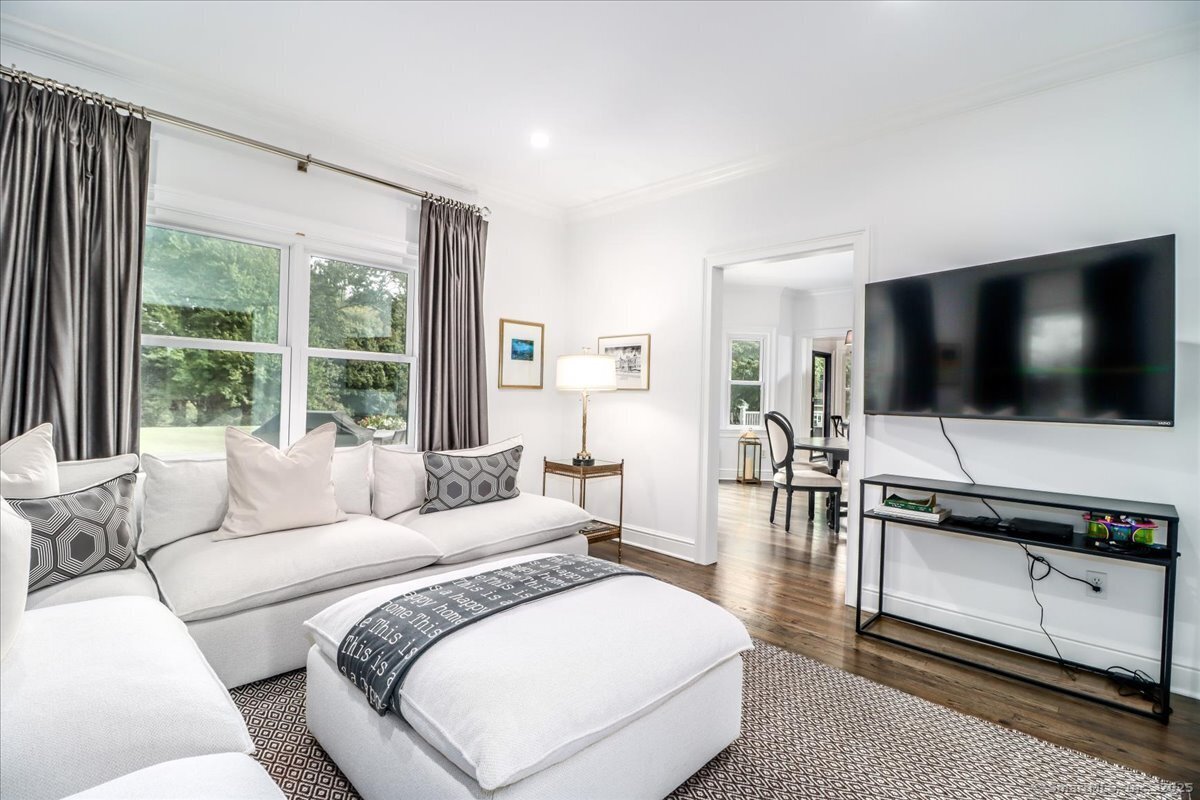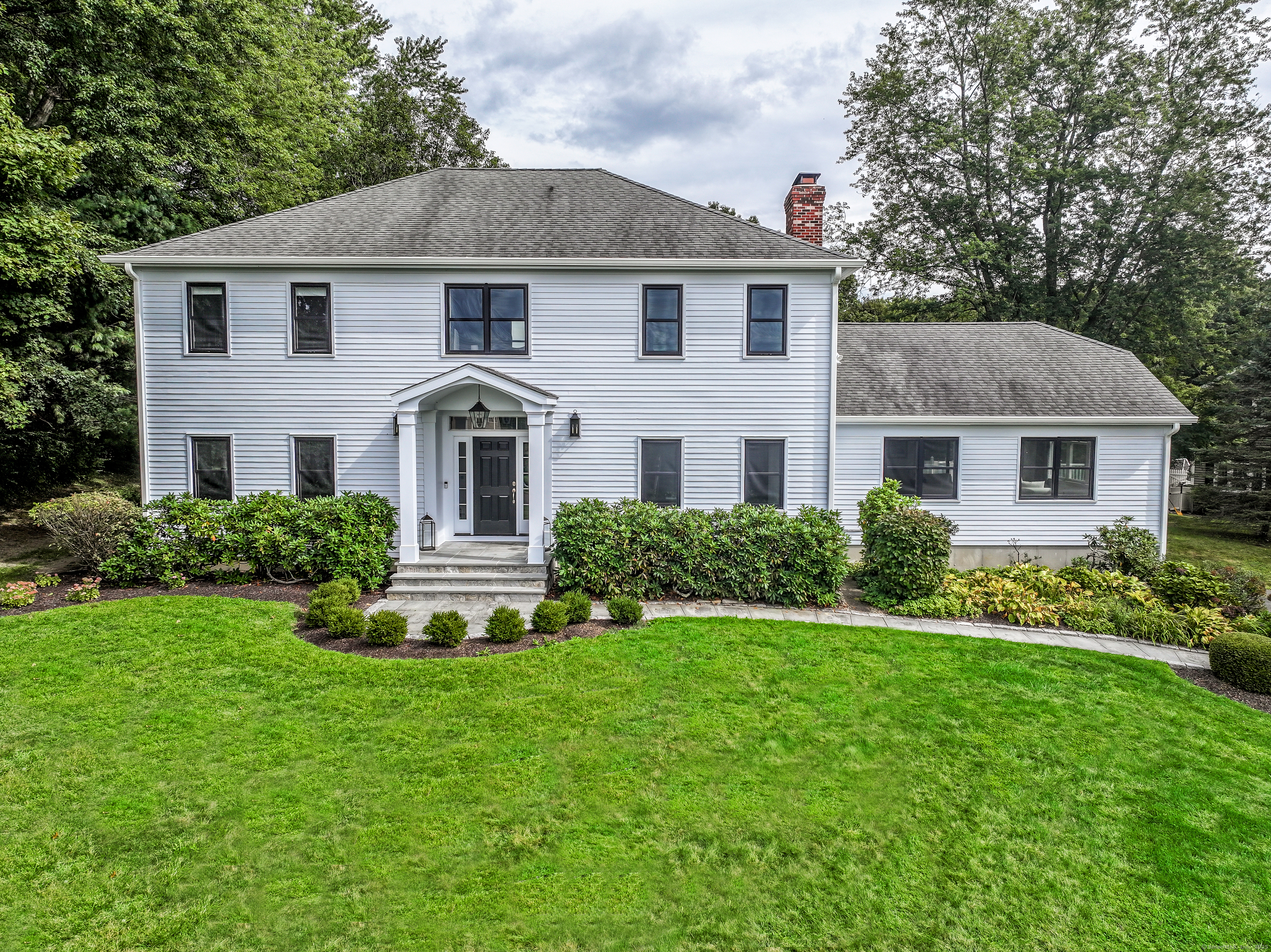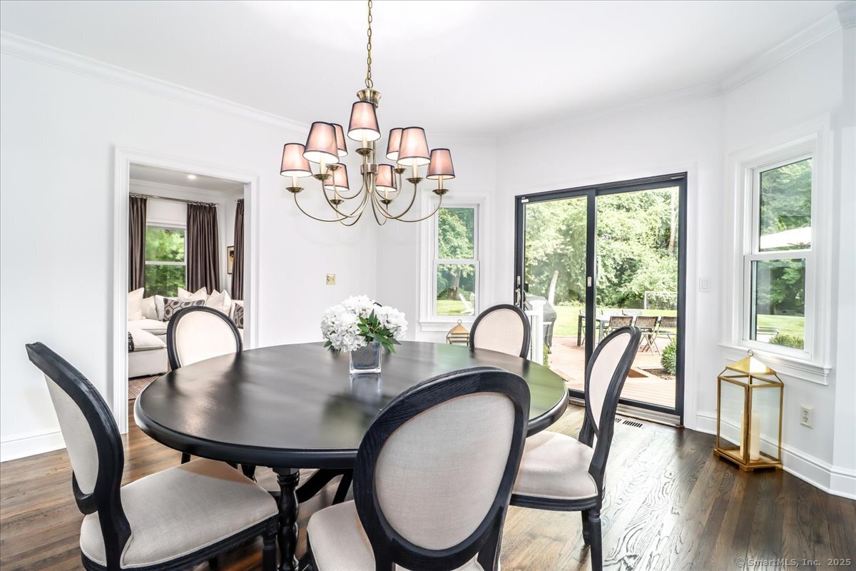 Welcome to 13 Old Castle Drive, a stunning, fully reimagined Colonial set on 1+ level acre lot and nestled on a peaceful cul-de-sac in one of Newtown's most sought-after neighborhoods with scenic views of the Borough. Thoughtfully renovated over the past three years, this elegant 4-bedroom, 2.5-bath residence combines timeless architecture with upscale modern living across 4,300+ square feet of beautifully finished space. Step inside to find refinished hardwood floors flowing throughout, fresh interior paint, and designer lighting that elevates each room. Remodeled gourmet, eat-in kitchen-with top-of-the-line Viking appliances, Quartz countertops, an expansive 10'x4' center island, walk-in butler's pantry with sink and beverage fridge. A double-sided gas fireplace connects the kitchen to the dramatic vaulted-ceiling family room, which features double sliding glass doors that open to new patio and decking. Main level also includes an oversized foyer with French doors leading to a music room or office, den space, inviting formal Dining Room along with a stylishly updated powder room. Upstairs, the primary suite boasts a new custom walk-in closet, full bath with spa-like ambiance. Renovated hall bathroom serves the additional 3 bedrooms with style and function. New Andersen windows and French doors on the main level, and Harvey replacement windows upstairs. Finished lower level with a home gym, media room, designer laundry with barn door, and mudroom and generous storage.