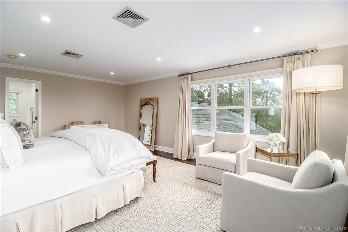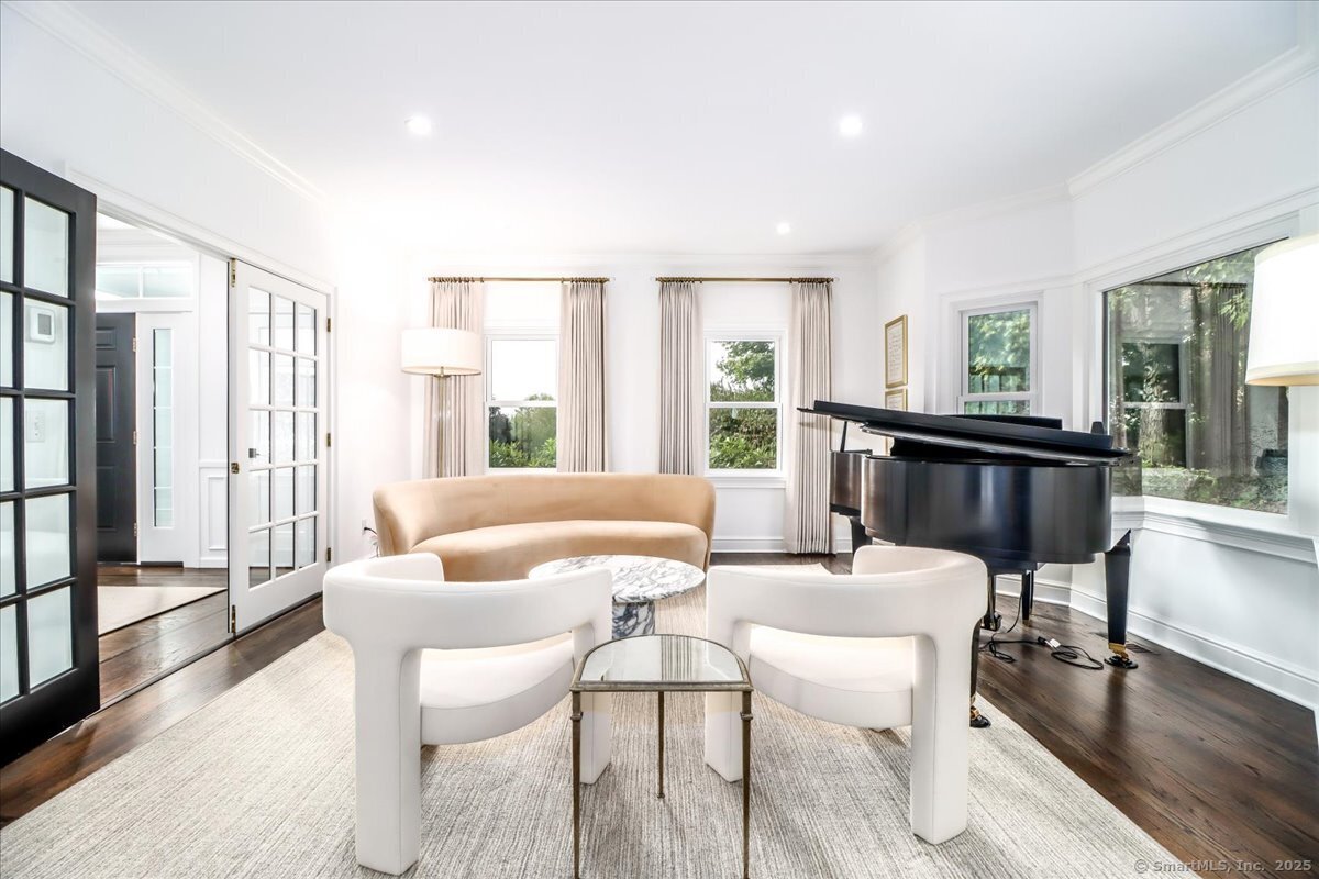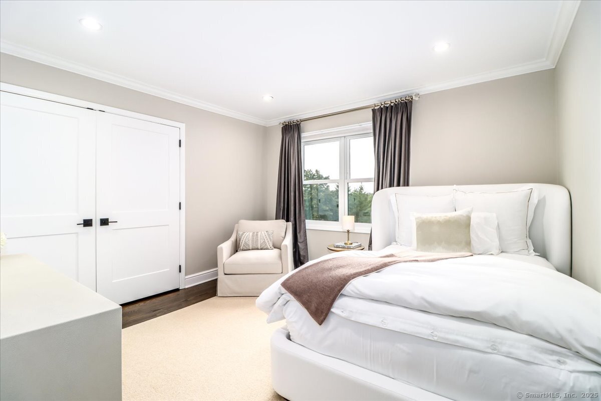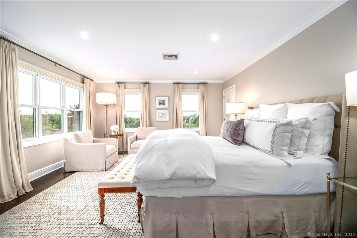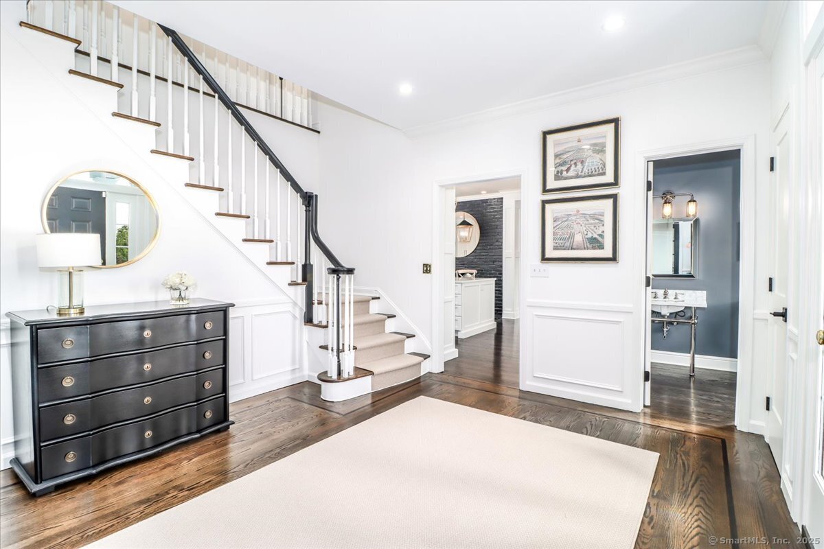 Welcome to 13 Old Castle Drive, a stunning, fully reimagined Colonial set on 1+ level acre lot and nestled on a peaceful cul-de-sac in one of Newtown's most sought-after neighborhoods with scenic views of the Borough. Thoughtfully renovated over the past three years, this elegant 4-bedroom, 2.5-bath residence combines timeless architecture with upscale modern living across 4,300+ square feet of beautifully finished space. Step inside to find refinished hardwood floors flowing throughout, fresh interior paint, and designer lighting that elevates each room. Remodeled gourmet, eat-in kitchen-with top-of-the-line Viking appliances, Quartz countertops, an expansive 10'x4' center island, walk-in butler's pantry with sink and beverage fridge. A double-sided gas fireplace connects the kitchen to the dramatic vaulted-ceiling family room, which features double sliding glass doors that open to new patio and decking. Main level also includes an oversized foyer with French doors leading to a music room or office, den space, inviting formal Dining Room along with a stylishly updated powder room. Upstairs, the primary suite boasts a new custom walk-in closet, full bath with spa-like ambiance. Renovated hall bathroom serves the additional 3 bedrooms with style and function. New Andersen windows and French doors on the main level, and Harvey replacement windows upstairs. Finished lower level with a home gym, media room, designer laundry with barn door, and mudroom and generous storage.
