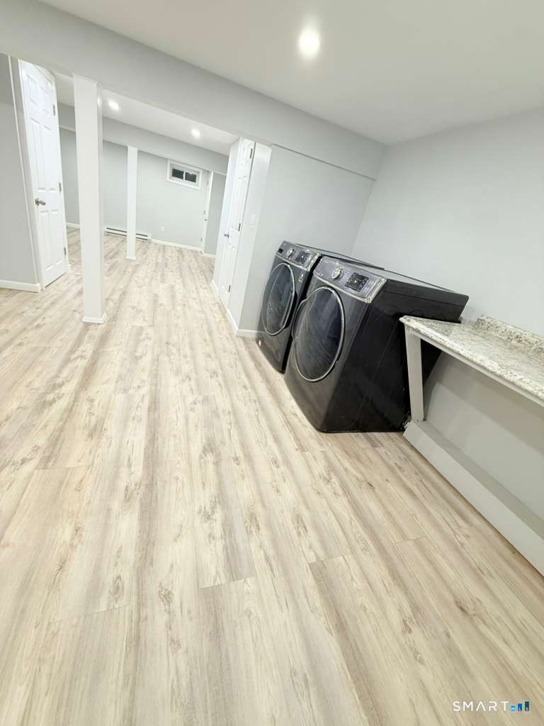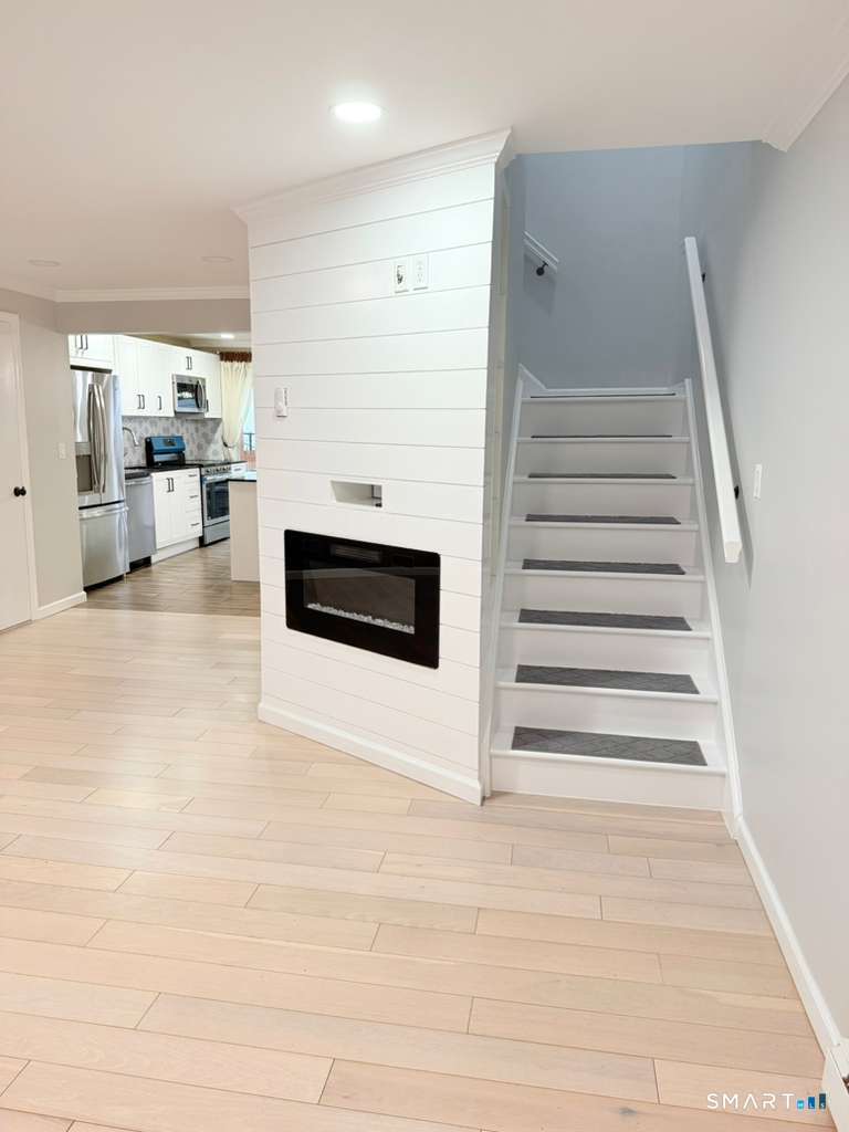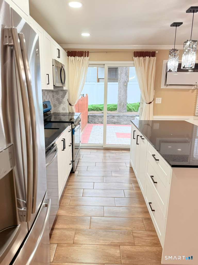 Well maintend row house in the Sprindale area of Stamford. Walk to train and bus line, kitchen newly renovated, provate back yeard. 3 bedroom and 1.5 bath full basement with laundry, and 3 parking spaces.
