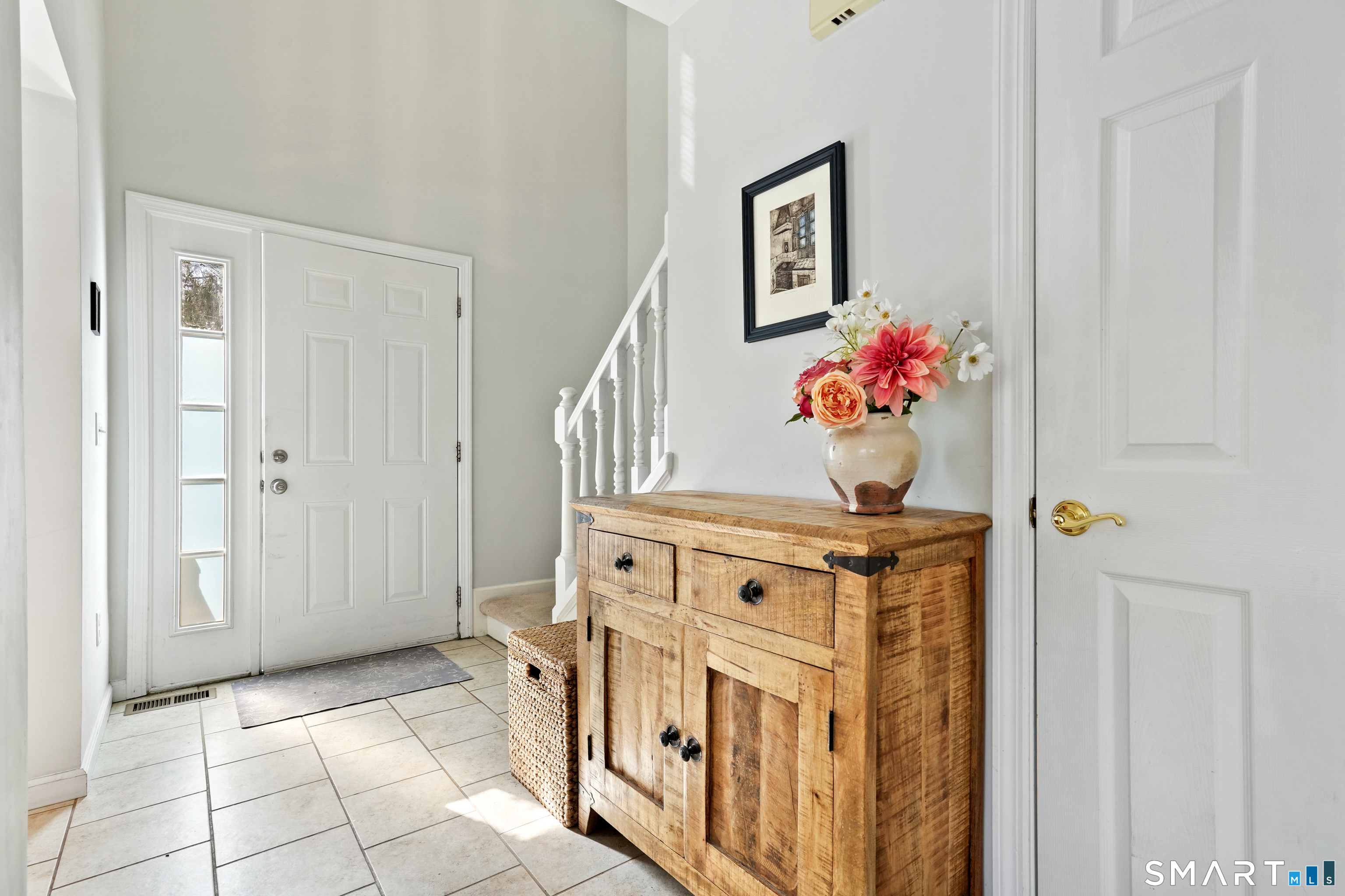 Experience refined townhouse living in this elegant end unit at Stonehouse Commons. The main level offers a beautifully open floor plan where the kitchen, dining area, and living room flow seamlessly together, creating an airy, sophisticated space ideal for both everyday living and effortless entertaining. Sunlight fills the living area, anchored by a stylish fireplace and enhanced by sliders leading to a private balcony with tranquil views. The well appointed kitchen features generous cabinetry and a clean, functional layout that integrates naturally with the surrounding living spaces. Upstairs, the serene primary bedroom includes a walk in closet and direct access to the updated full bath, complemented by a versatile second bedroom. Additional highlights include a loft style landing perfect for a study nook, a lower level laundry/utility room with excellent storage, a convenient main level half bath and two reserved under building covered parking spaces. With central air, quality construction, and a prime location moments from Ridgefield's vibrant dining, shopping, and cultural amenities, this residence blends style, comfort, and convenience.